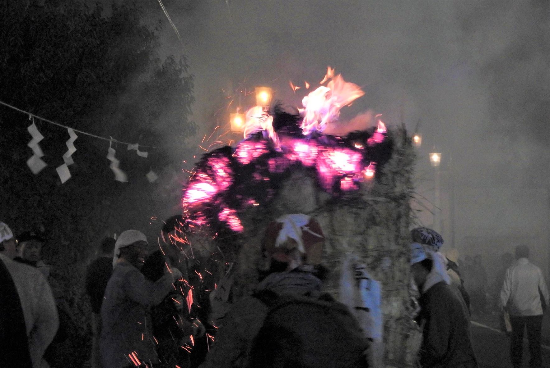 Dieses selbst in Japan als etwas seltsam geltende Fest erfreut sich großer Beliebtheit (manche sagen, es gehöre zu den drei bizarrsten Festen Japans). Erstaunlich viele Besucher versammelten sich, um die Gruppen buchstäblich anzufeuern, als diese mit einem „wasshoi, wasshoi“ brennende, bis zu 3 m hohe Strohbündel, durch die Straßen des Asama-Onsen-Viertels zogen.