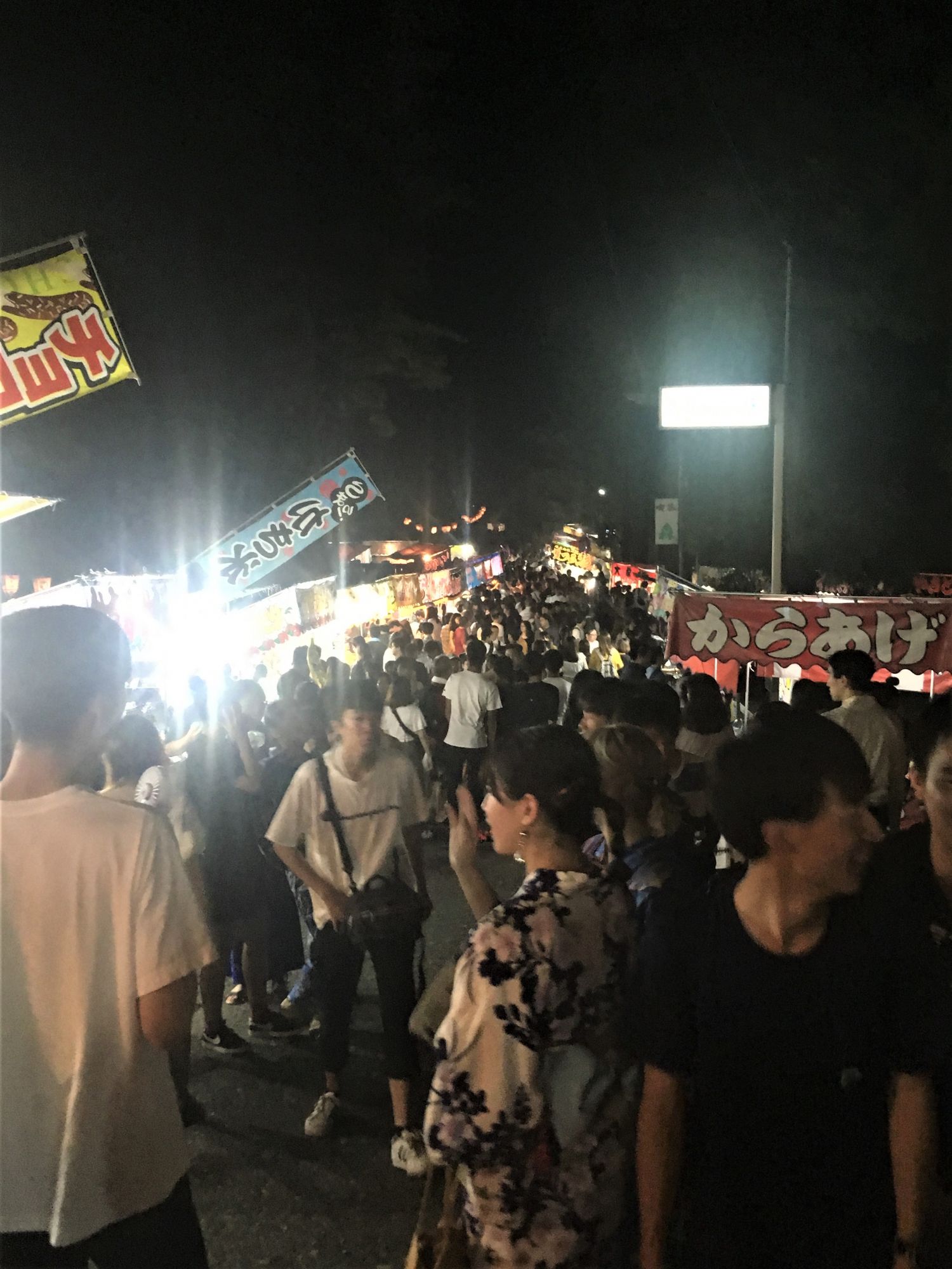 Nach dem Feuerwerk lohnt sich noch ein Spaziergang zum Tsukama Schrein, wo man sich durch die Mengen schiebend, die vielen Stände anschauen kann.