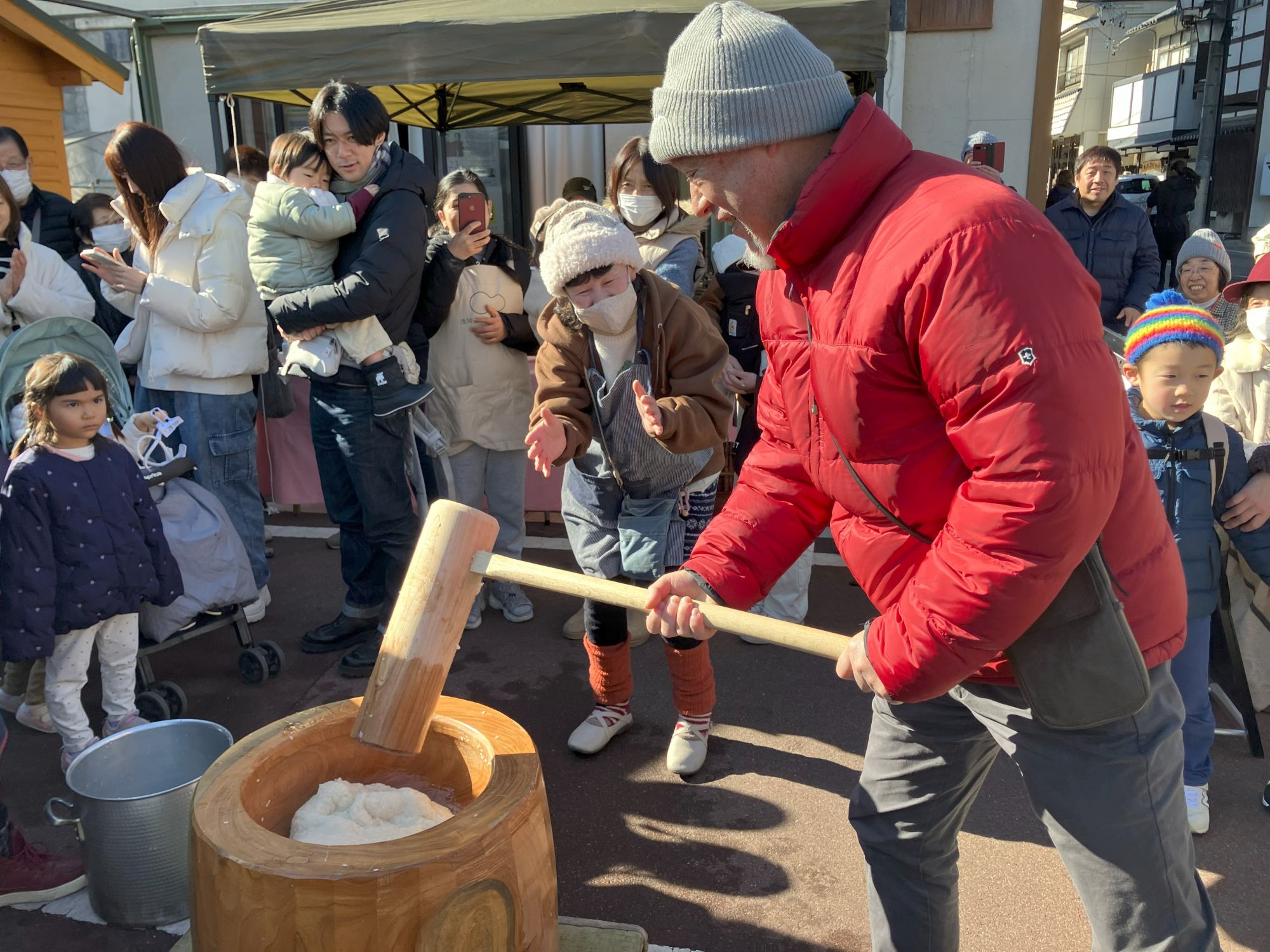 Großes Reiskuchenmachen zum Jahreswechsel (餅つき大会)
