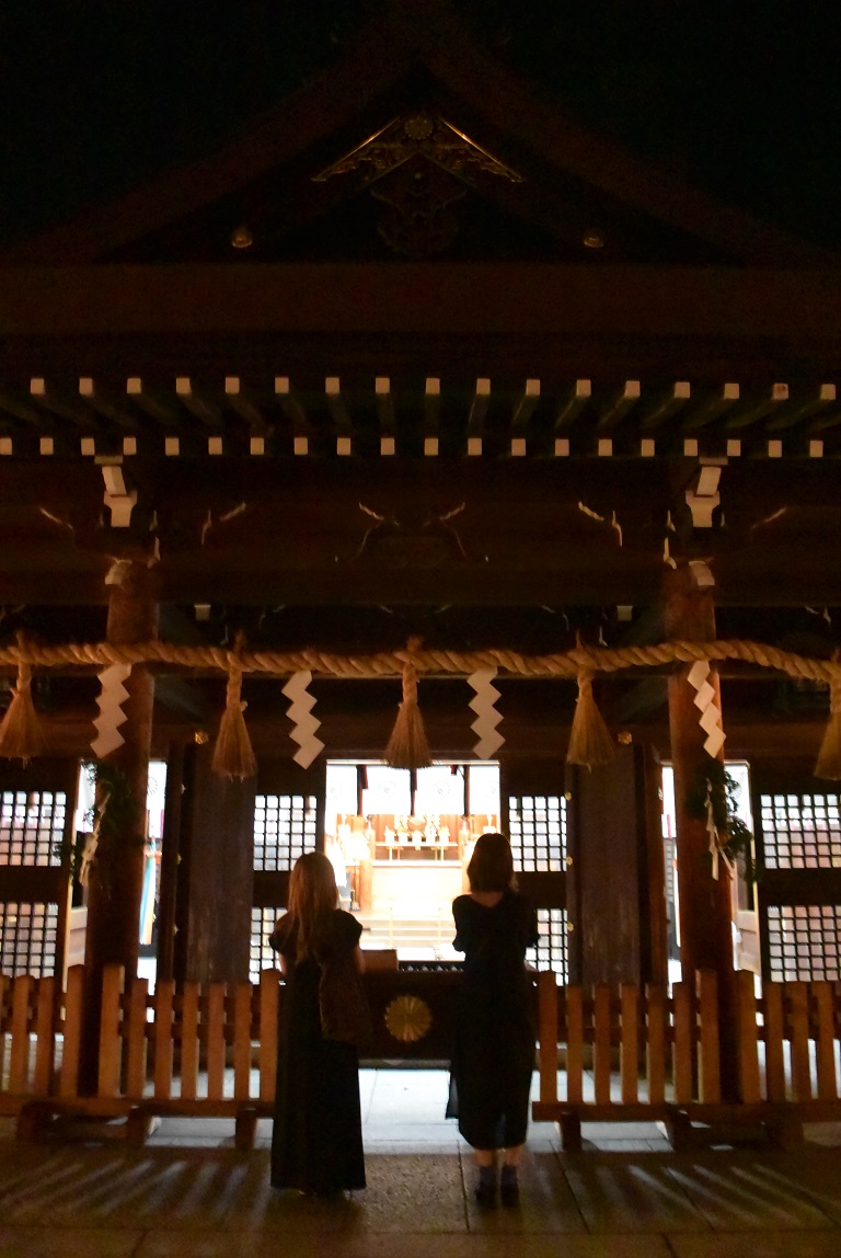 Vor dem Hauptschrein waren beleuchtete Bilder ausgestellt und es gab einen Raum mit Drachenbildern der Künstlerin für japanische Malerei Tomoko Kawai.