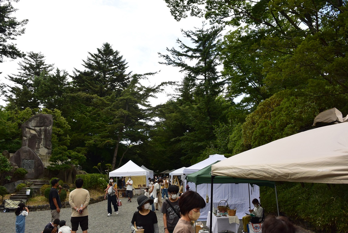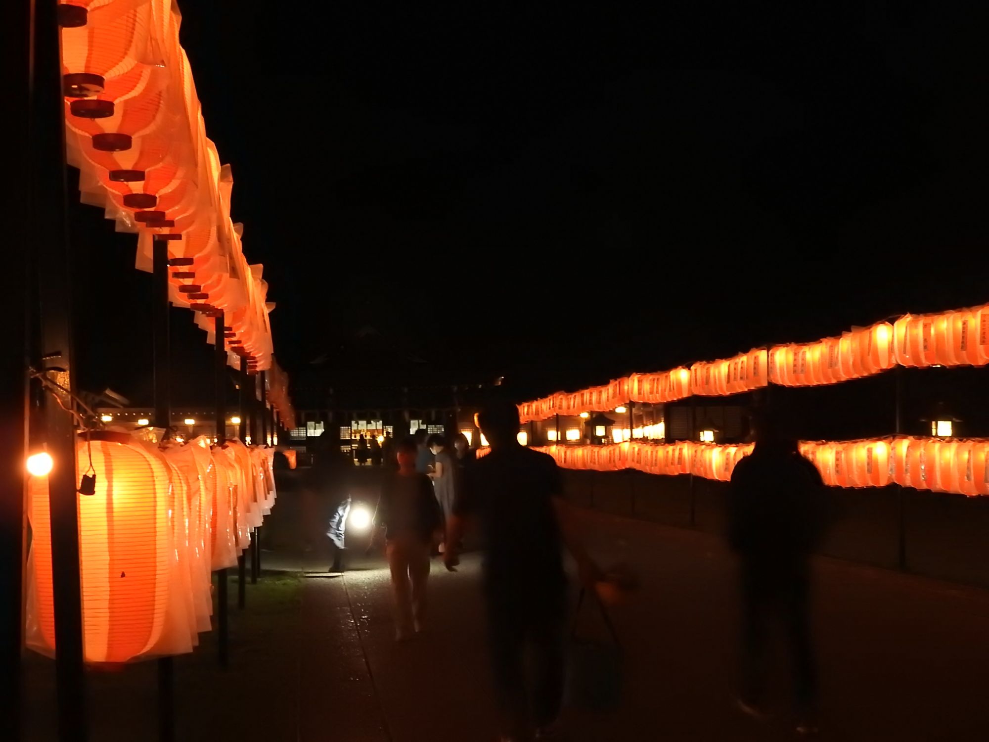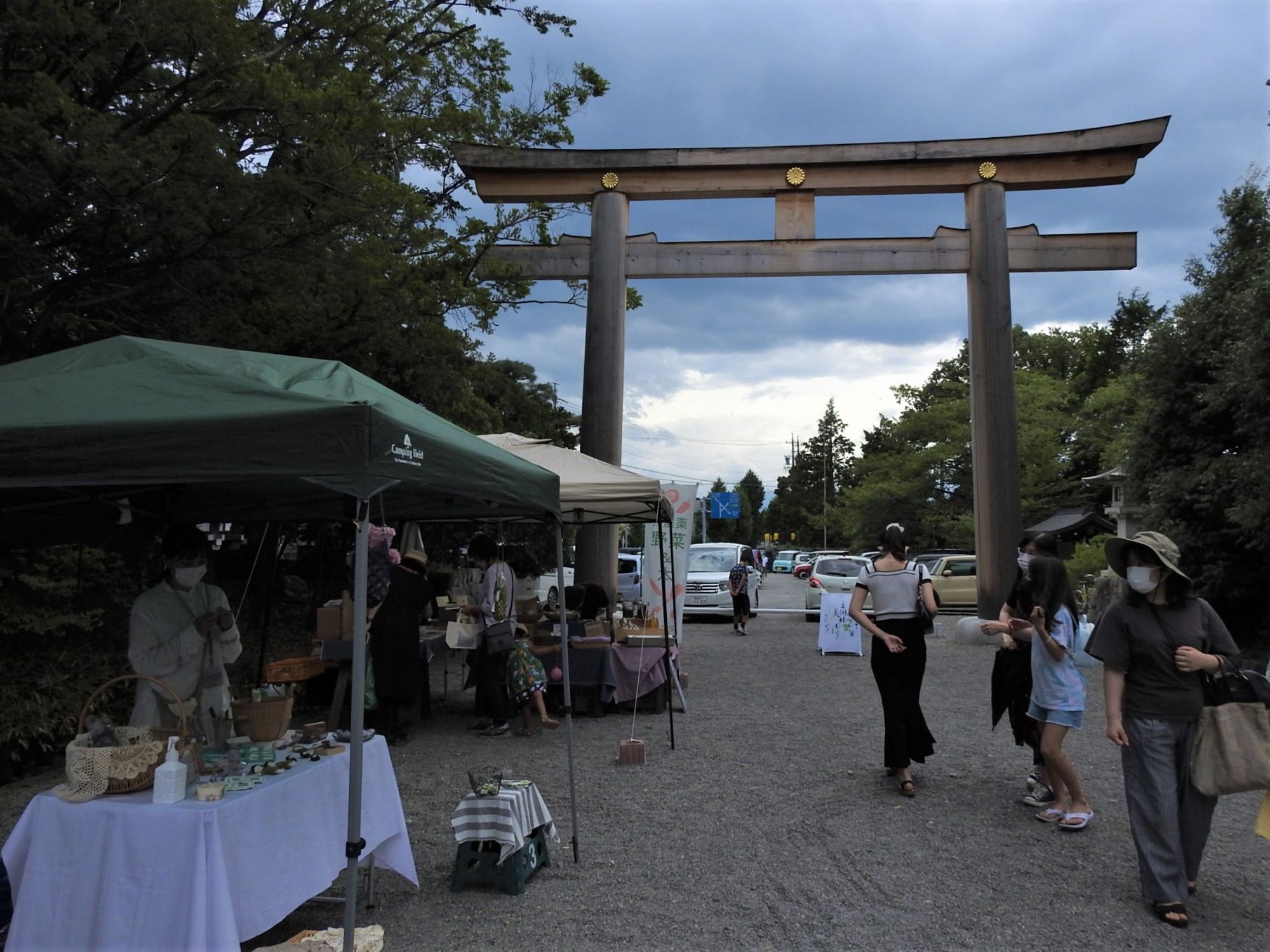 Während der Obon Feiertage verwandelte sich der Nagano-Gokoku-Schrein in ein kleines Festival mit Ständen, DJs, Live-Performances und vielen roten Laternen.
