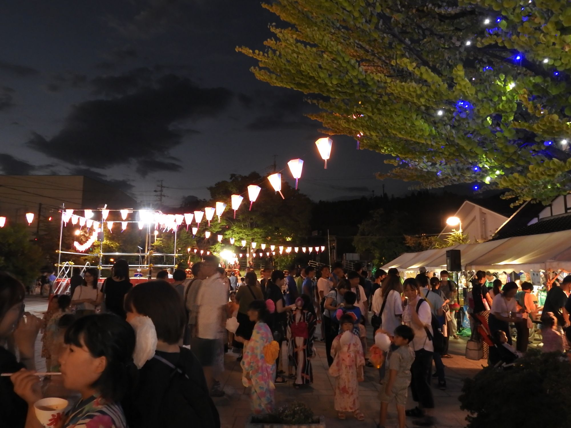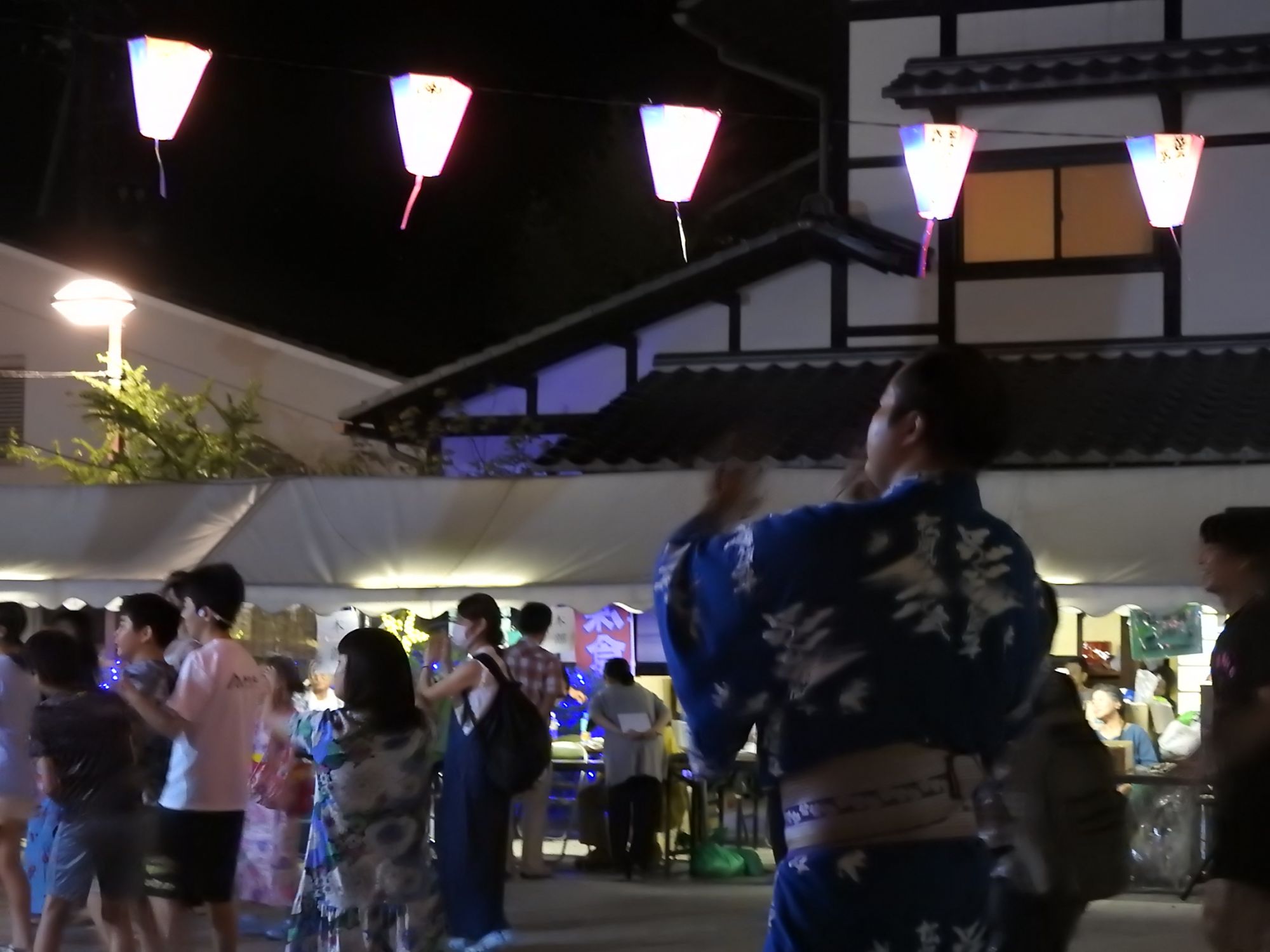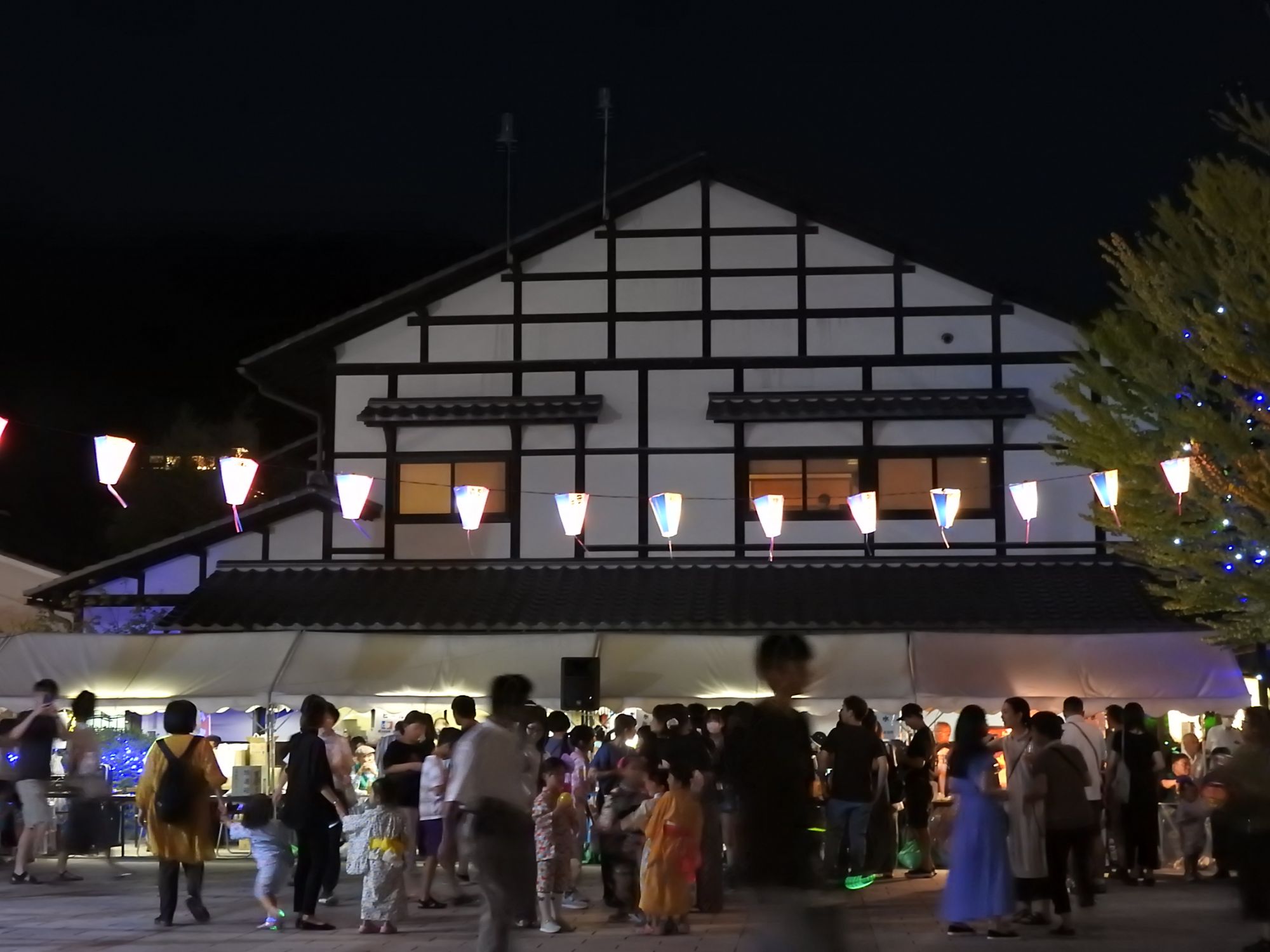 Drei Tage lang (11.-13. August) schmückten Laternen den Hot Plaza Asama, und Einheimische sowie Gäste aus den umliegenden Ryokan (Hotel im japanischen Stil) feierten tanzend den Sommer.