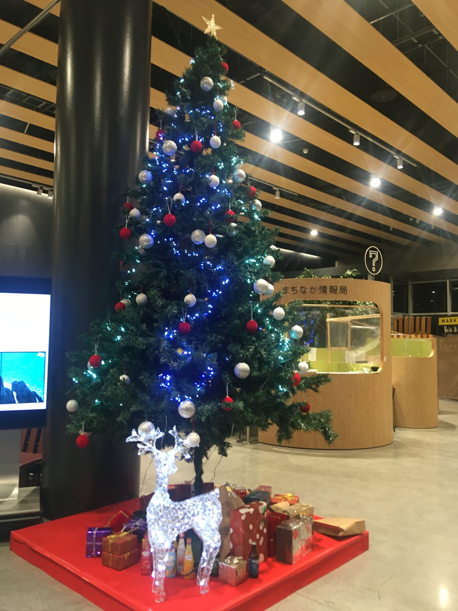 Dann ein kurzer Stopp im Media-Garden, wo die Eingangshalle weihnachtlich geschmückt ist.