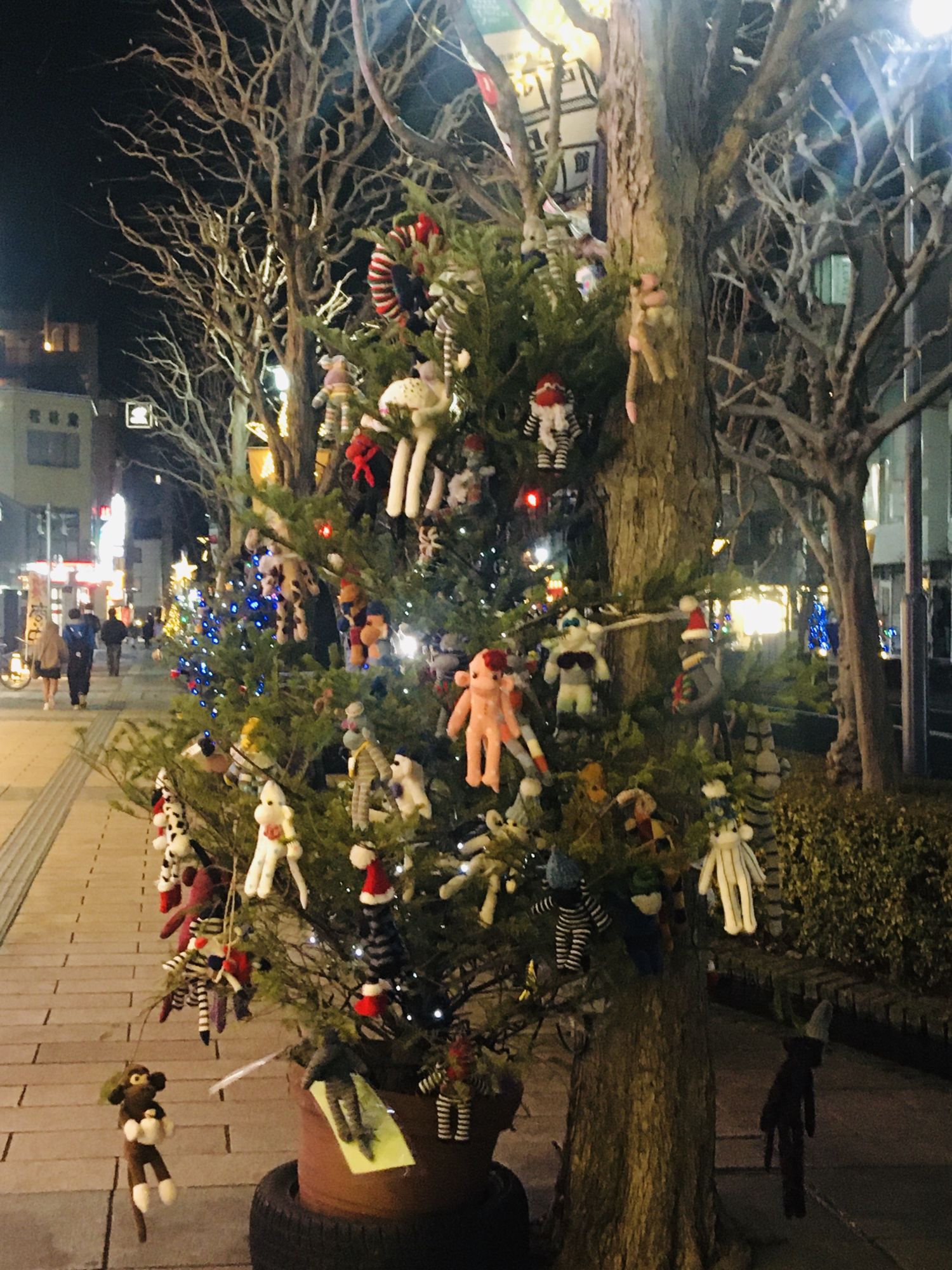 Dann rechts in die Isemachi-Straße. Hier stehen viele kleine Weihnachtsbäume, die alle individuell geschmückt sind und ein Thema haben.