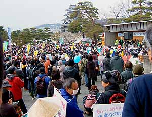 In Matsumoto, 1,800 people gathered at Matsumoto Castle Park, prayed for the victims at 2:46 pm when the quake hit East Japan, and marched in the town up to Matsumoto Station.