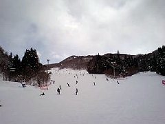 The resort basically consists of one wide run with a few smaller runs along the sides of the main one. There are 3 pair, or two person, lifts and 1 quad, or 4 person, lift. It is a small resort good for families. Snowbums and bunnies may grow a little bored, but it’s only 1000 yen! And if you just can’t pull yourself out of bed in the morning, you can always check out night skiing.
