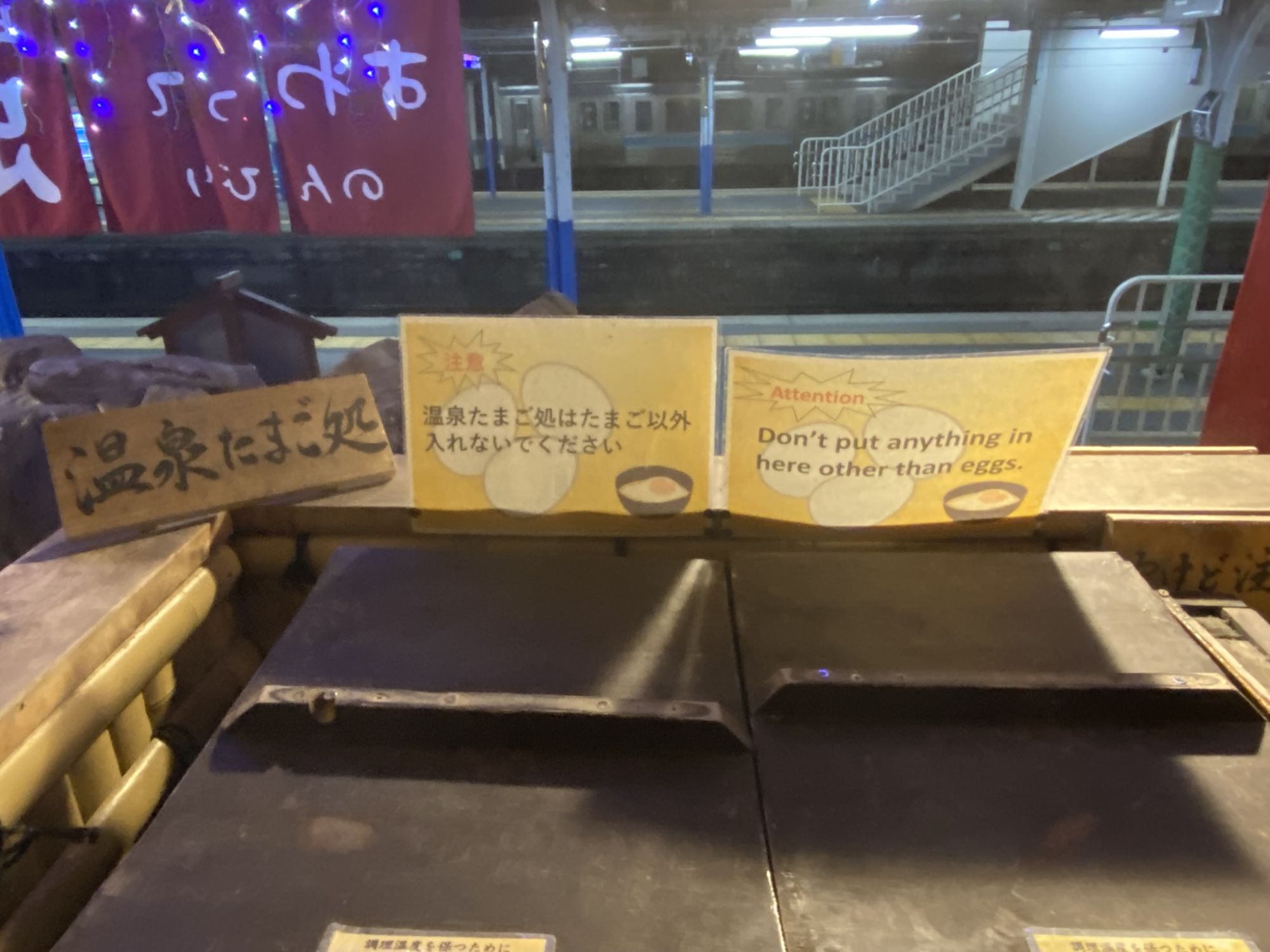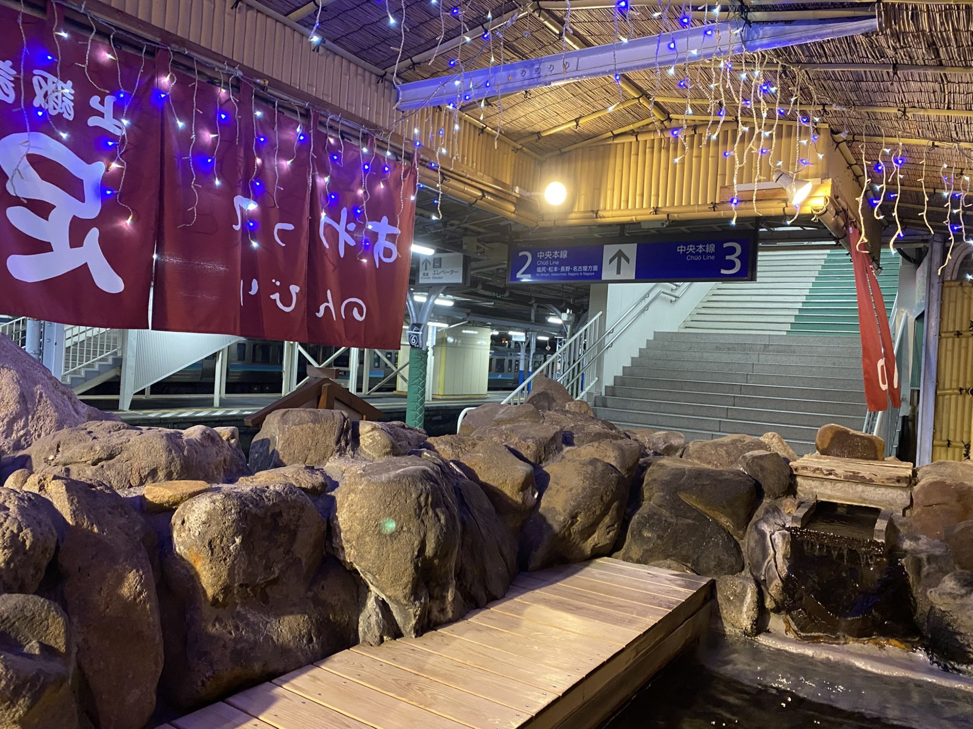 You can enjoy a foot bath while you wait for your train and there is a corner where you can hardboil an egg if you are feeling like a snack!