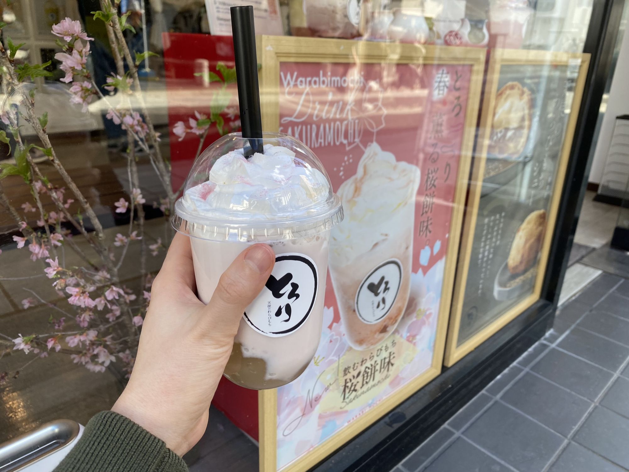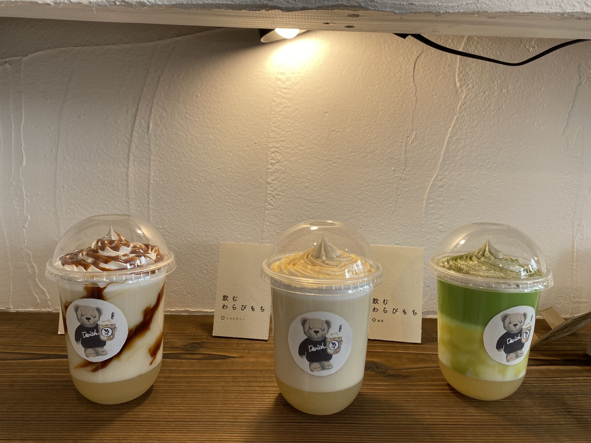 Warabimochi you can drink tops warabimochi with a milky drink and whip cream. It is a nice combination of wagashi and a cute drink that will appeal to young people.