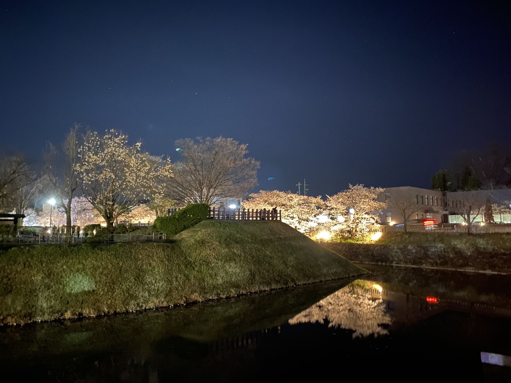 Every year, as the flowers bloom, the castle is lighted up with lanterns and sometimes the inner garden is open to visit for free. This is a nice evening view. The lightup lasts until 9PM.