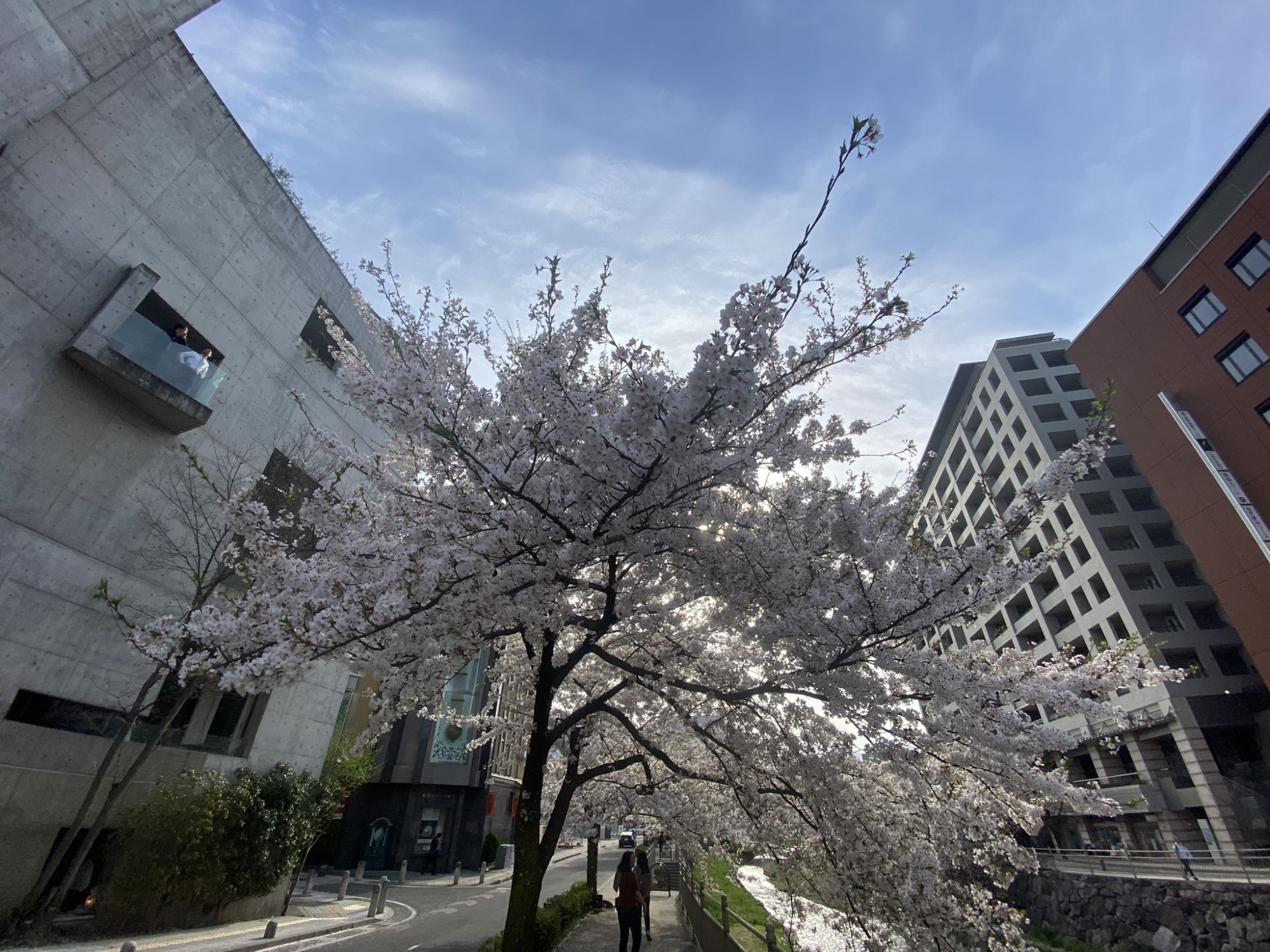 Walking along the river, near frog street, you can enjoy cherry blossoms. The riverside is also a great place to have a pic nic with friends in the afternoon.