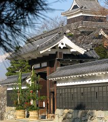 We can see traditional decorations using rice straw, pine leaves, and bamboo in front of houses, offices, and Matsumoto castle.