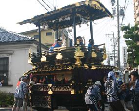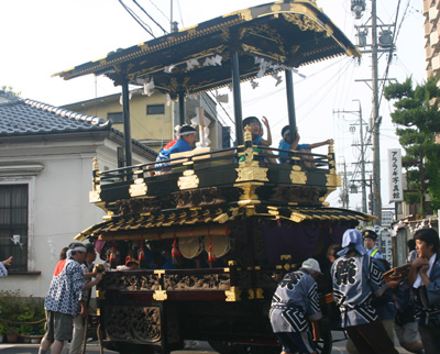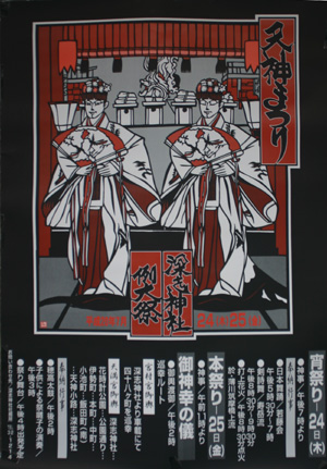 From 2:00 p.m. on the 25th, Mikoshi(a symbol of the shrine which people carry around the town to celebrate) and floats parade in down town area.
