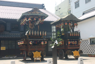 Within the precinct of the shrine,18 floats from every neighborhood around the shrine are displayed under the bright light. Food stalls with various Japanese fast food are everywhere in the shrine.