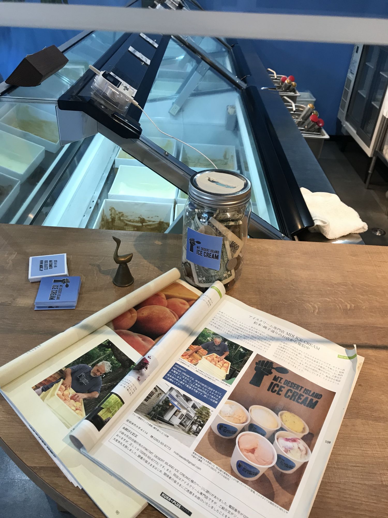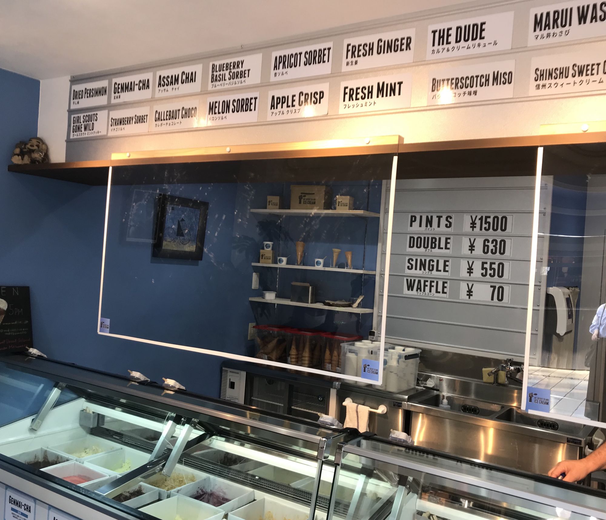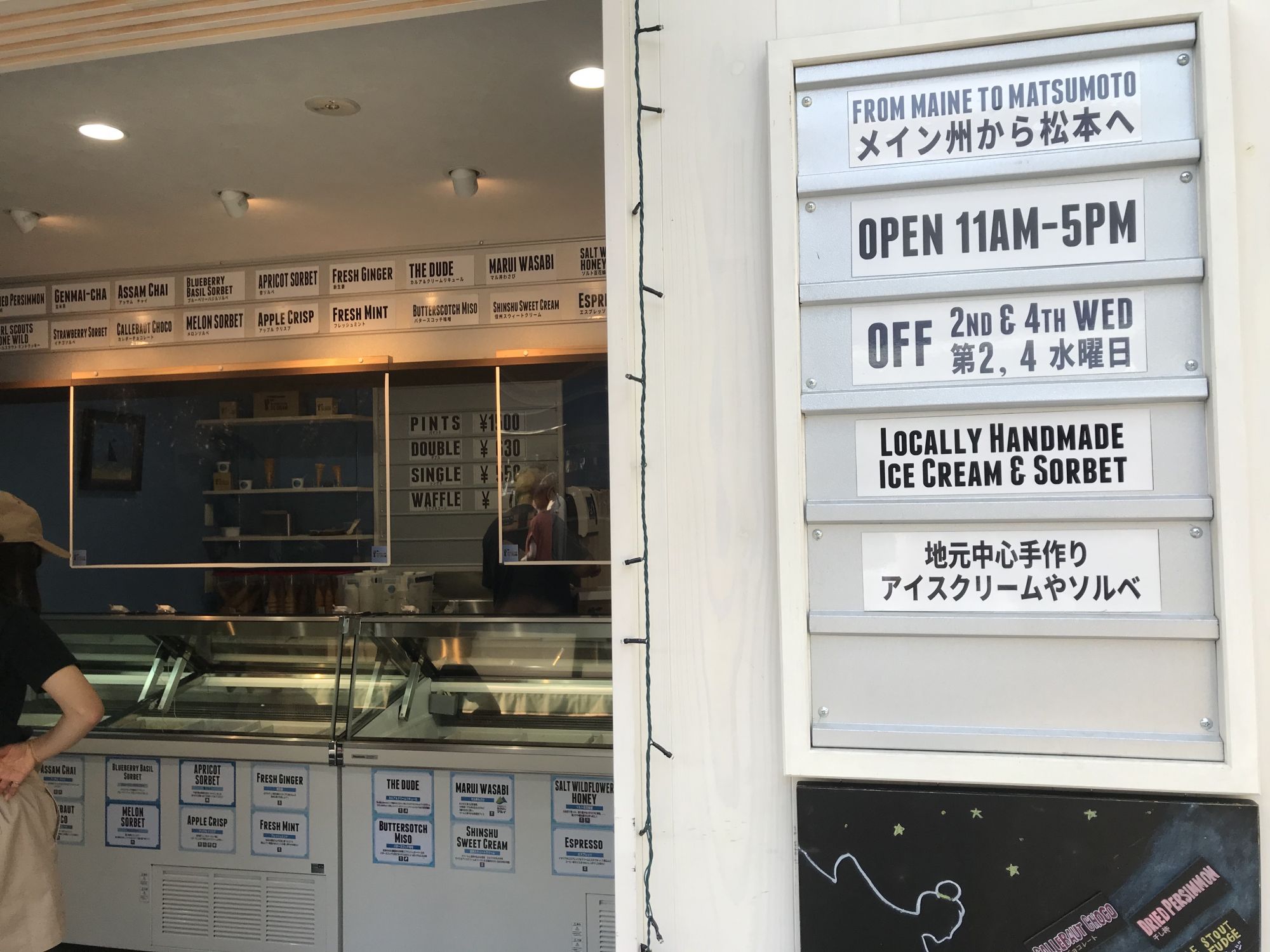 В чем секрет успеха — спросите вы?  В том, что все мороженное Келтона производится в Мацумото, только из натуральных ингредиентов  по оригинальной рецептуре. Так, в мае-июне хитом продаж была «клубника со сливками», в июле-августе дыневый и ягодный сорбеты, по осени — виноград и яблоко. Помимо сезонных вкусов в Mt. Desert Island можно попробовать мороженное изготовленное из мисо, которым так славится Мацумото, или васаби, выращенное в соседней деревушке. Пару дней назад в продажу вышло мороженное со вкусом чиз-кейка.