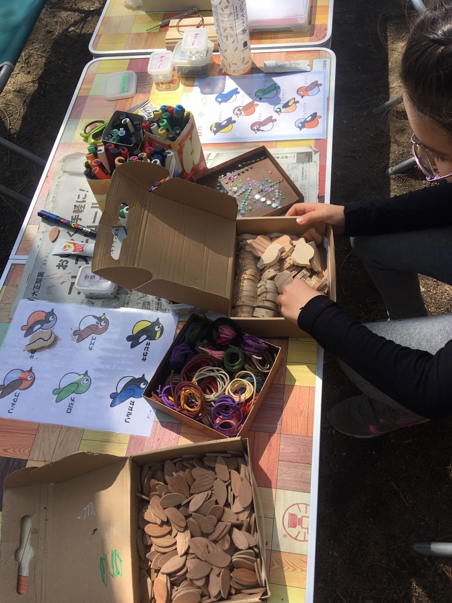 Детям предлагается принять участие в мастер классах: сделать деревянную птичку -подвеску, разукрасить сувенир-магнит, изготовить заколку или закладку для книги собственного дизайна или же сплести браслет в технике макраме.