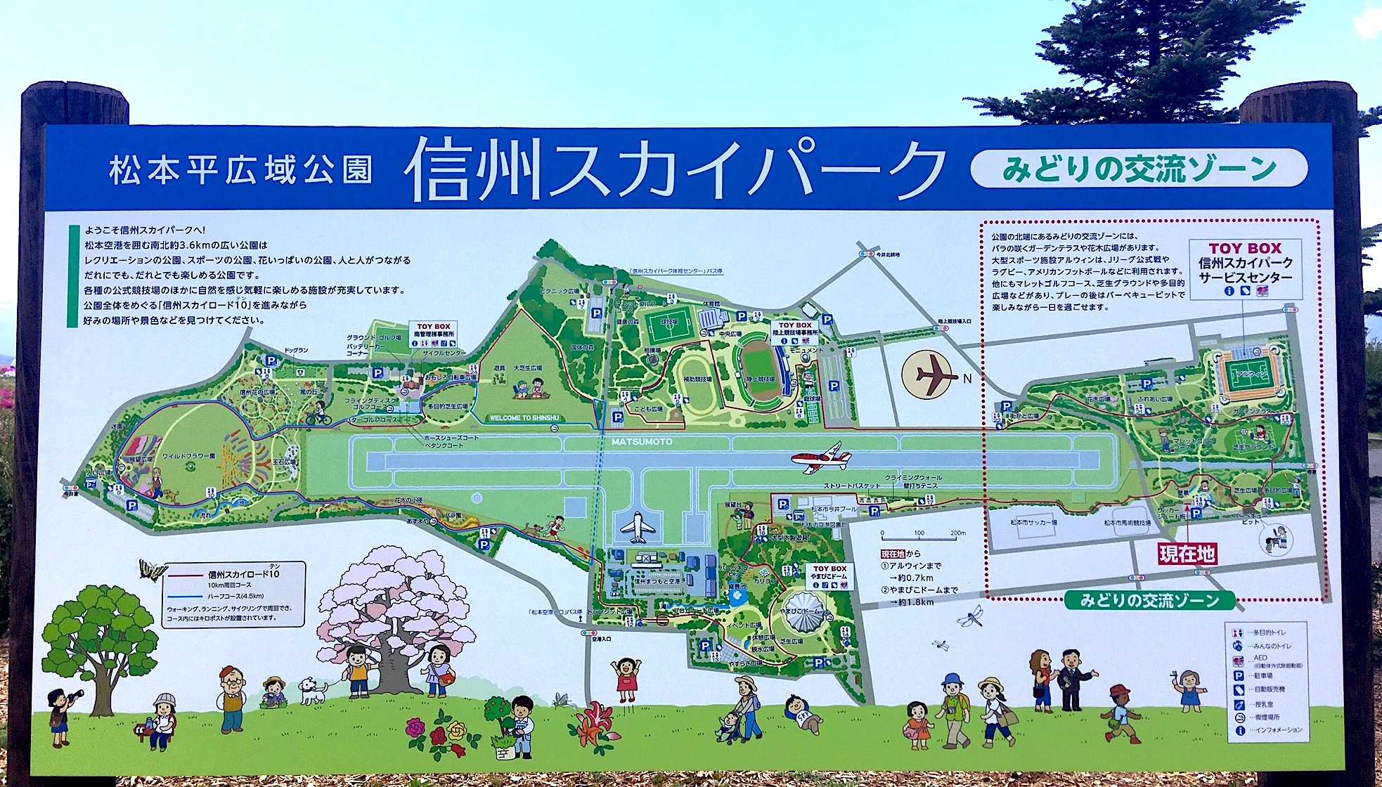Скай парк (Sky park) находится непосредственно возле аэропорта Мацумото. Огромный парк раскинулся вдоль взлетной полосы, с холмов и пригорков парка можно наблюдать за взлетающими и приземляющимися самолетами.