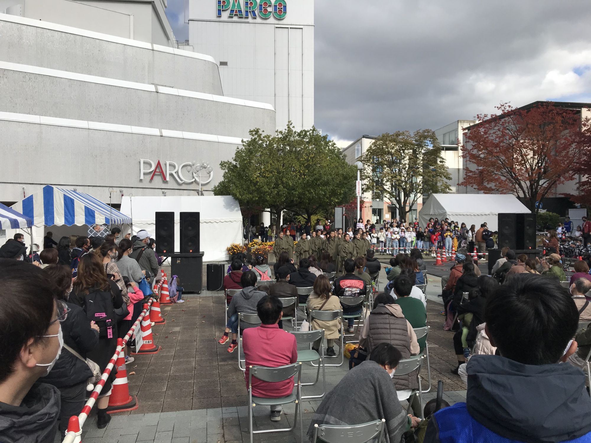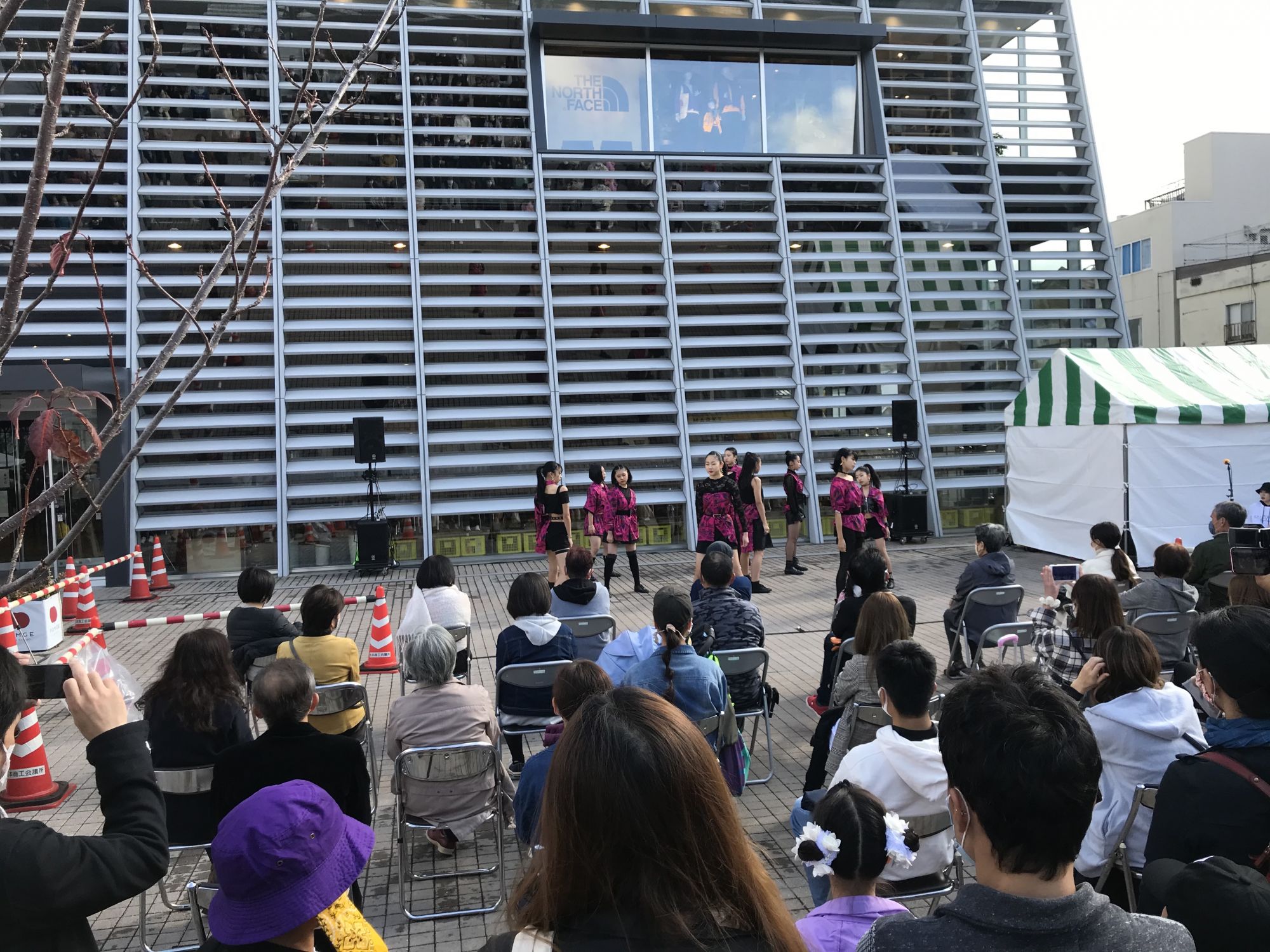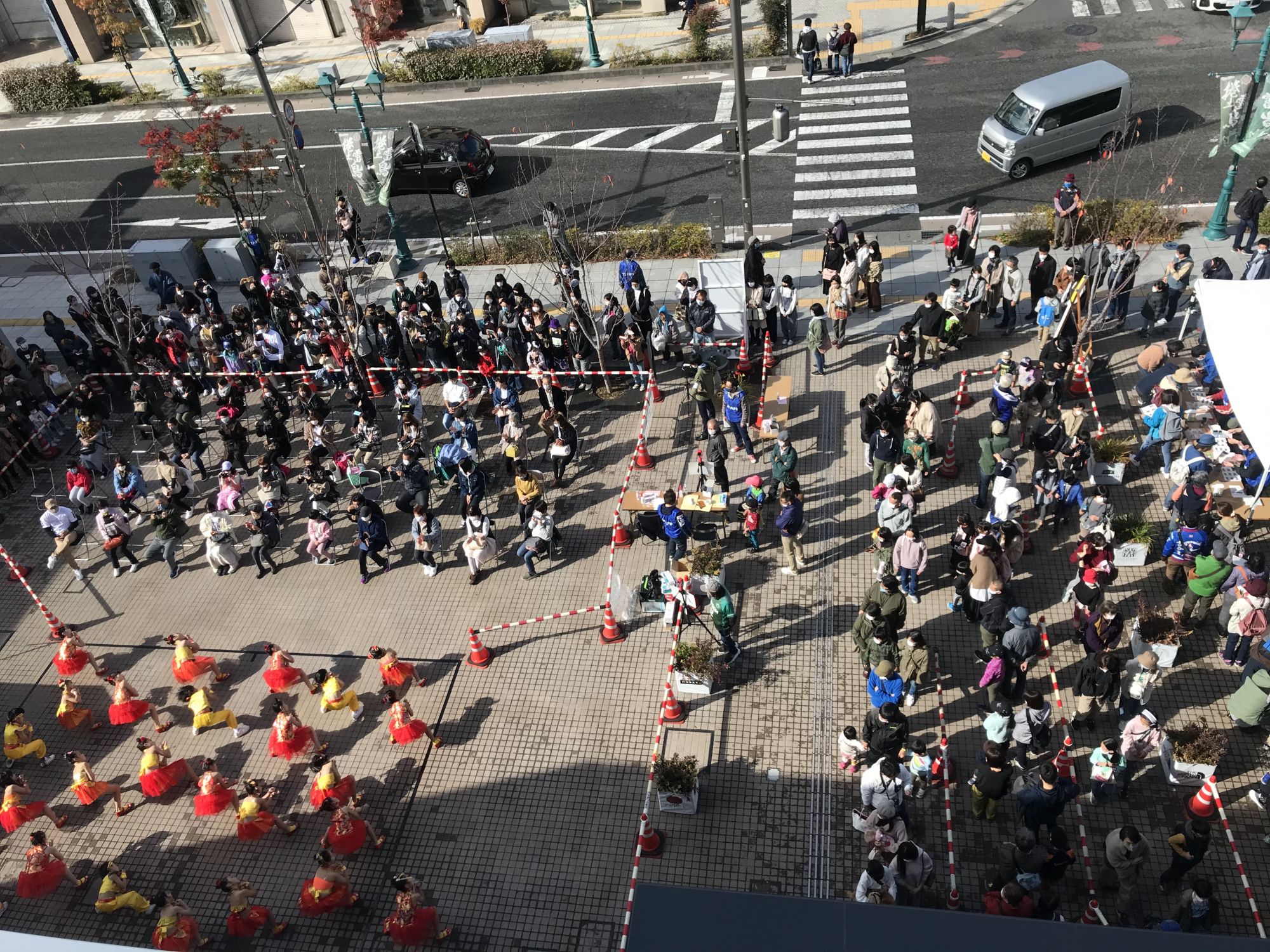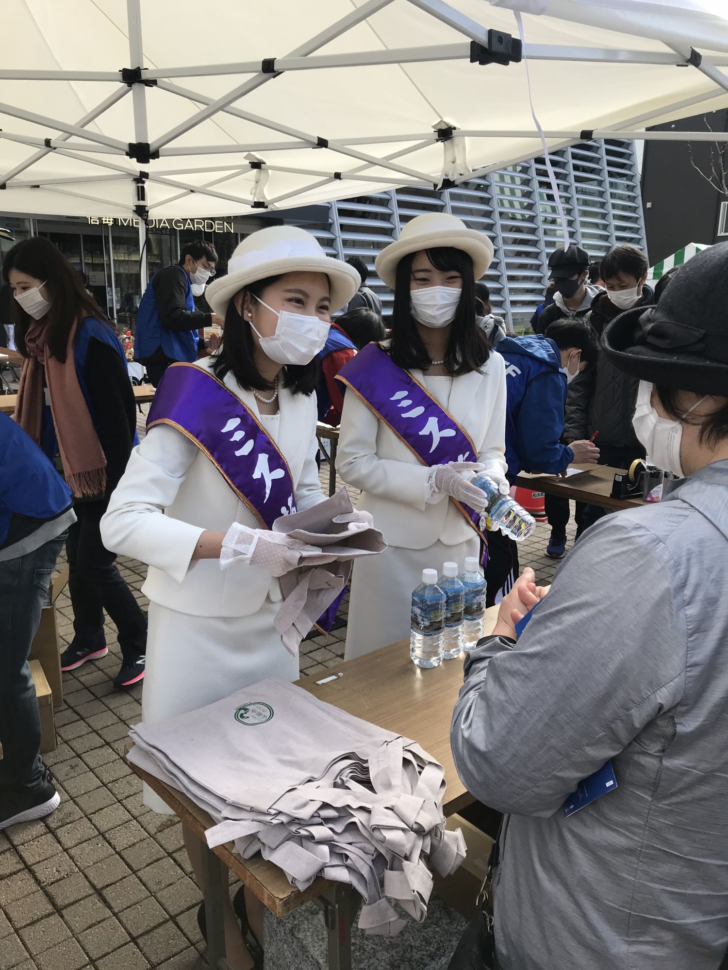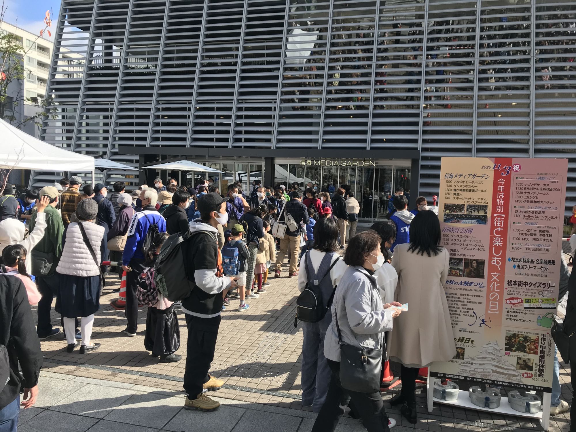 На площадке перед зданием Media Garden желающие могли получить программу праздника с расписанием и местом прохождения мероприятий . 200 первых счастливчиков в подарок к программе получили эко-сумку и бутылку питьевой воды из рук прошлогодней и нынешней мисс Мацумото. С утра здесь же выступали детские и молодежные танцевальные студии, а после полудня старшеклассники продемонстрировали написание иероглифов гигантской кистью.