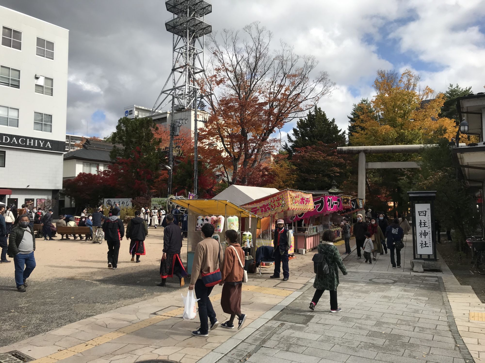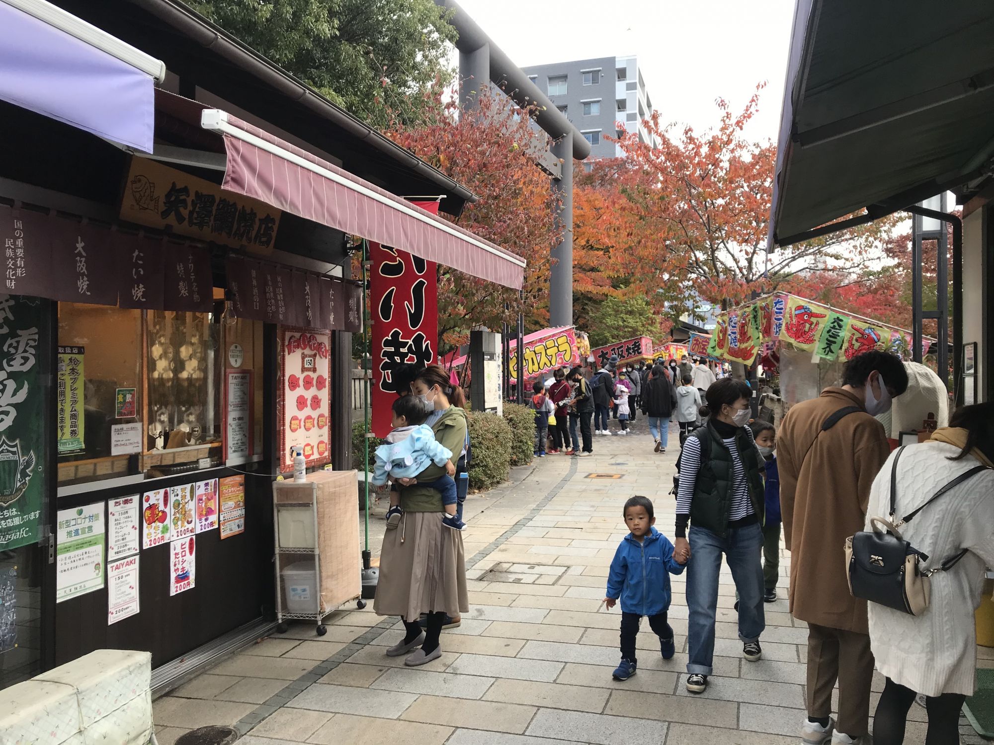 На улице Навате , как и положено в праздничные день, работали палатки с уличной едой и традиционными сладостями — яблоки в карамели на полочках, сладкая вата. Возле полицейского участка проходило выступление барабанщиков. На территории храма Ёхасира было многолюдно и оживленно.