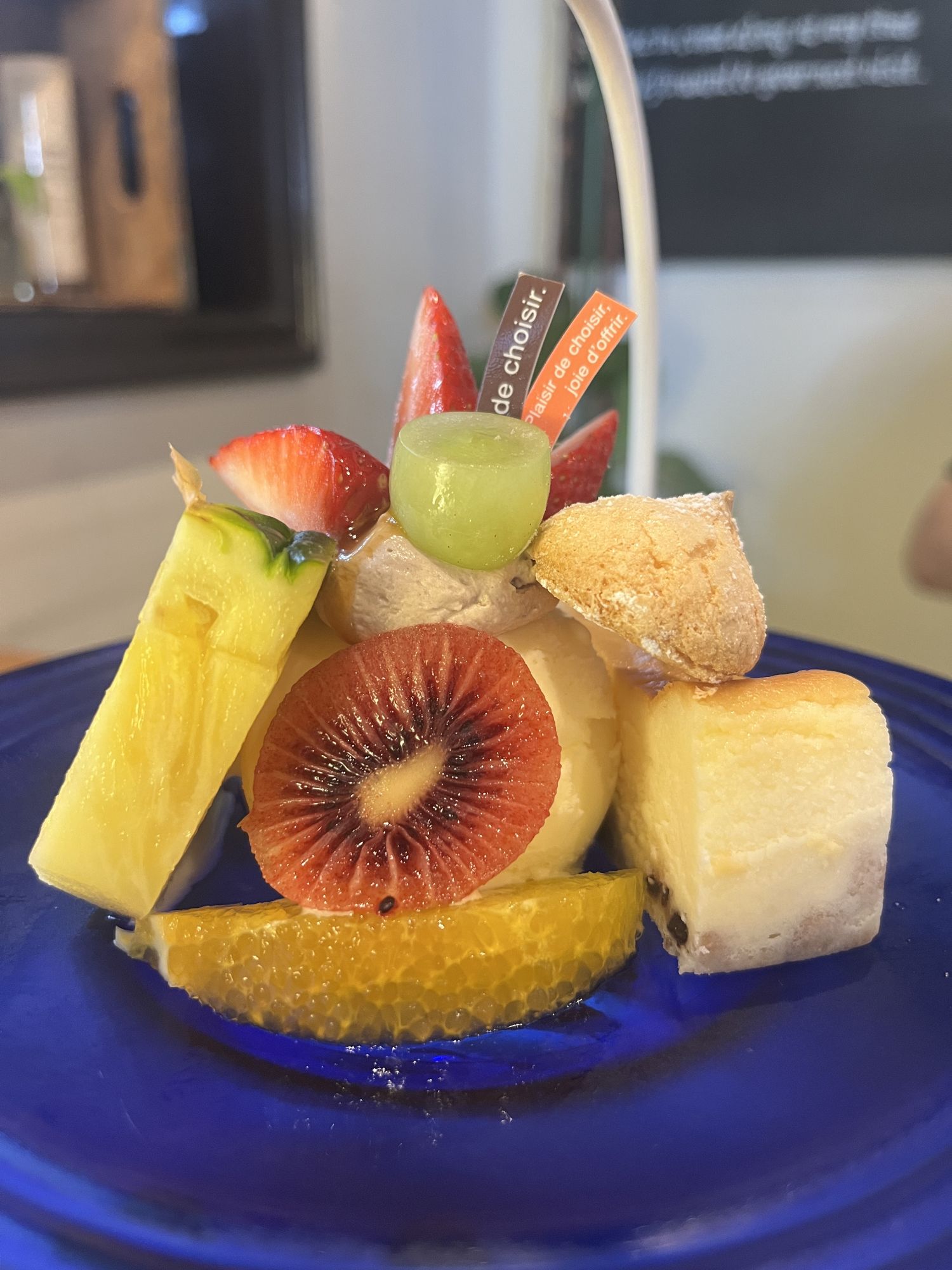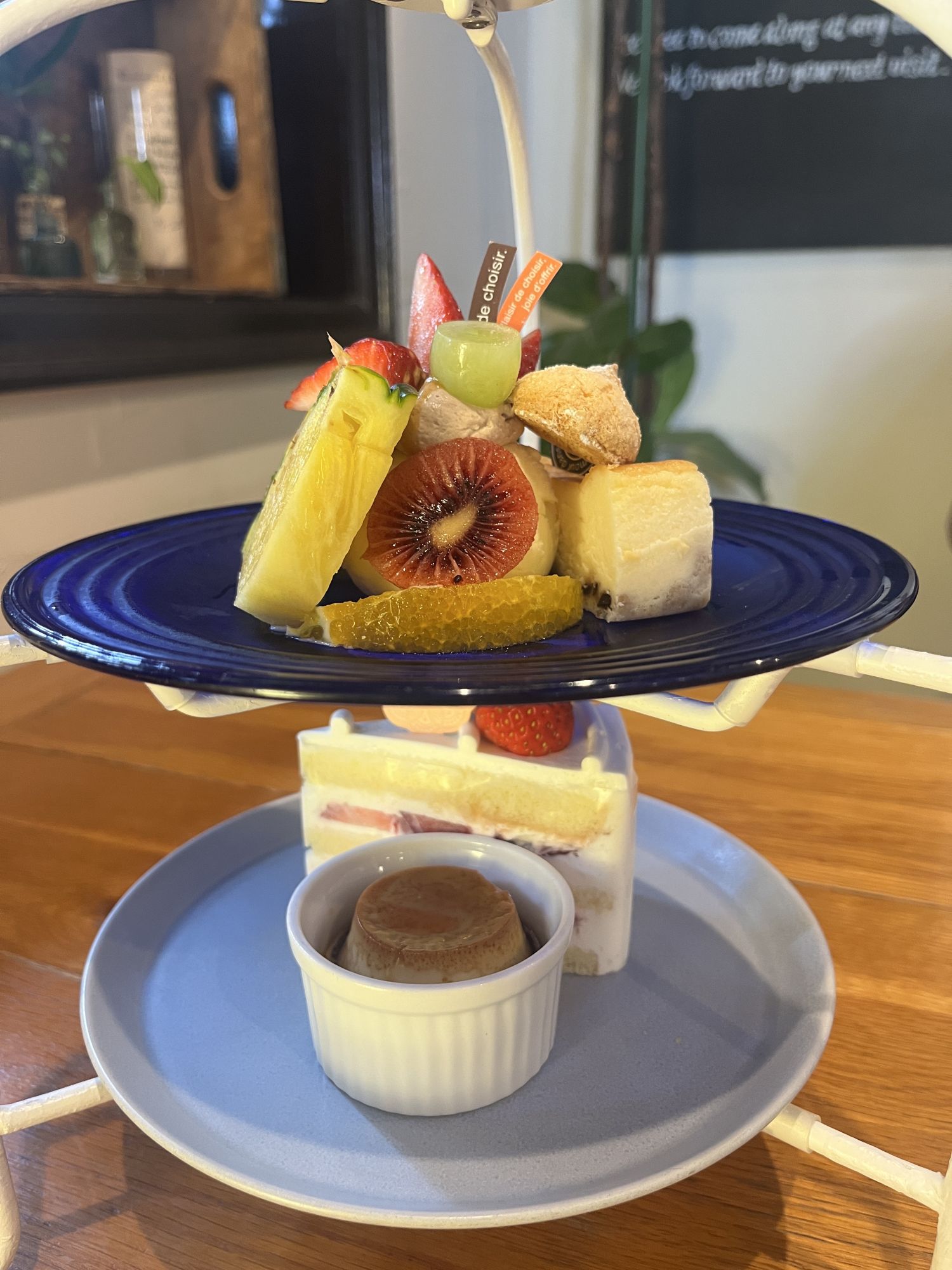 เมื่อคุณเข้าไปในร้าน คุณจะสังเกตเห็นตู้โชว์ที่เต็มไปด้วยเค้กที่เรียงกันอย่างประณีต และคุณจะต้องหลงใหลในความสวยงามของมัน พนักงานร่าเริงและเป็นมิตรจะนำคุณไปยังที่นั่งของคุณ ครั้งนี้ฉันเลือกเมนูเซ็ทข้าวไข่เจียวราดซอสมะเขือเทศยอดนิยม พาสต้า เค้ก และผลไม้ค่ะ การรอคอยนั้นไม่นานนัก และอาหารก็ถูกเสิร์ฟในขณะที่ฉันนั่งชมบรรยากาศภายในร้านอันสวยงาม ข้าวไข่เจียวราดซอสมะเขือเทศอร่อยมาก ไข่เนื้อนุ่ม และรสชาติกลมกล่อม ปริมาณอาหารค่อนข้างเยอะ ส่วนพาสต้าที่ปรุงสุกกำลังดีเข้ากันดีกับซอสทำให้มีรสชาติอร่อยมาก เค้กที่รวมอยู่ในเซ็ทเค้กนั้นเลือกได้ตามความต้องการของคุณ เค้กไม่หวานเกินไปและทานง่ายค่ะ