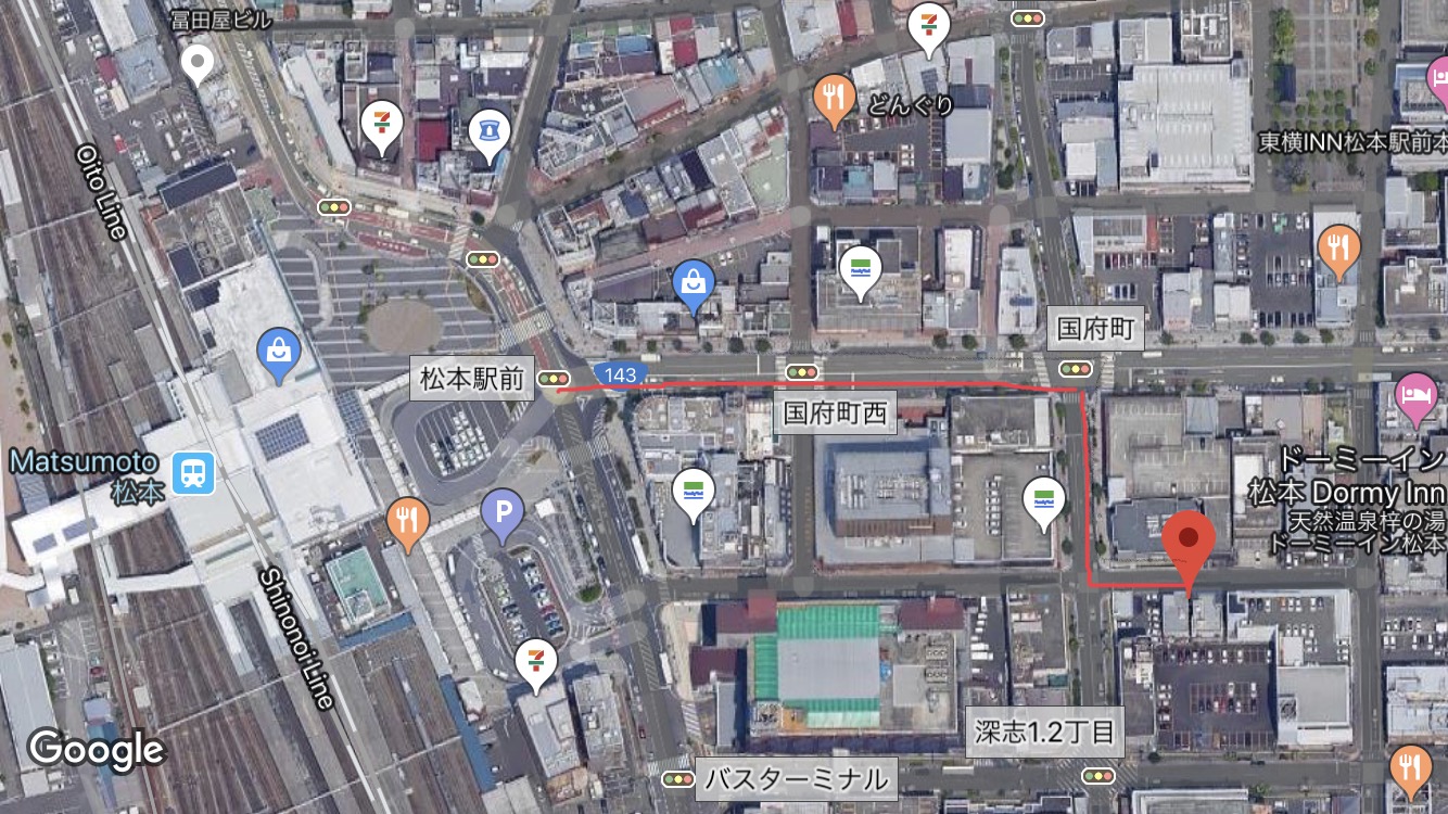 พิกัดร้าน อยู่ไม่ไกลจากสถานีมัตสึโมโต้นัก เดินประมาณ 5 นาทีก็ถึงร้าน จากถนนหน้าสถานีเดินตรงขึ้นไปตามถนนที่จะไปพิพิธภัณฑ์ศิลปะเมืองมัตสึโมโต้ เดินเรื่อยๆ จนถึงแยกไฟแดงที่ 2 แยก “kochou machi” แล้วเลี้ยวขวา ตรงทางเข้าร้านจะเป็นร้านให้เช่ารถของโตโยต้า เลี้ยวเข้าตรงซอยข้างร้านเช่ารถของโตโยต้าประมาณ 10 เมตร