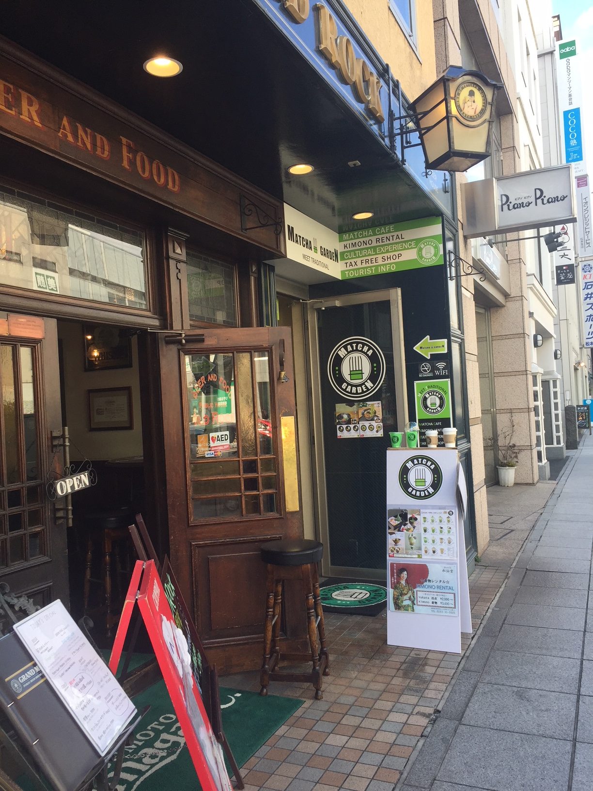ที่มัชชะการ์เด้น เป็นคาเฟ่ที่ขายเครื่องดื่มและอาหารจำพวกบะหมี่ที่ทำจากชาเขียวโดยเฉพาะ
