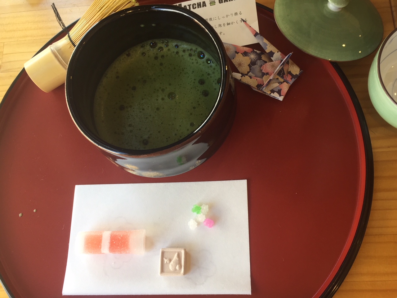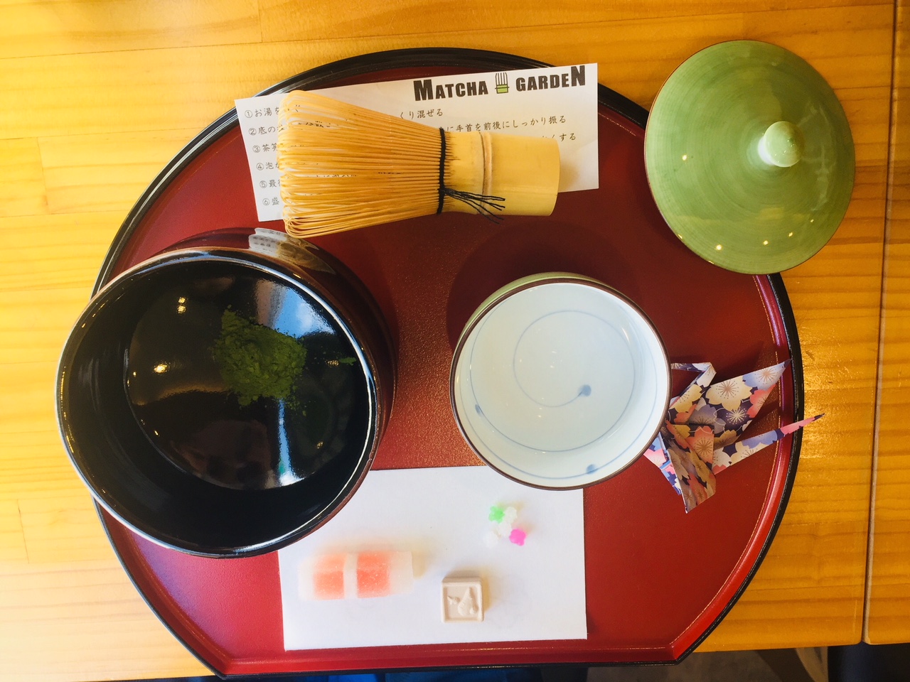 ทางร้านจะคอยแนะนำวิธีการชงชาให้ โดยให้ใช้ไม้ไผ่คนขึ้นลง จนผงชากับน้ำร้อนเข้ากันดี จากนั้นก็ค่อยๆ ดื่มมัชชะรสเข้มข้นออกขมนิดหน่อย ทานคู่กับขนมญี่ปุ่นรสหวานที่ทางร้านเสิร์ฟให้