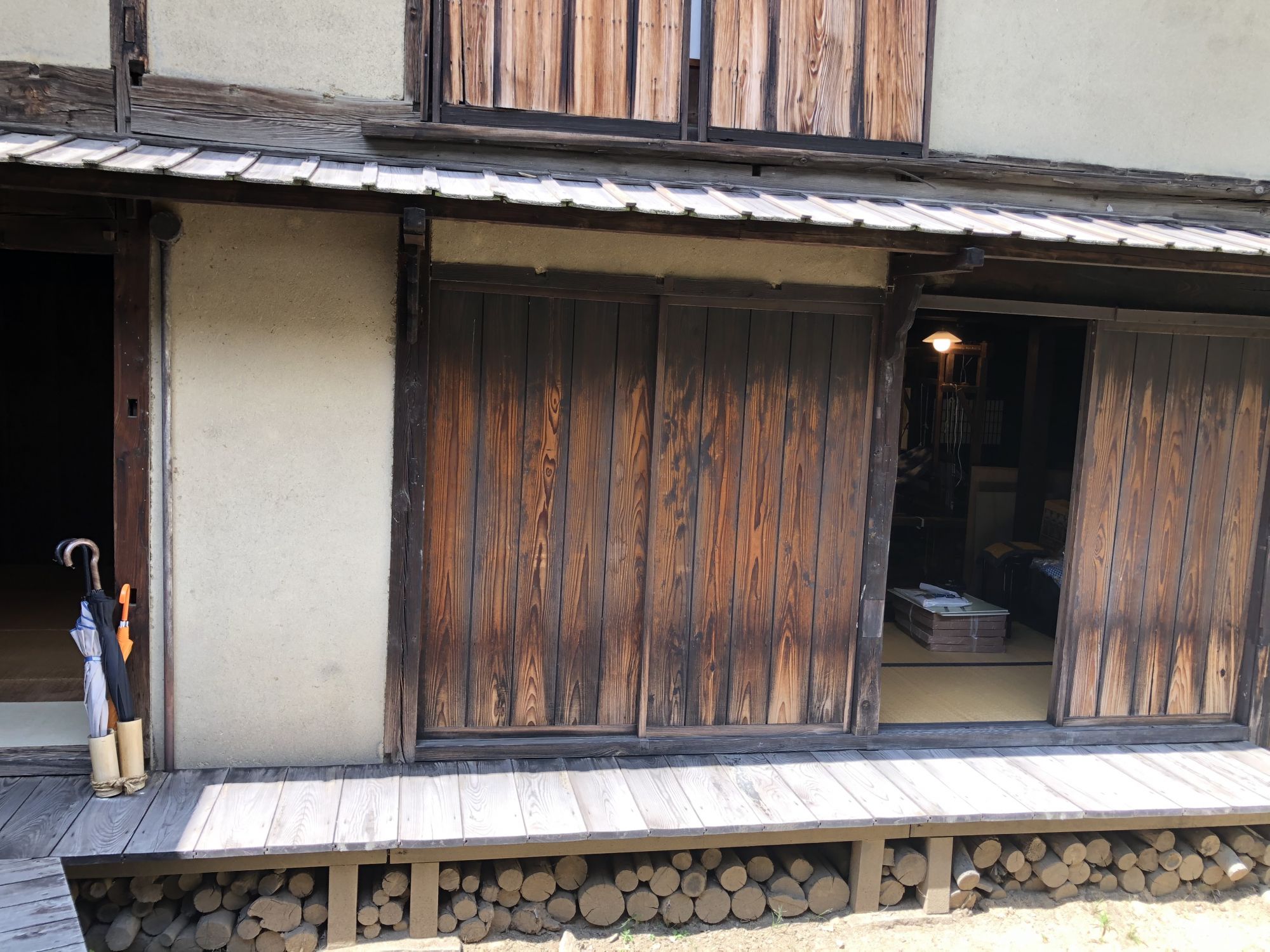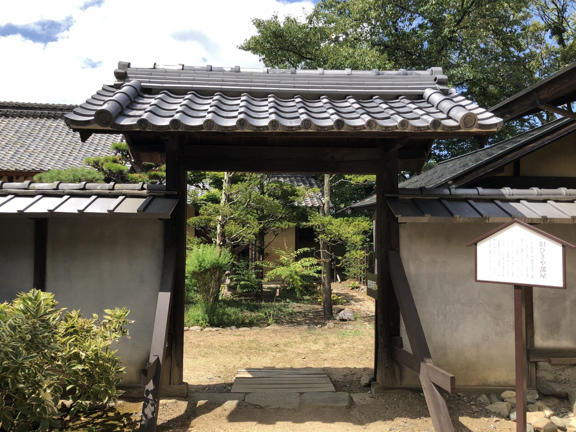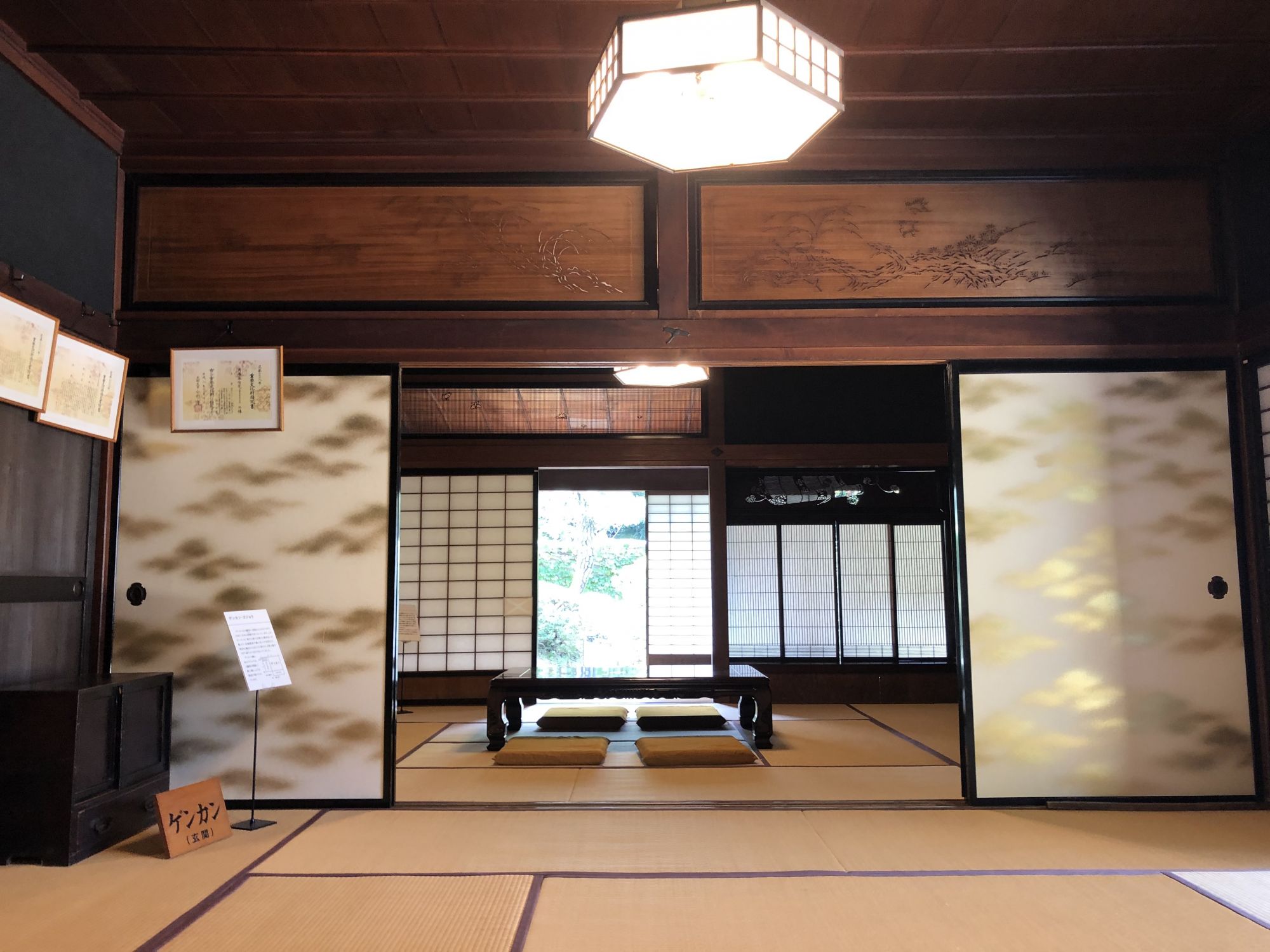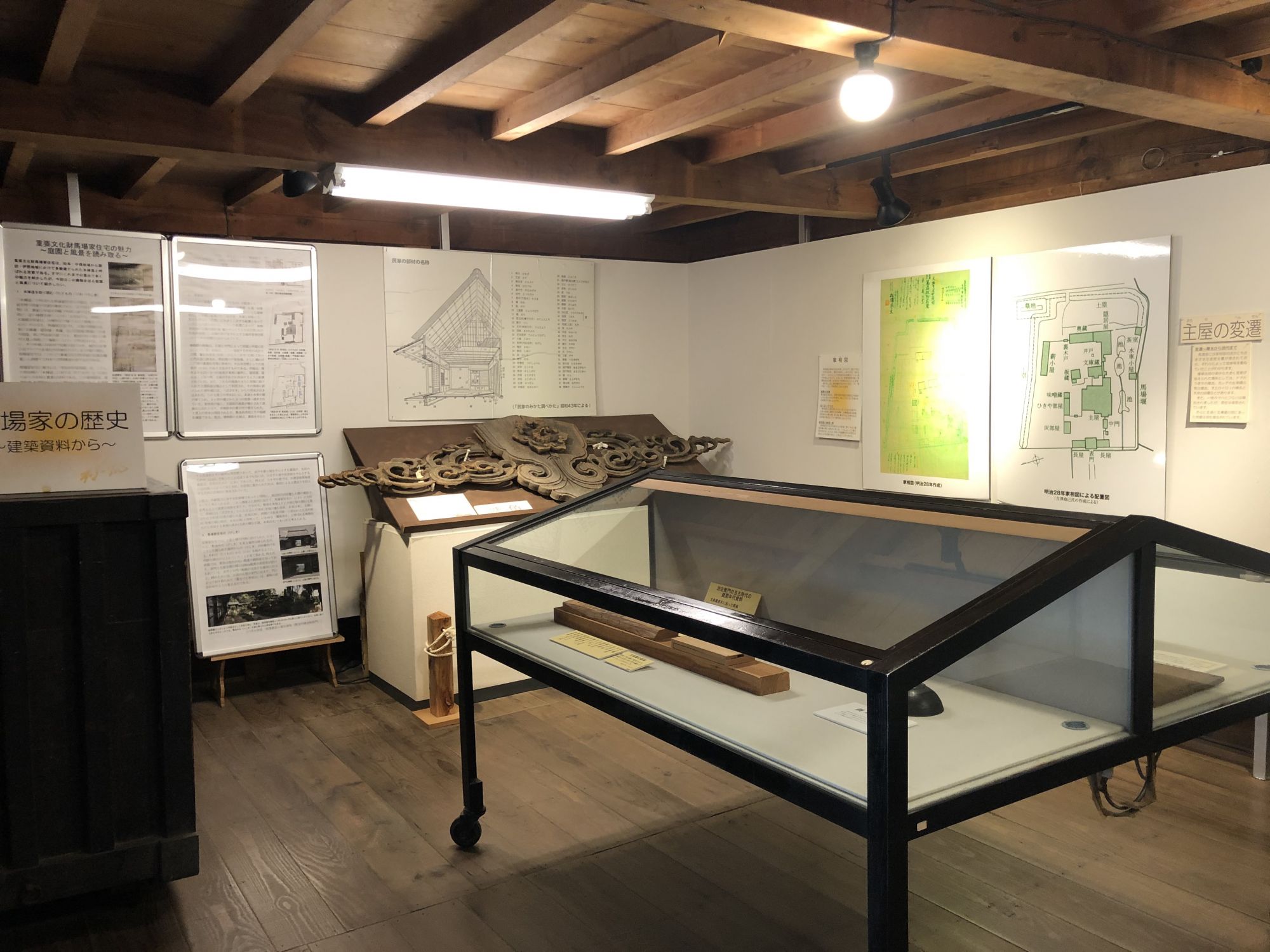 การเยี่ยมชมภายในบ้านจะต้องถอดรองเท้าไว้ที่พื้นดิน ห้ามถอดบนเสื่อทาทามินะคะ ที่หอเก็บเอกสารได้จัดแสดงกระเบื้องมุงหลังคาและไม้ประดับบริเวณปั้นลม กระเป๋าเดินทางของเจ้าของบ้านรุ่นที่ 15 ซึ่งดำรงตำแหน่งเป็นเจ้าหน้าที่การทูตในยุคเมจิ หากจะไปที่หอเก็บเอกสาร ซึ่งเป็นอาคารผนังสีขาวที่อยู่ใกล้ๆตัวบ้านจะต้องสวมรองเท้าแตะที่ถูกเตรียมไว้ที่ชั้นวางรองเท้า