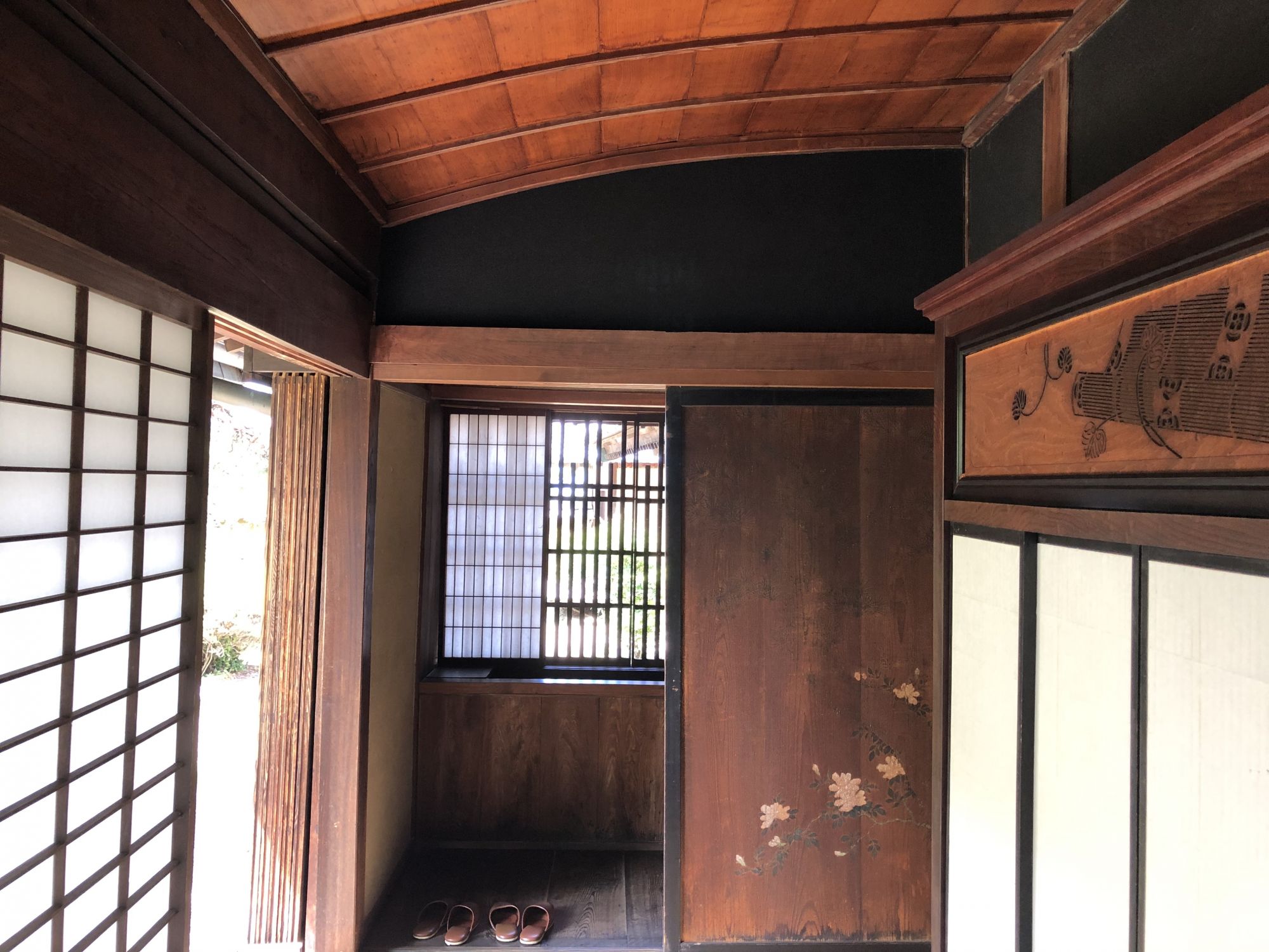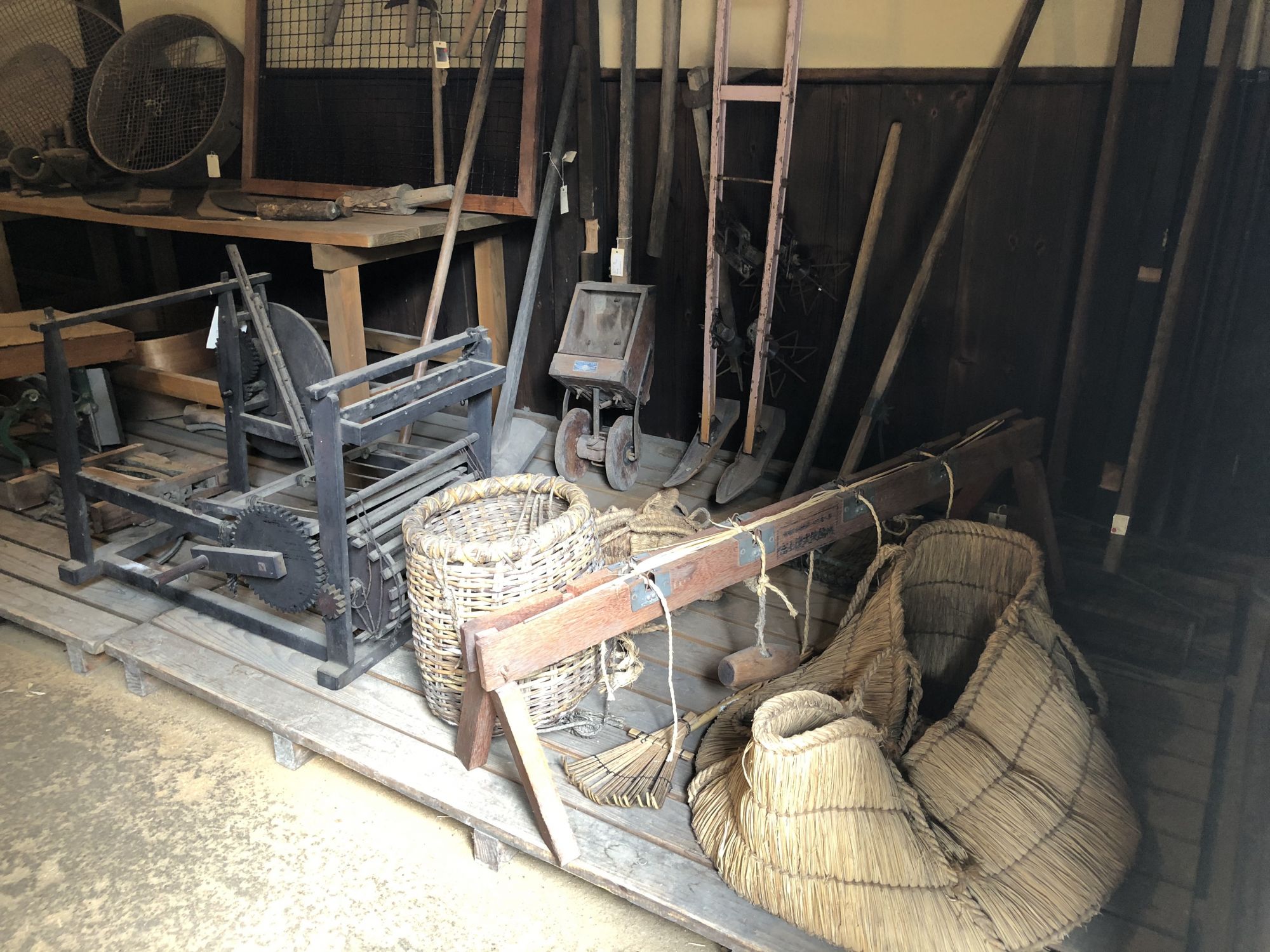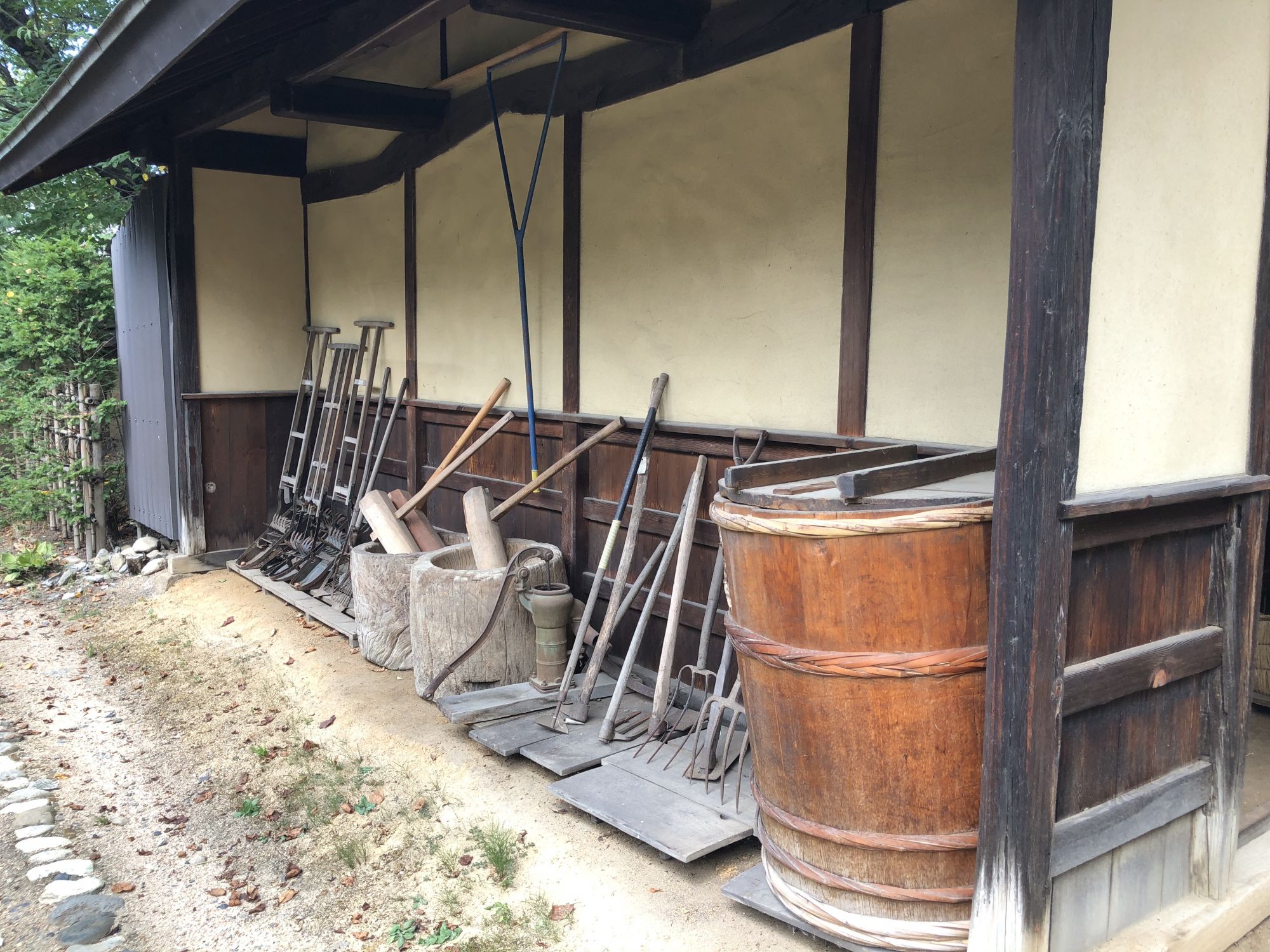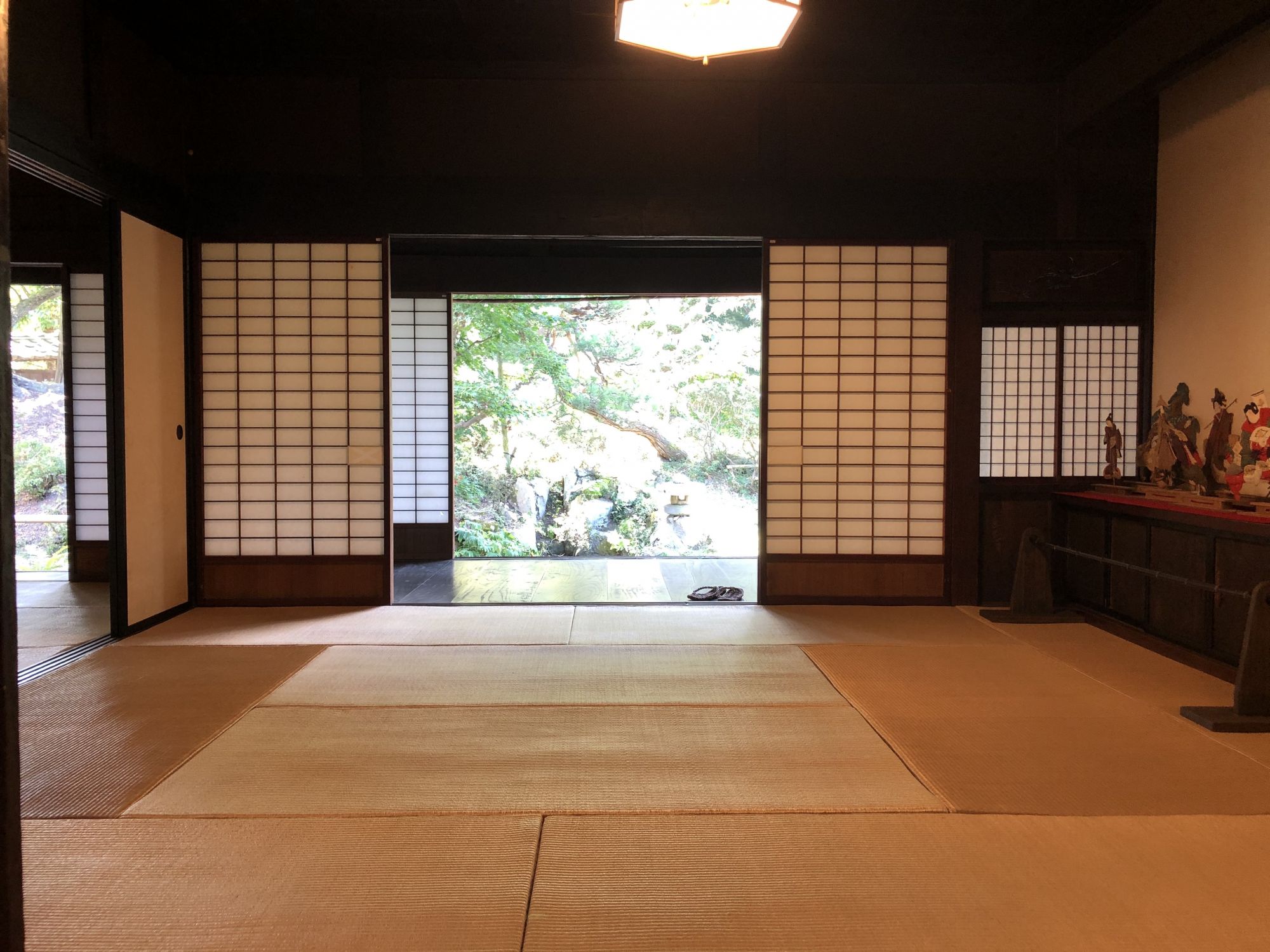 การเยี่ยมชมภายในบ้านจะต้องถอดรองเท้าไว้ที่พื้นดิน ห้ามถอดบนเสื่อทาทามินะคะ ที่หอเก็บเอกสารได้จัดแสดงกระเบื้องมุงหลังคาและไม้ประดับบริเวณปั้นลม กระเป๋าเดินทางของเจ้าของบ้านรุ่นที่ 15 ซึ่งดำรงตำแหน่งเป็นเจ้าหน้าที่การทูตในยุคเมจิ หากจะไปที่หอเก็บเอกสาร ซึ่งเป็นอาคารผนังสีขาวที่อยู่ใกล้ๆตัวบ้านจะต้องสวมรองเท้าแตะที่ถูกเตรียมไว้ที่ชั้นวางรองเท้า