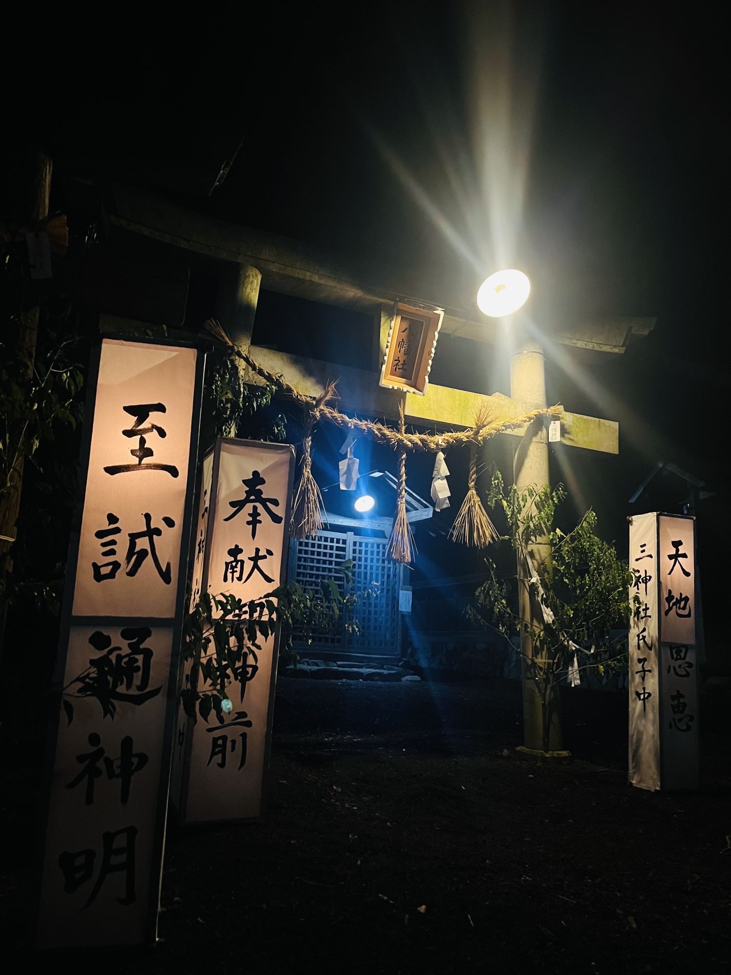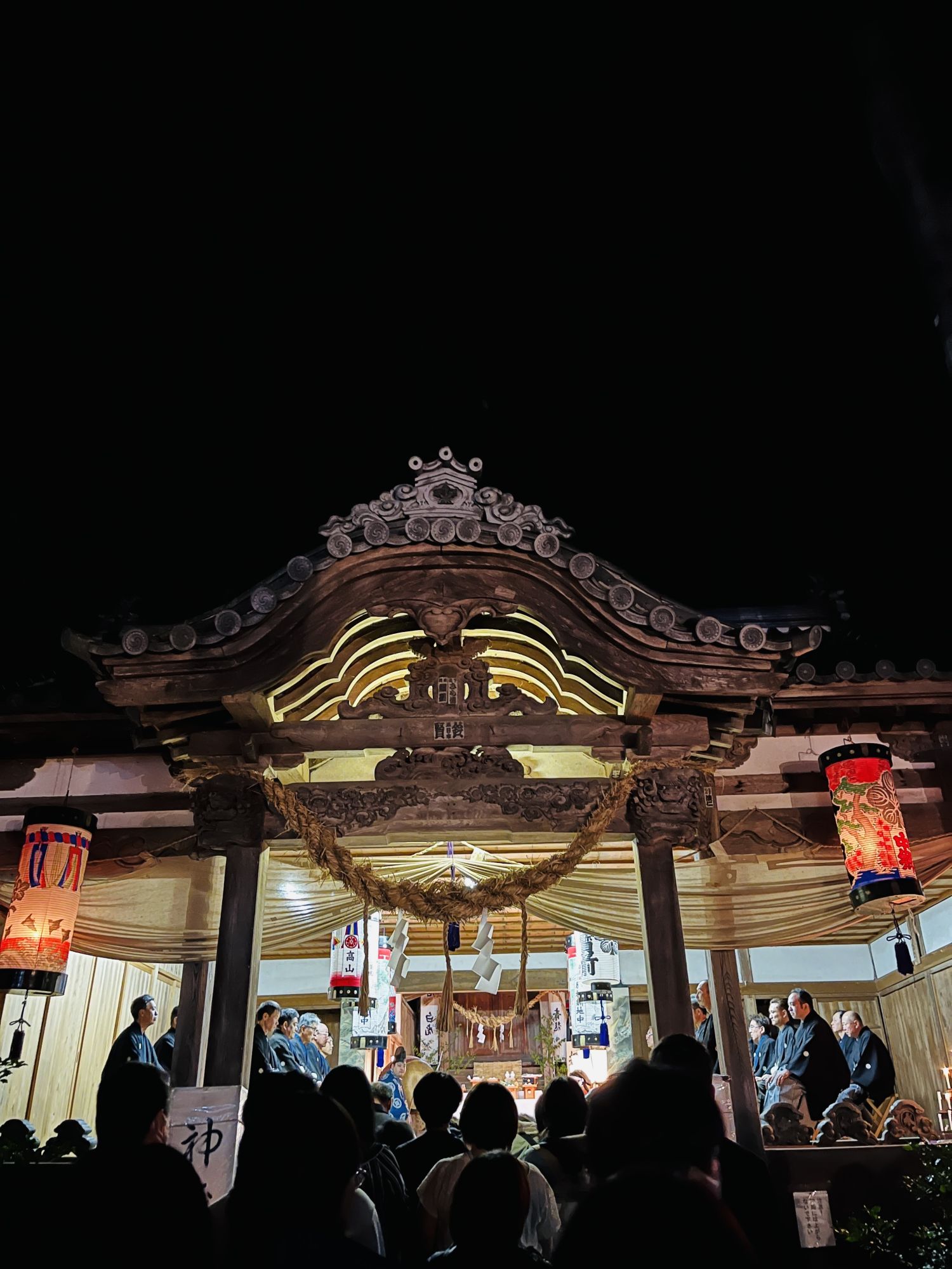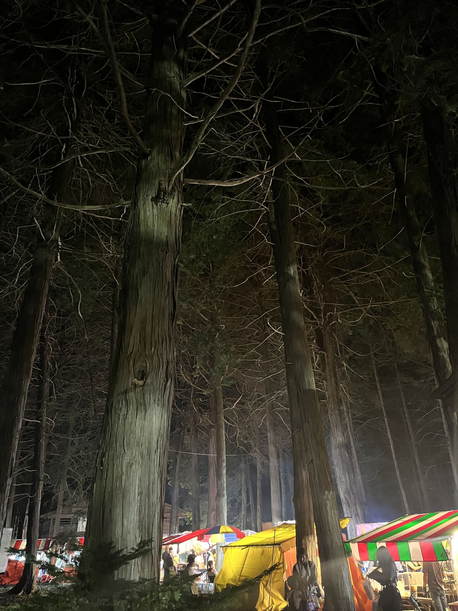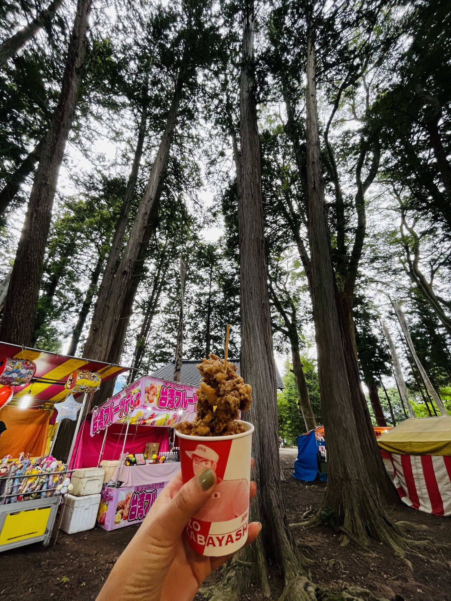 ในตอนกลางคืนร้านค้าต่างๆ จะเปิดที่ศาลเจ้า และศาลเจ้าก็จะเต็มไปด้วยผู้คน ผู้คนมาสวดมนต์ที่ศาลเจ้าก่อน หลังจากนั้น เพลิดเพลินกับแผงขายของตามเทศกาลและความบันเทิง แผงขายอาหารทั่วไป ได้แก่ ปลาหมึกย่าง มาส์ก สายไหม เนื้อเสียบไม้ เครป ทาโกะยากิ ยากิโซบะ เกมยิงปืน และตั๋วลอตเตอรี่