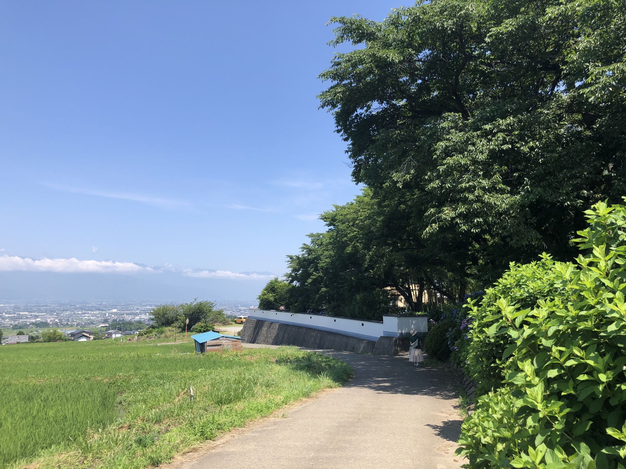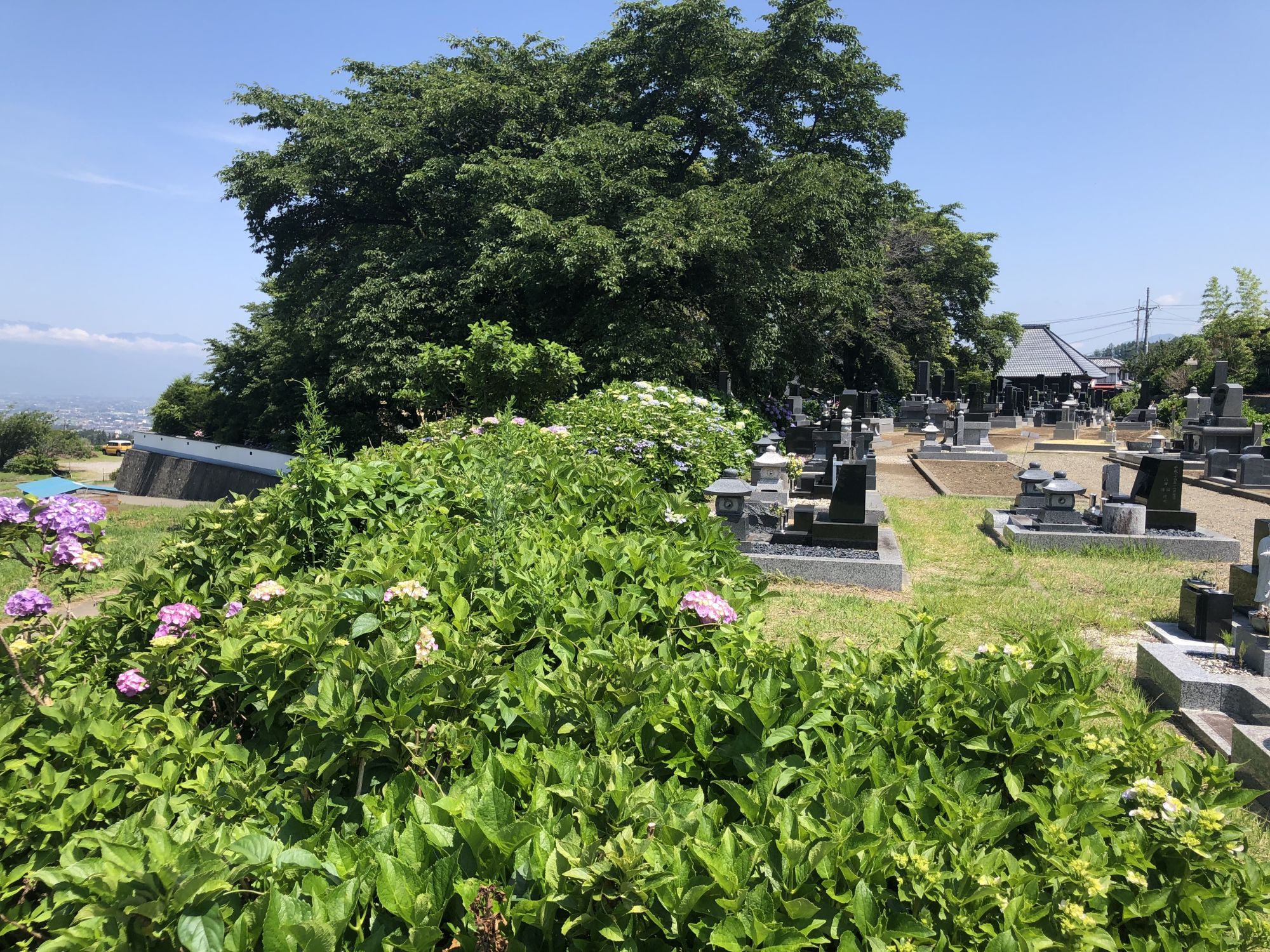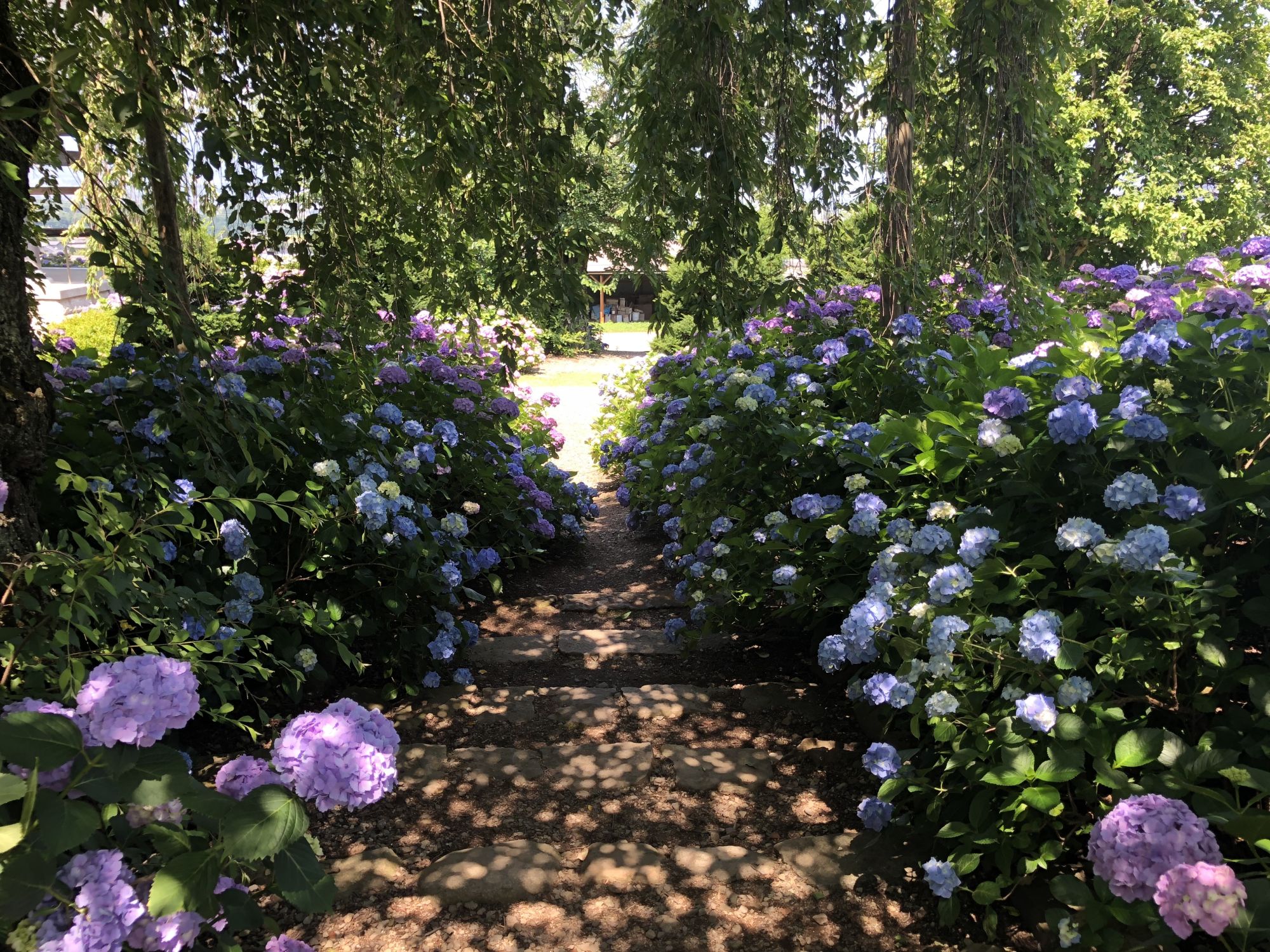 ทางสำหรับเดินชมดอกไฮเดรนเยียจะอยู่ติดกับสุสาน แต่ก็ไม่ได้น่ากลัว