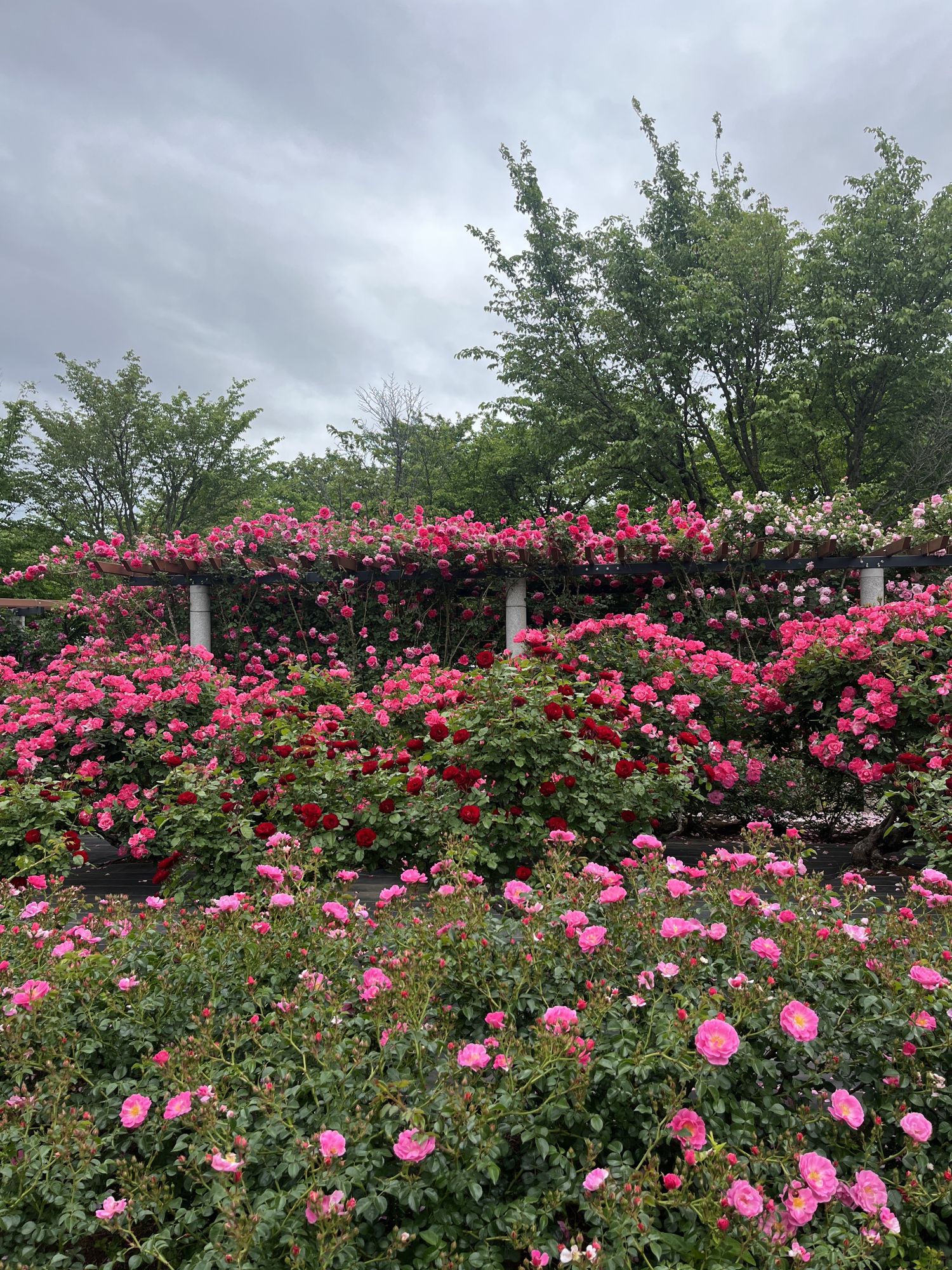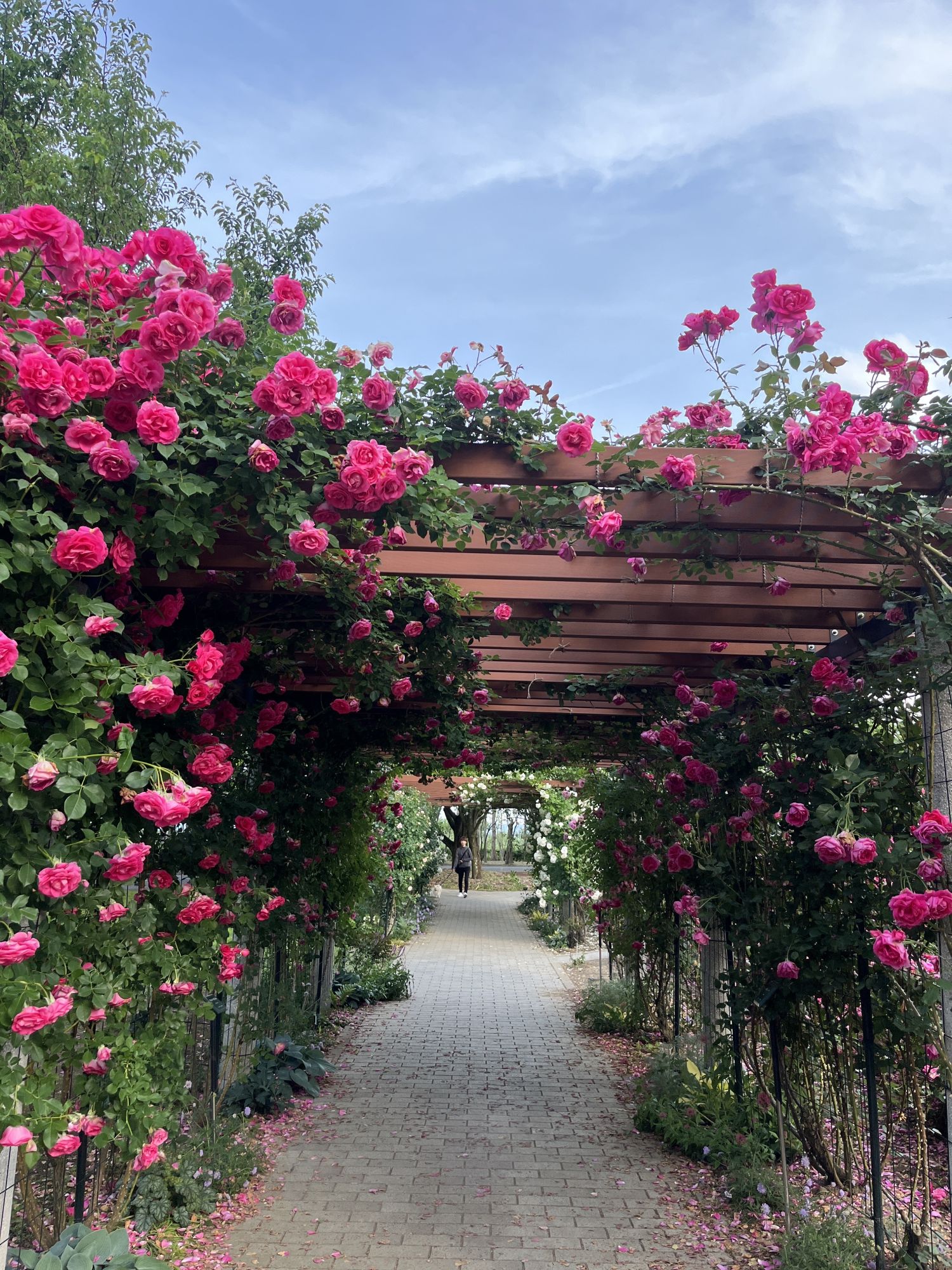 ดอกกุหลาบมักจะเริ่มบานในช่วงปลายเดือนพฤษภาคมและบานเต็มที่ในเดือนมิถุนายน เมื่อคุณเดินเข้าไปในสวนกุหลาบจากที่จอดรถของโซน Flower Promenade คุณจะพบกับอุโมงค์กุหลาบริมถนน อุโมงค์กุหลาบทรงโค้งที่บานสะพรั่งเป็นจุดที่เหมาะแก่การถ่ายรูปเป็นอย่างยิ่ง