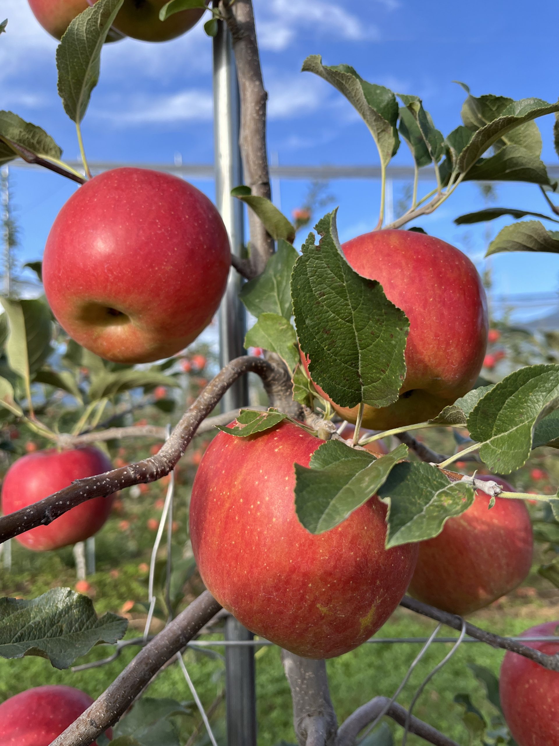 ฤดูเก็บเกี่ยวแอปเปิ้ลในเมืองมัตสึโมโต้แตกต่างกันไปตามสายพันธุ์ แต่โดยทั่วไปจะอยู่ในช่วงปลายเดือนสิงหาคมถึงต้นเดือนธันวาคม ช่วงปลายเดือนกันยายนถึงปลายเดือนพฤศจิกายนเป็นช่วงพีคของ “แอปเปิ้ลสามพี่น้อง” ได้แก่ อากิอาคาริ ชินาโนะสวีท และชินาโนะโกลด์