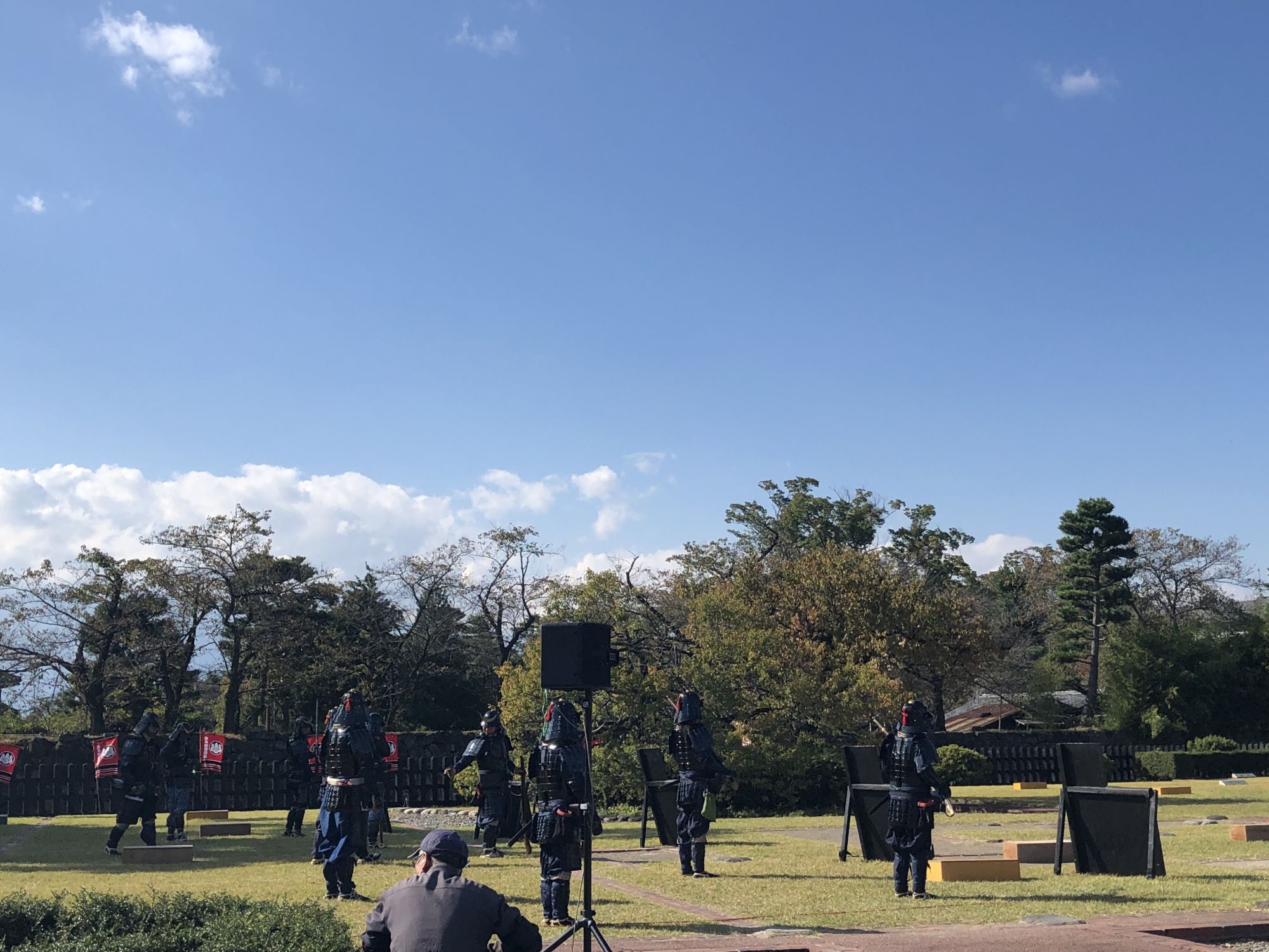 โดยผู้ที่สาธิตการยิงปืนมีทั้งตระกูลเก่าแก่ของเมืองมัตสึโมโต้ และกลุ่มผู้สาธิตที่มาจากจังหวัดไอจิ โดยผู้สาธิตจะแต่งกายด้วยชุดนักรบสมัยโบราณ กลุ่มผู้สาธิตการยิงปืนจากอำเภอมัตสึโมโต้จะสวมชุดสีน้ำเงินและกลุ่มผู้สาธิตการยิงปืนที่มาจากจังหวัดไอจิจะสวมชุดเกราะสีแดง ภายในงานจะได้ชมวิธีการบรรจุดินปืนทางปากกระบอก การยิงปืนคาบศิลาและปืนสั้นสมัยโบราณ เสียงดังสนั่นทั่วบริเวณปราสาท งานเริ่มตั้งแต่เวลา 13:30-15:30 น.