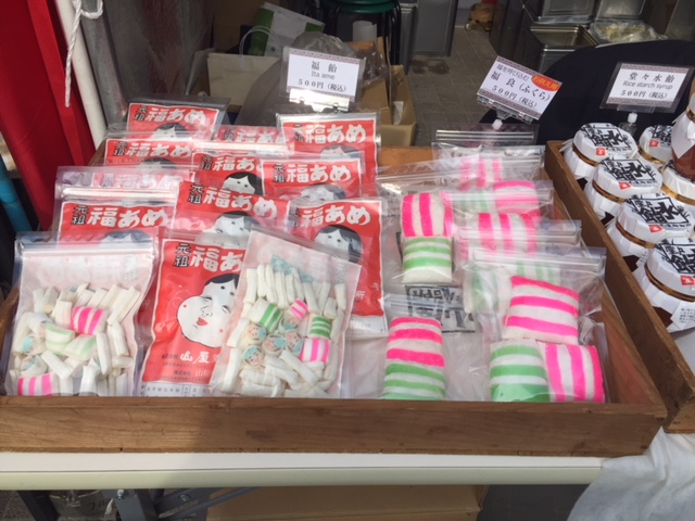 นอกจากลูกกวาดแล้ว ตามท้องถนนจะมีแผงลอยขายตุ๊กตาดารุมะ ซึ่งเป็นตุ๊กตาที่คนญี่ปุ่นมีความเชื่อว่าเป็นเครื่องลาง ช่วยขับไล่สิ่งชั่วร้าย
