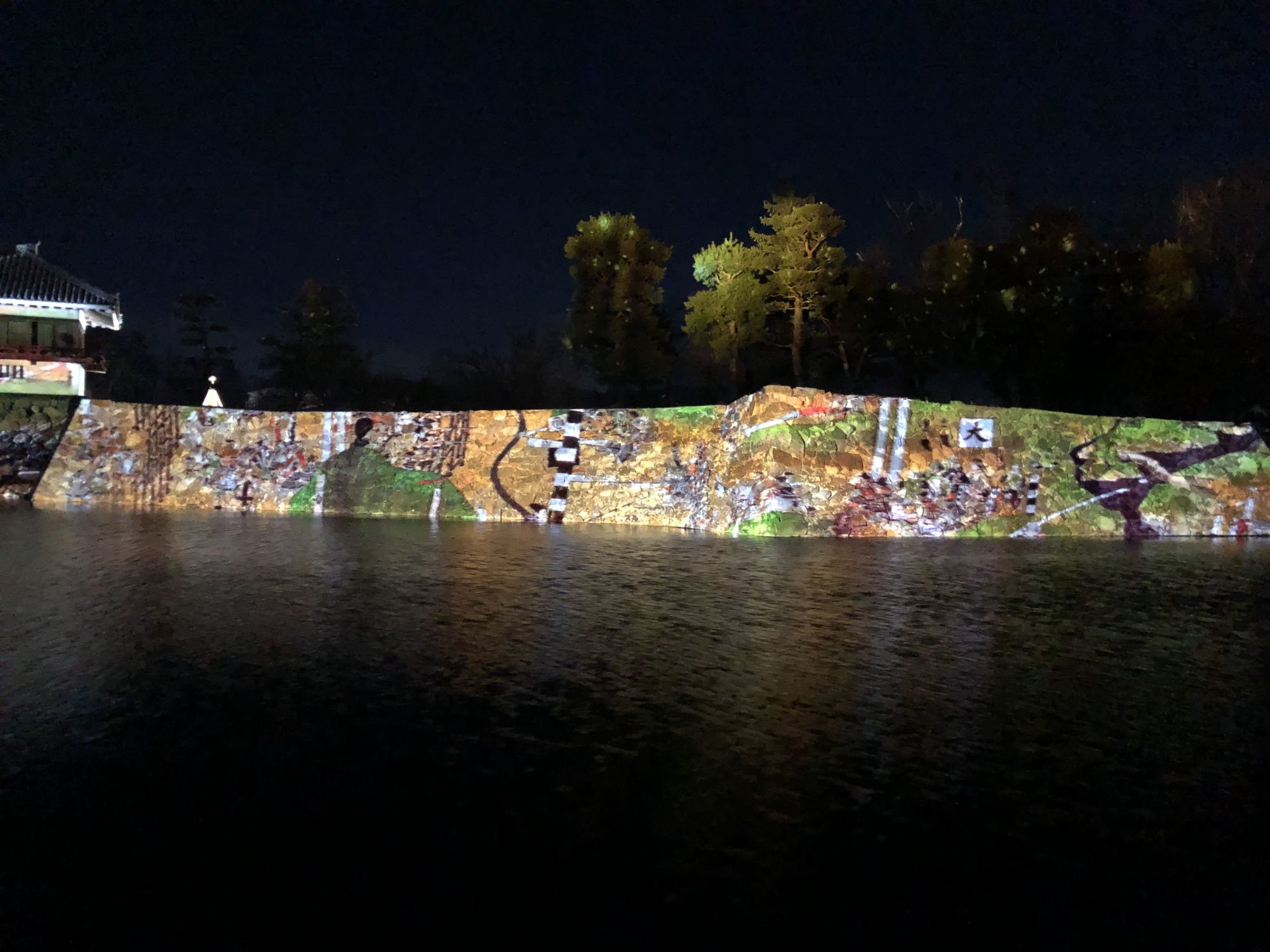 ปีนี้มีการฉายโปรเจคชั่น แมปปิ้งทั้งหมด 3 จุด คือที่ประตูทางเข้าปราสาท (ประตูคุโรมง) ที่ตัวปราสาท และที่สะพานสีแดงที่อยู่ใกล้กับสวนบ๊วย