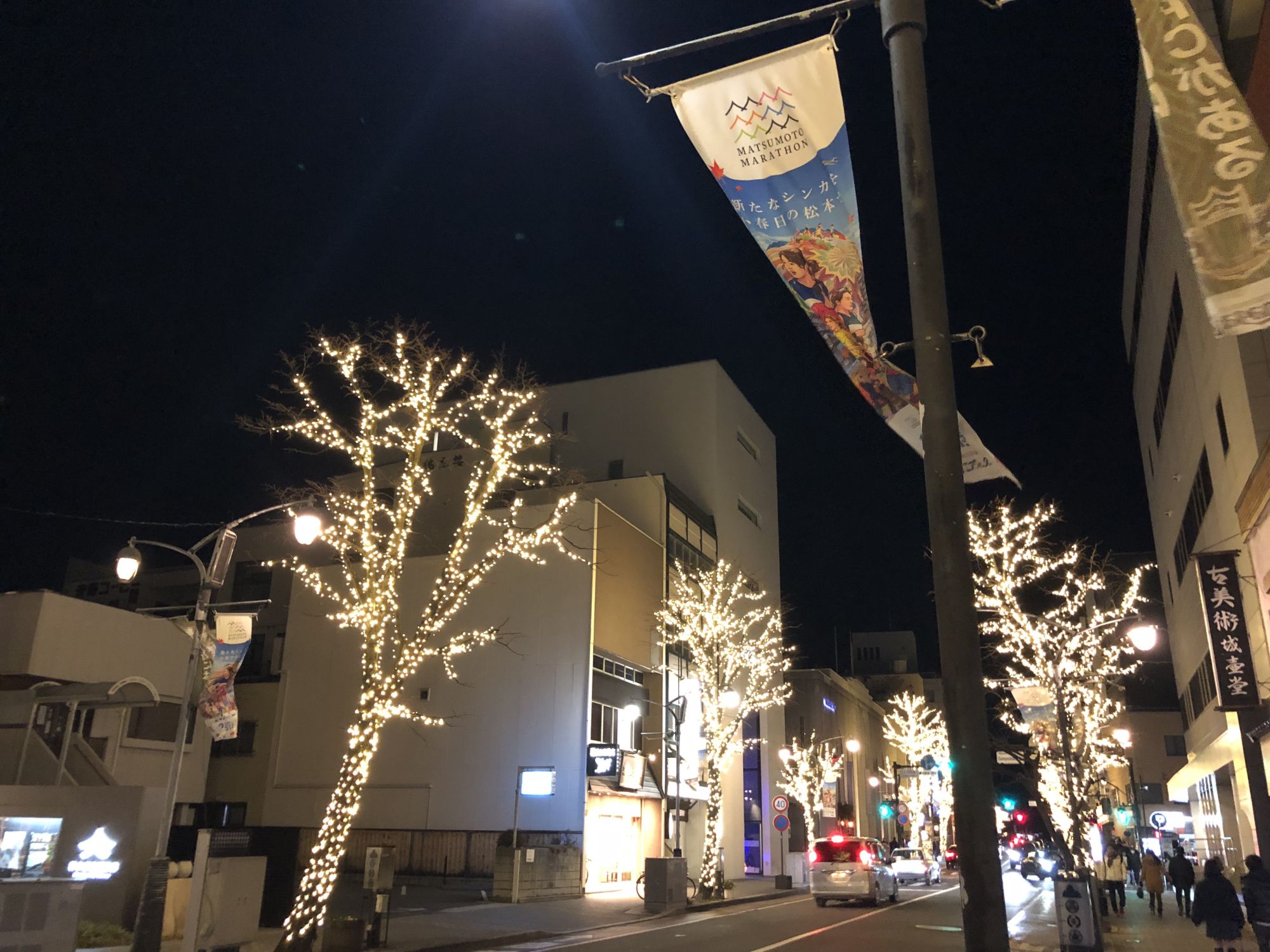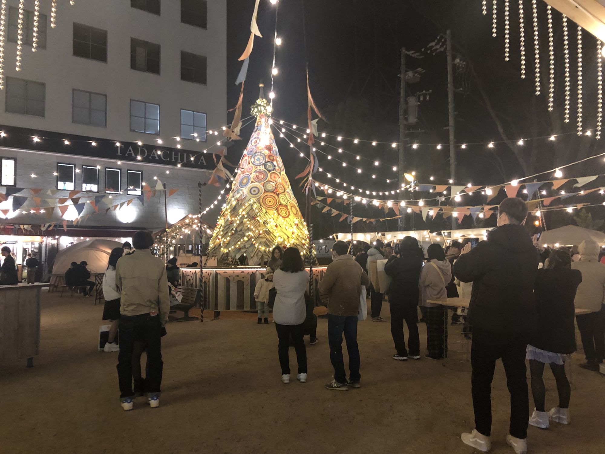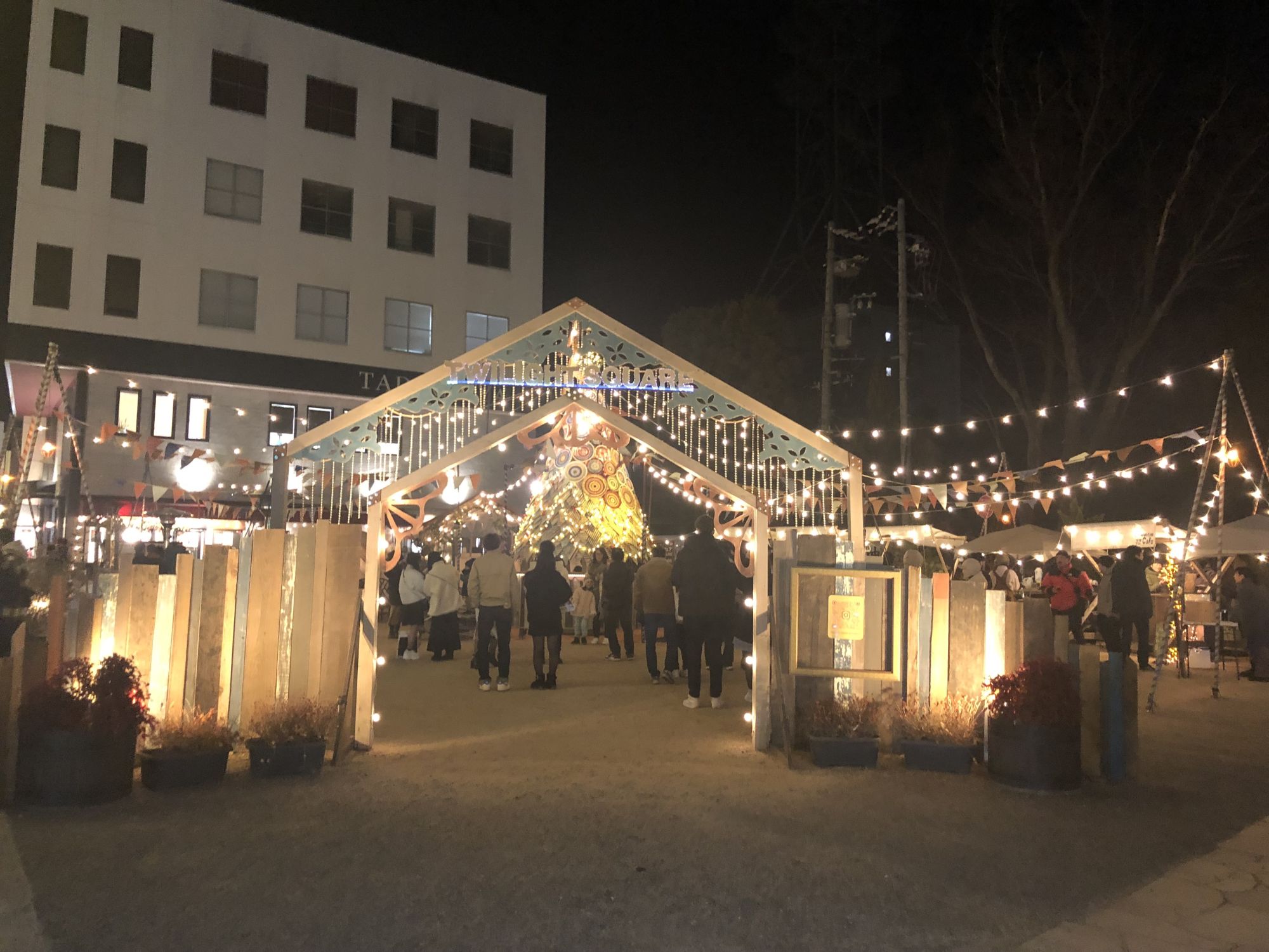 ช่วงใกล้เทศกาลปีใหม่ บริเวณถนนไดเมียวโช (ทางไปปราสาทมัตสึโมโต้) จะมีการประดับไฟแสงสีทุกปี ในปีนี้นอกจากไฟอิลูมิเนชั่นที่ประดับตามท้องถนนแล้ว ตรงลานกว้างหน้าศาลเจ้าโยฮาชิร่า ที่ติดกับทางเข้าถนนนาวาเตะ เค้าตั้งชื่อว่า “Twilight Square” ก็มีการจัดงาน ประดับแสงไฟ ต้นคริสมาสต์ มีร้านขายเครื่องดื่มร้อนๆ กาแฟ ขนม ฯลฯ การประดับแสงไฟมีทุกวันตั้งแต่วันที่ 1-31 ธันวาคม 2023 ส่วนร้านขายกาแฟ การแสดงดนตรี จะมีแค่วันเสาร์อาทิตย์เท่านั้น สามารถแวะเข้าไปถ่ายรูป ดื่มเครื่องดื่มร้อนๆ หรือซื้อขนมชูโรสร้อนๆ ที่ร้าน TADACHI cafe THE GATE ซึ่งอยู่ติดกัน แล้วมานั่งทานที่ “Twilight Square” ก็ได้ ภายในลานกว้างมีเก้าอี้ให้นั่งพัก มีเตาผิงให้ยืนผิงไฟและที่ให้วางแก้วเครื่องดื่มรอบๆ เตาผิงด้วย