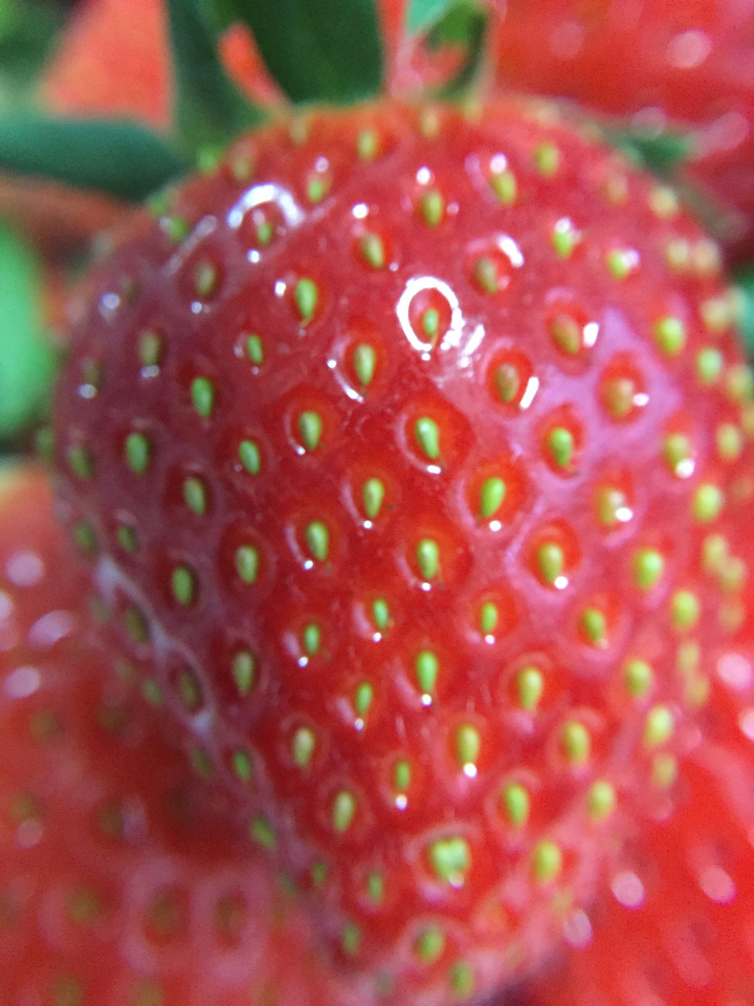 ผลสีแดงสวยงามมีกลิ่นหอมของสตอเบอรี่มากๆ เนื้อฉ่ำ แต่รสชาติจะไม่หวานเข้มข้นเท่าพันธุ์โทจิโอะโตเมะ