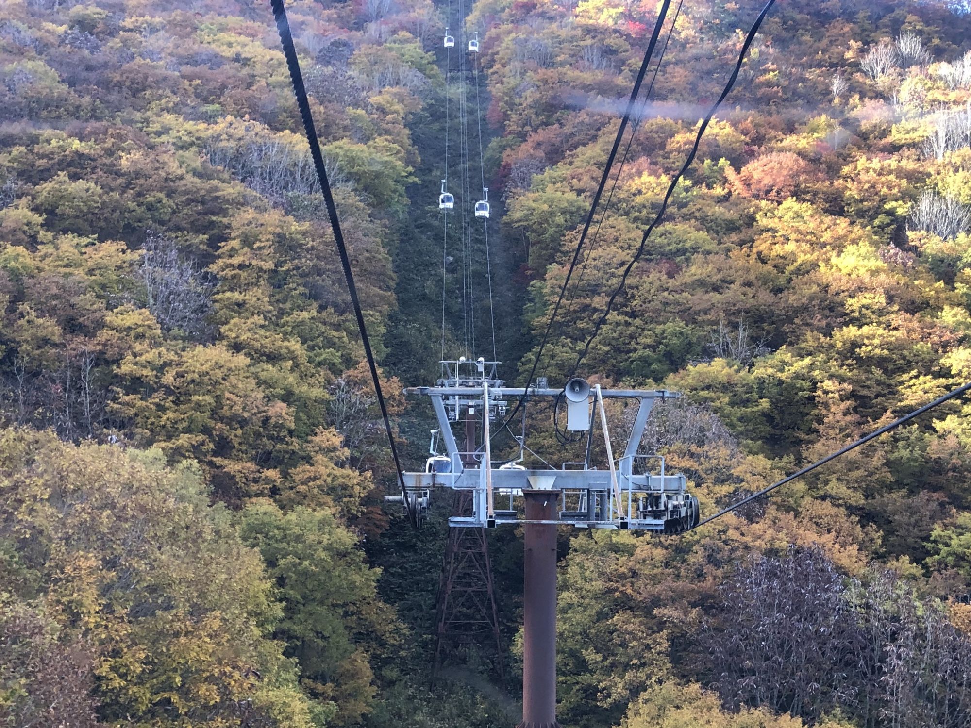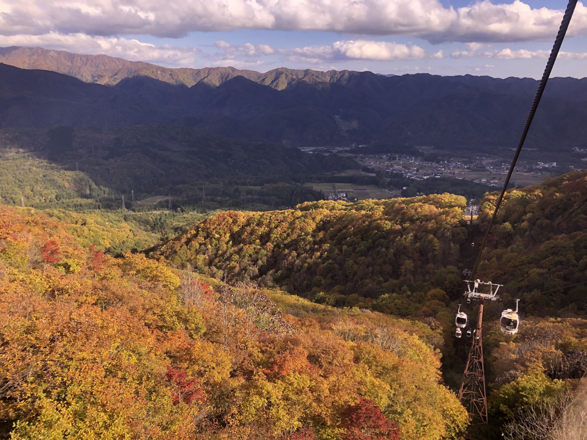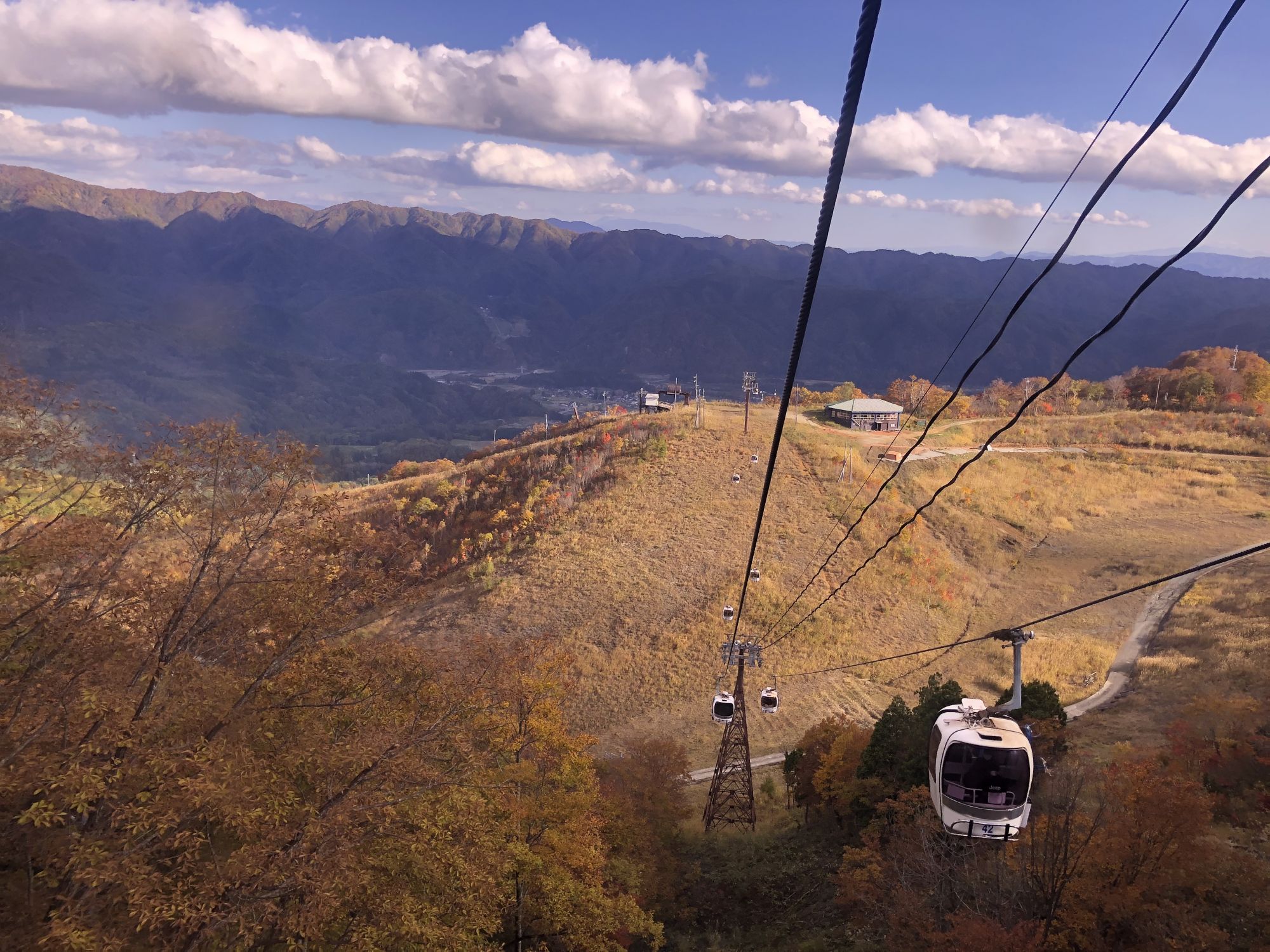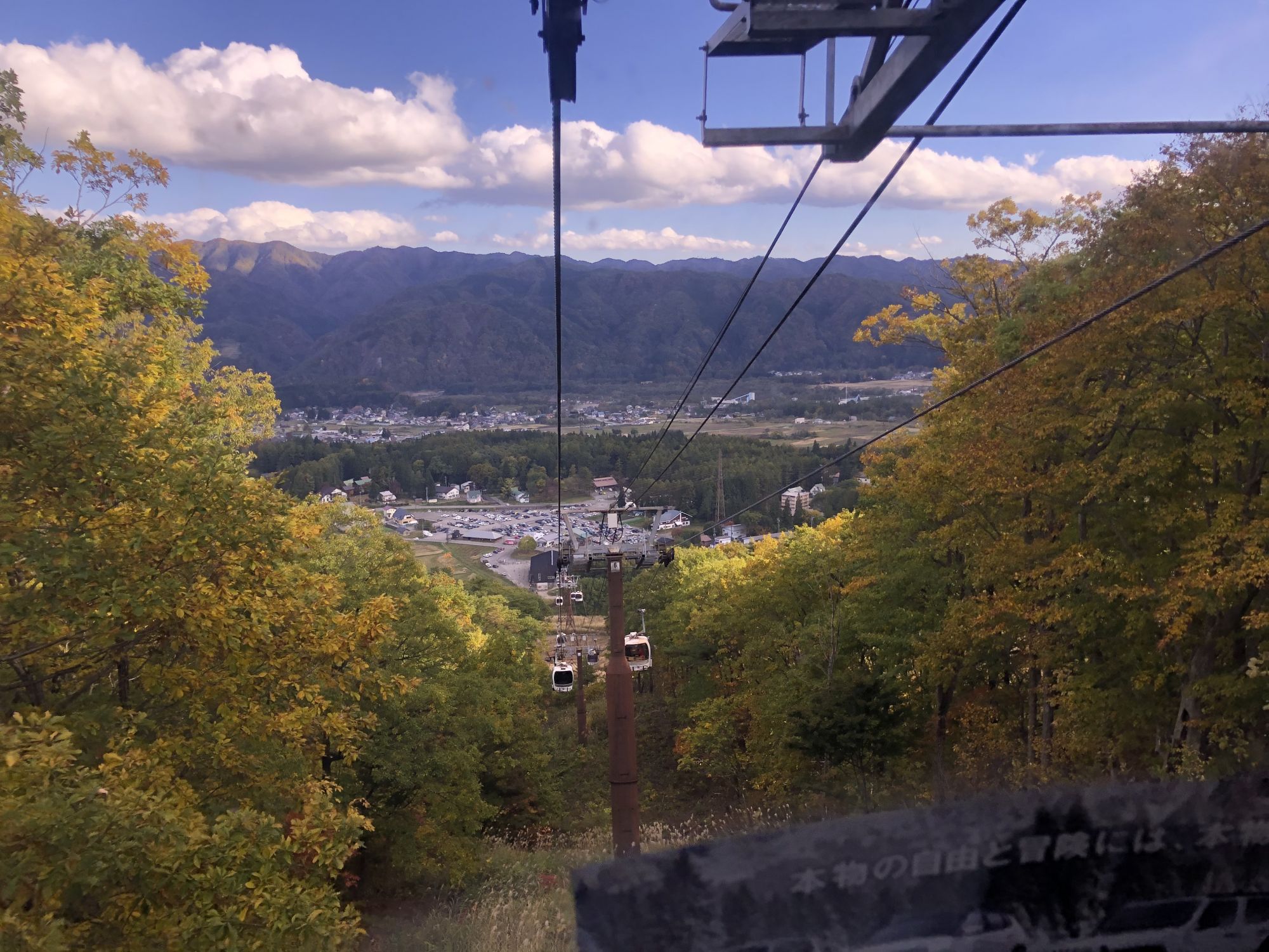ทริปนี้ตรงกับวันอาทิตย์ที่ 25 ตุลาคมและเป็นช่วงที่ใบไม้กำลังสวยมากๆ ทำให้คนรอขึ้นกระเช้าเยอะมาก ต้องรอคิวประมาณครึ่งชั่วโมง แต่ก็คุ้มค่ากับการรอคอยเพราะใบไม้เปลี่ยนสีกำลังสวยและสามารถมองเห็นเทือกเขาทอดยาวรวมทั้งหมู่บ้านที่อยู่ข้างล่างได้เป็นอย่างดี