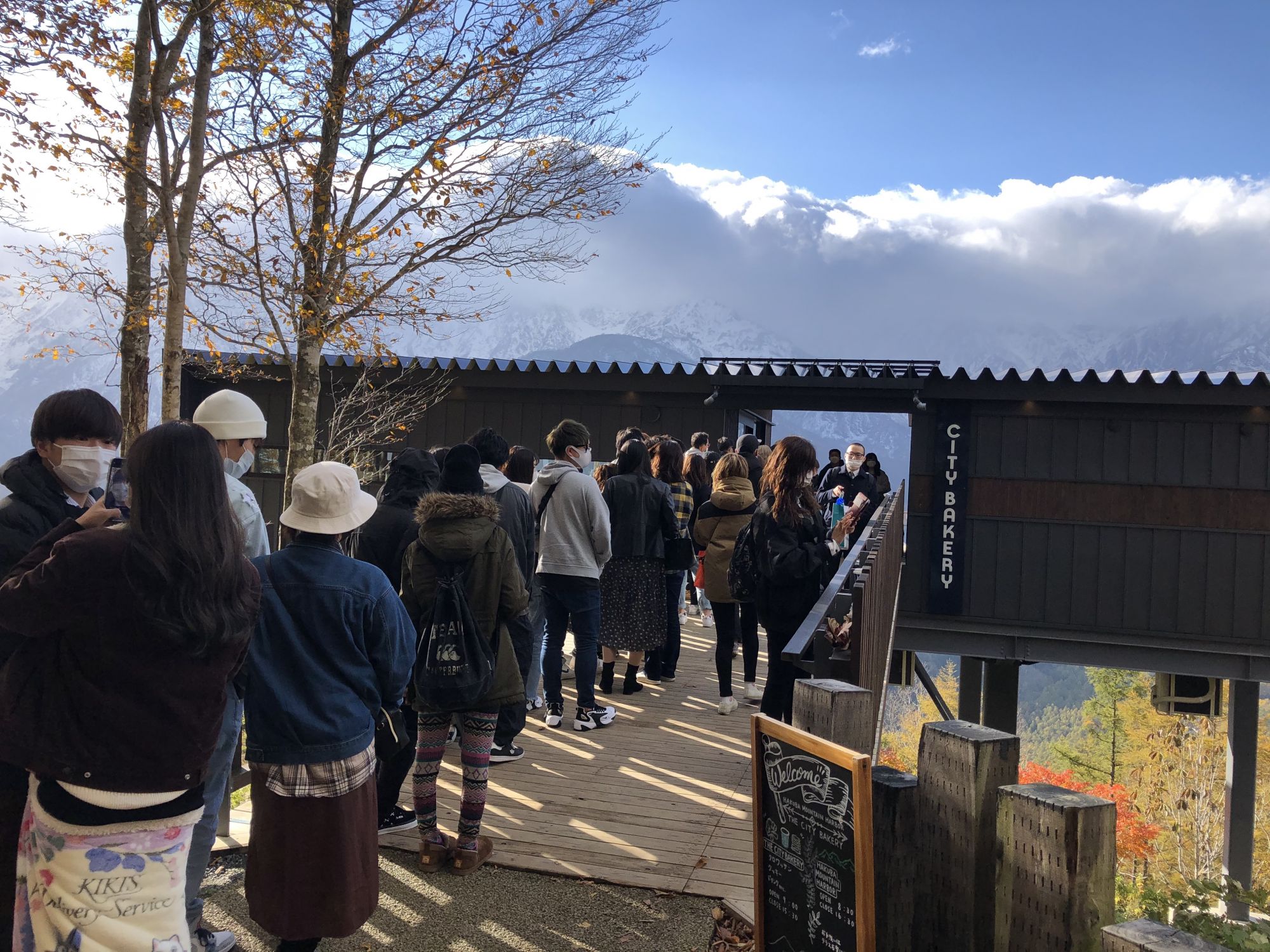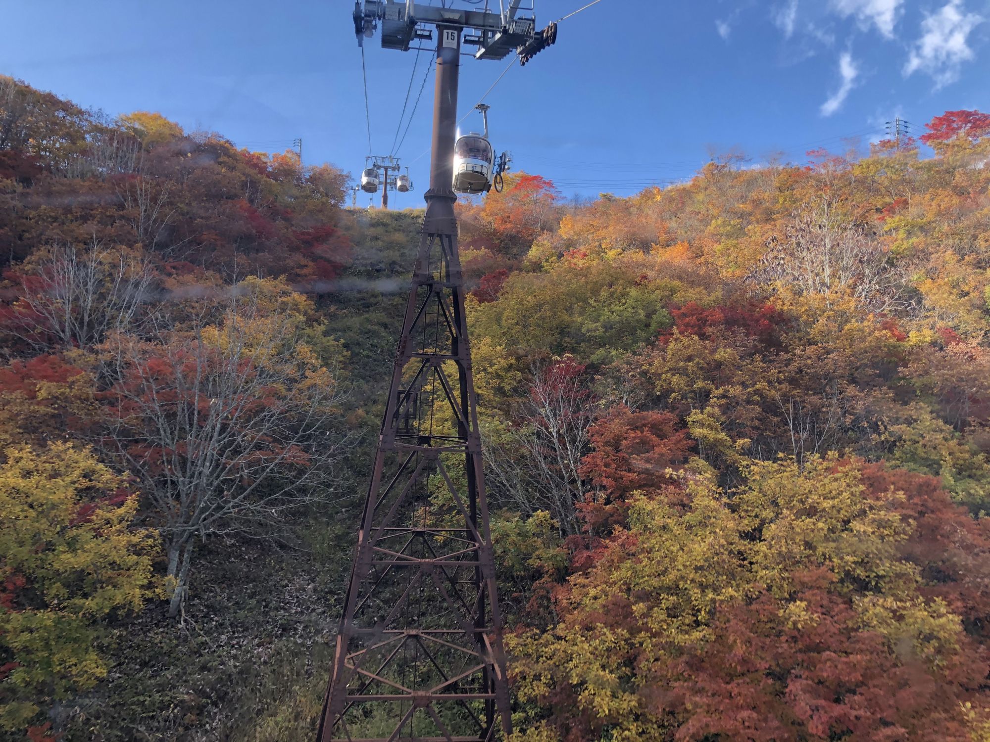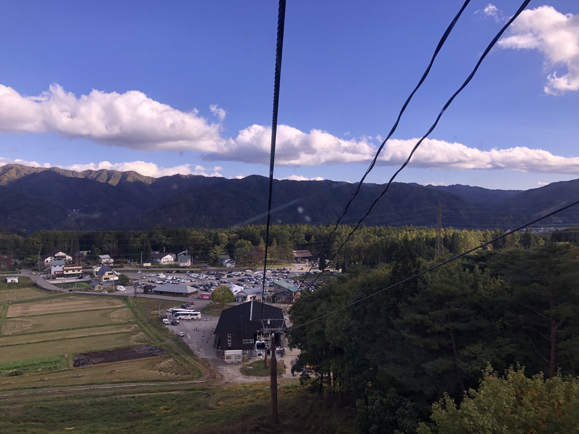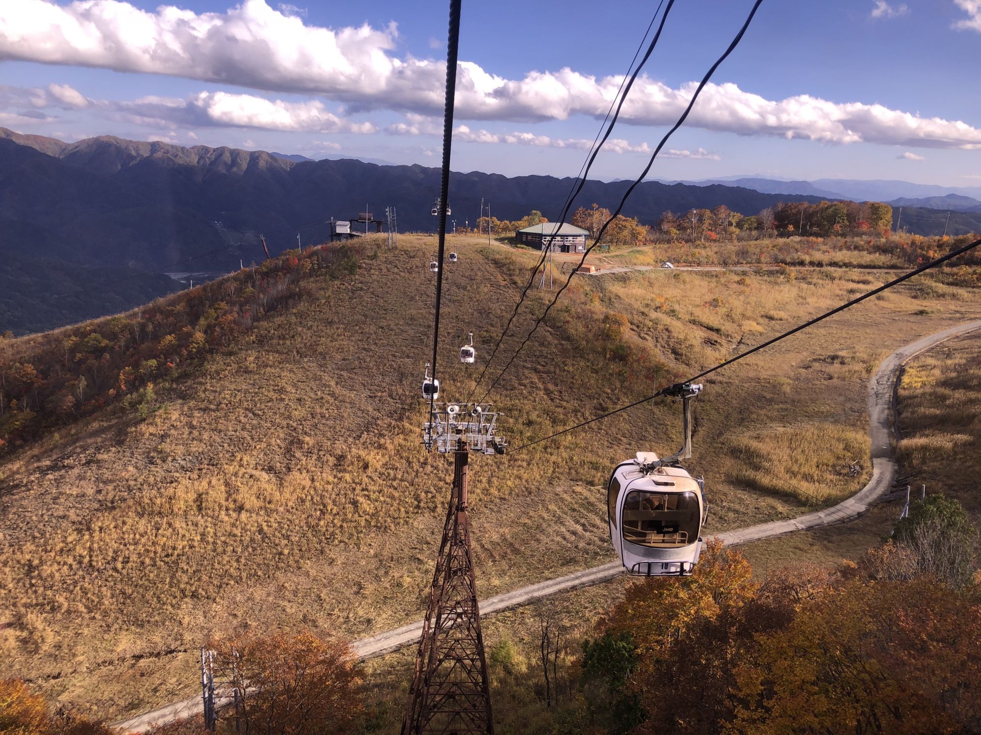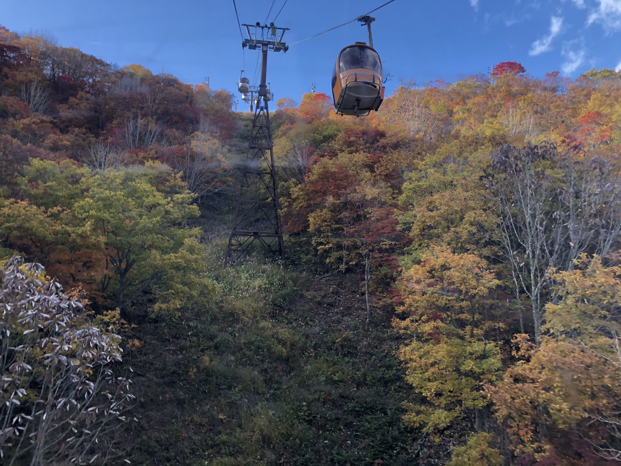 ทริปนี้ตรงกับวันอาทิตย์ที่ 25 ตุลาคมและเป็นช่วงที่ใบไม้กำลังสวยมากๆ ทำให้คนรอขึ้นกระเช้าเยอะมาก ต้องรอคิวประมาณครึ่งชั่วโมง แต่ก็คุ้มค่ากับการรอคอยเพราะใบไม้เปลี่ยนสีกำลังสวยและสามารถมองเห็นเทือกเขาทอดยาวรวมทั้งหมู่บ้านที่อยู่ข้างล่างได้เป็นอย่างดี