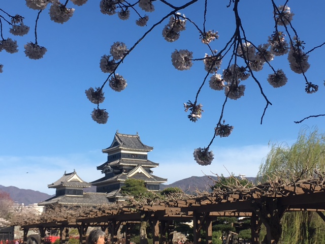 気が付くと松本城公園内の桜がほぼ咲いていました。
