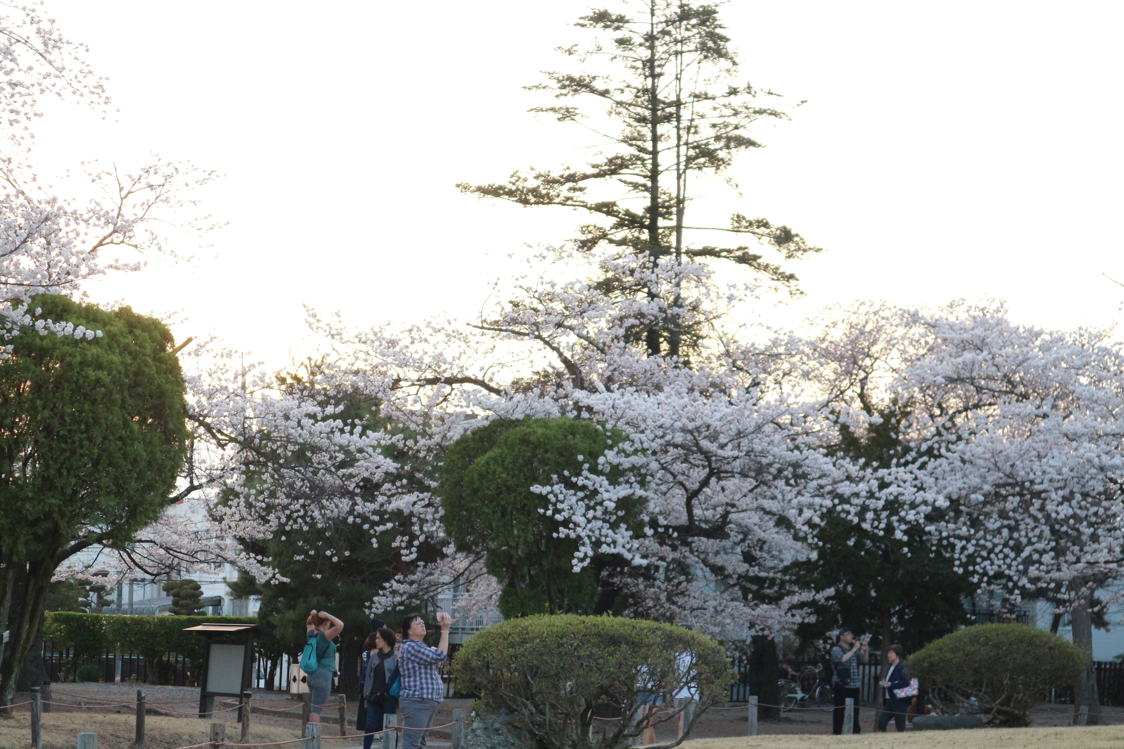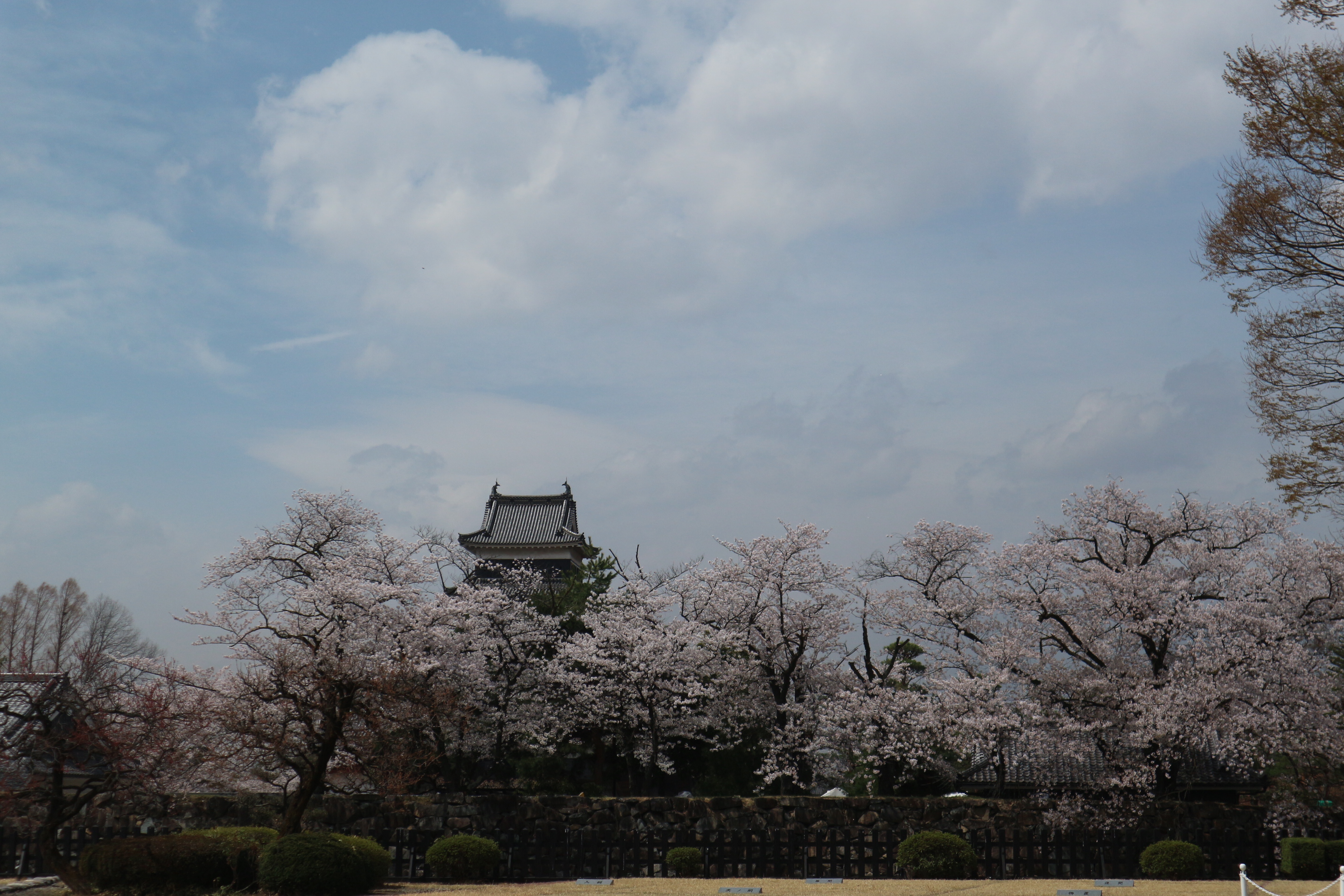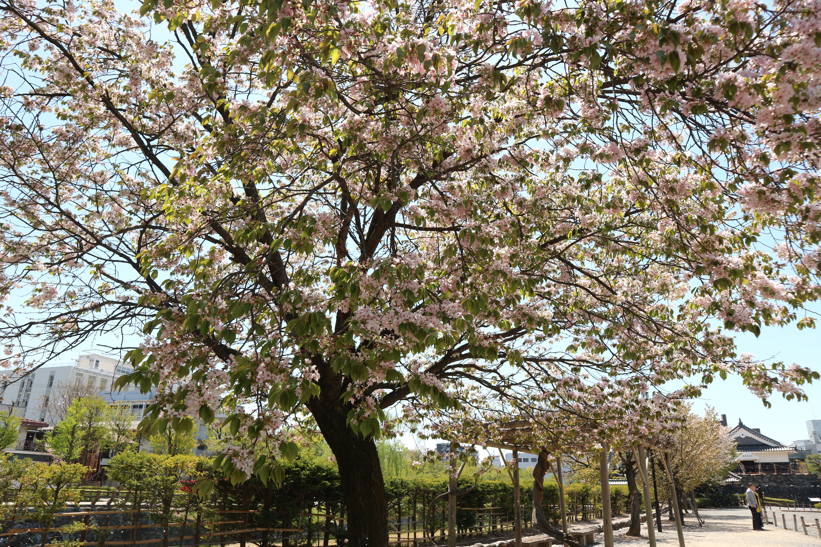 国宝松本城二の丸公園の遅咲きの桜はまだ花が咲いていました。