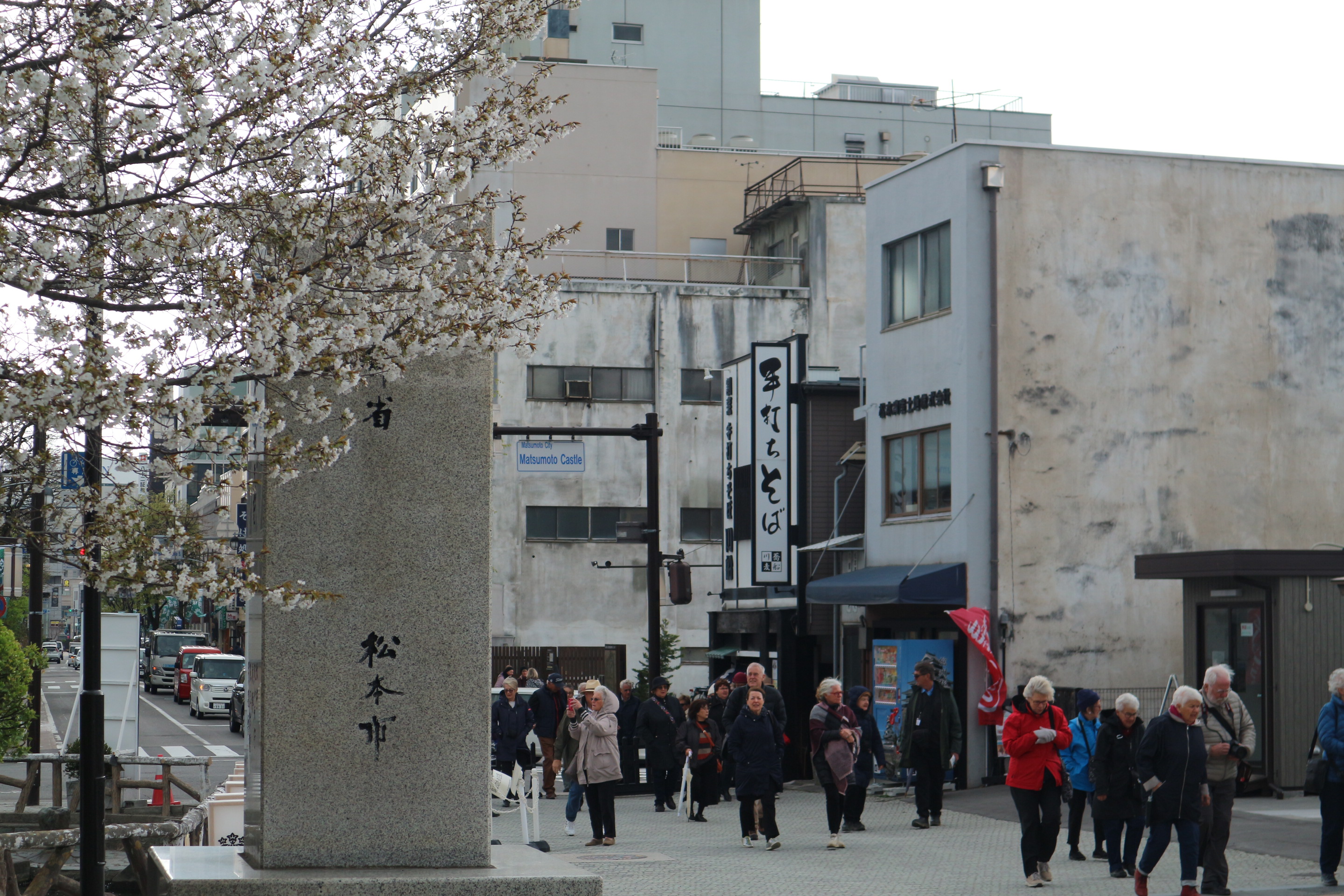 4月9日(月)曇り空・寒の戻り 寒い1日ですが、大勢の観光客の方々が国宝松本城公園を訪れていました。