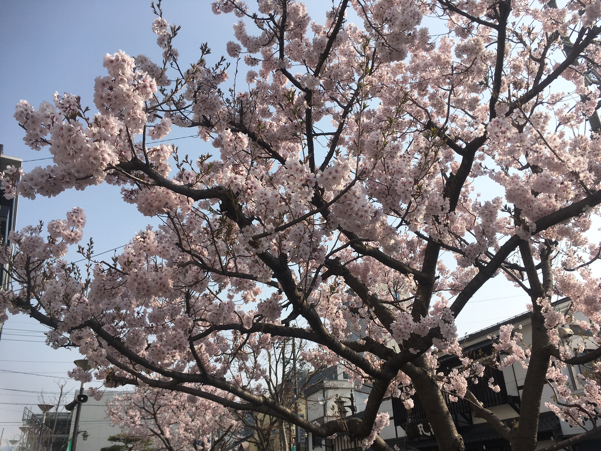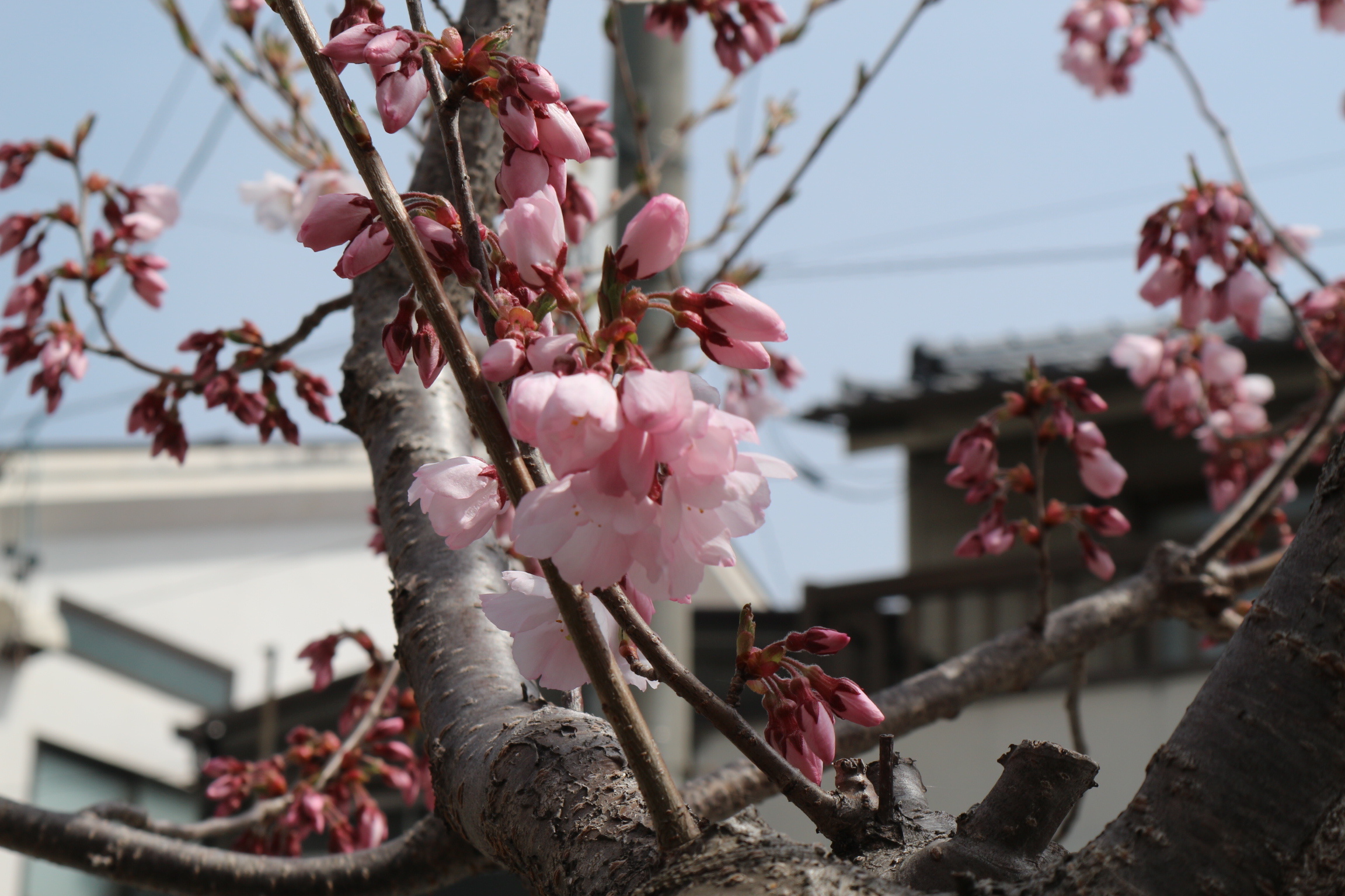 3月29日 20度を超える日が続き松本市街地で1番早く咲く辰巳の庭のコヒガンサクラが咲き始めました。