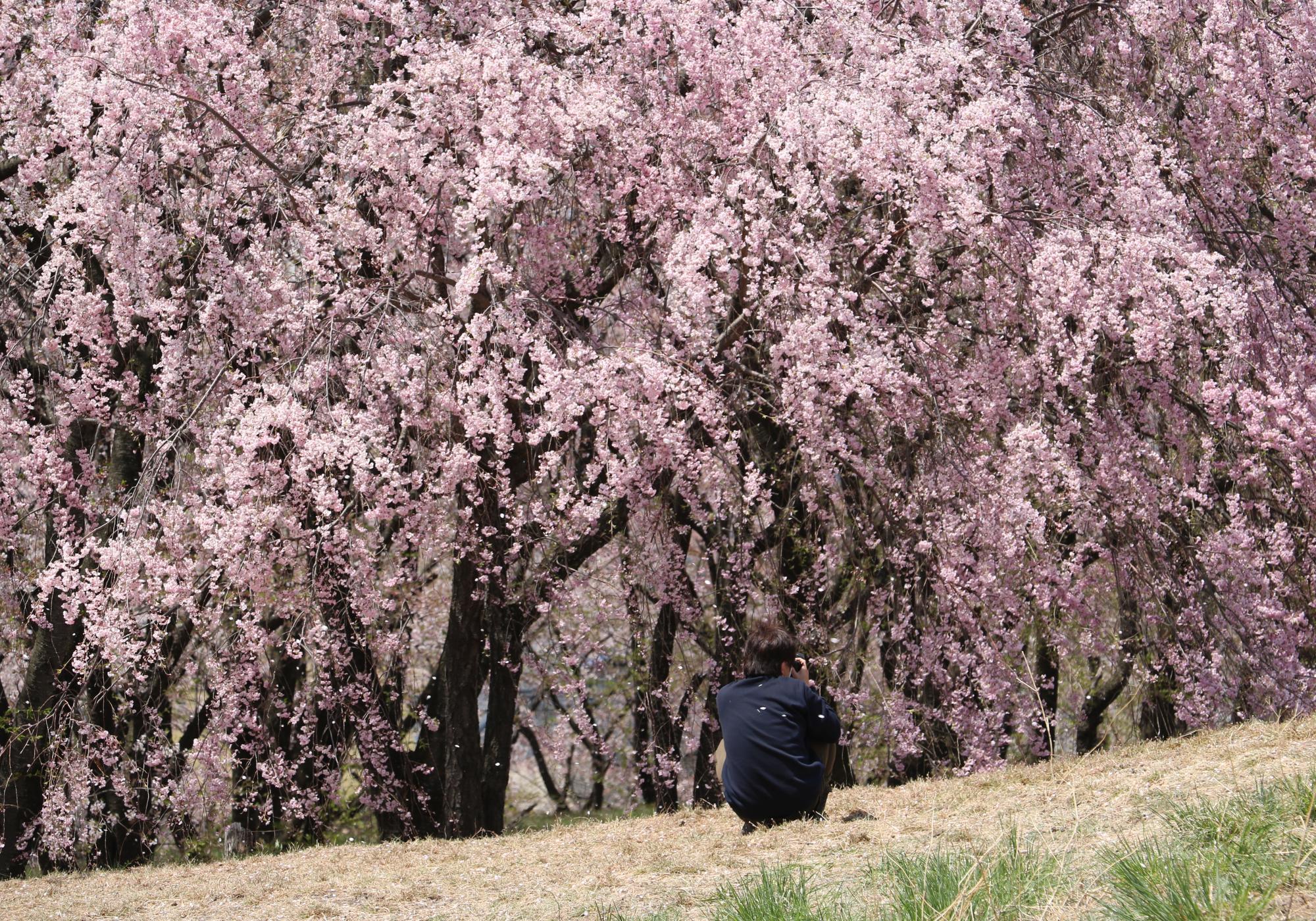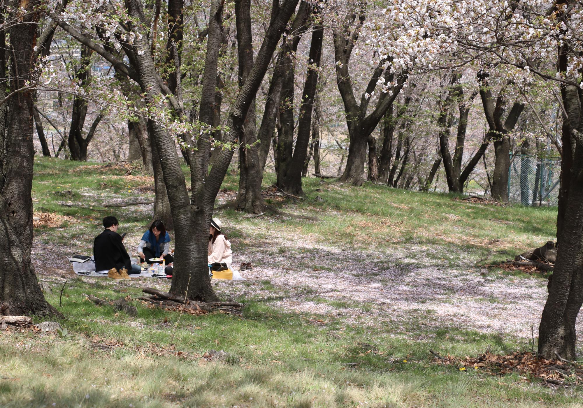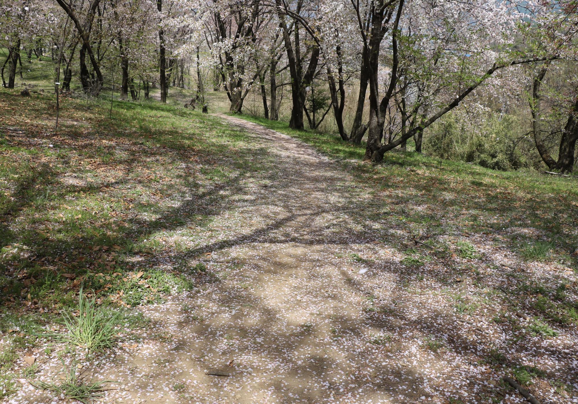 桜吹雪を撮る人、桜のジュータンで名残惜しむ人等も来ていました。