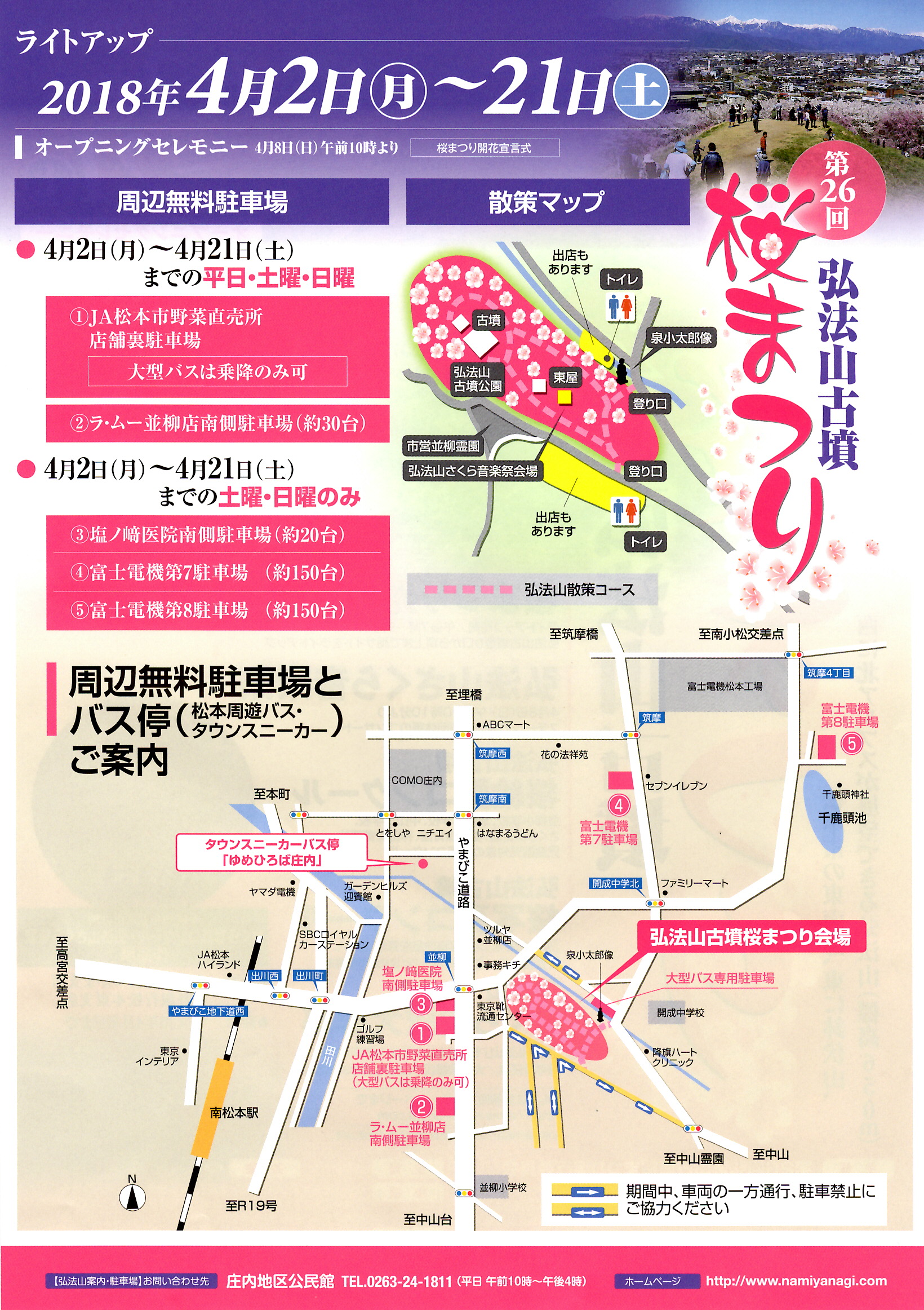 つきましては、「桜まつりを開催しない」こと、「駐車場などが周辺にないため、公共交通機関の利用について」ことを下記のとおりご案内いたします。