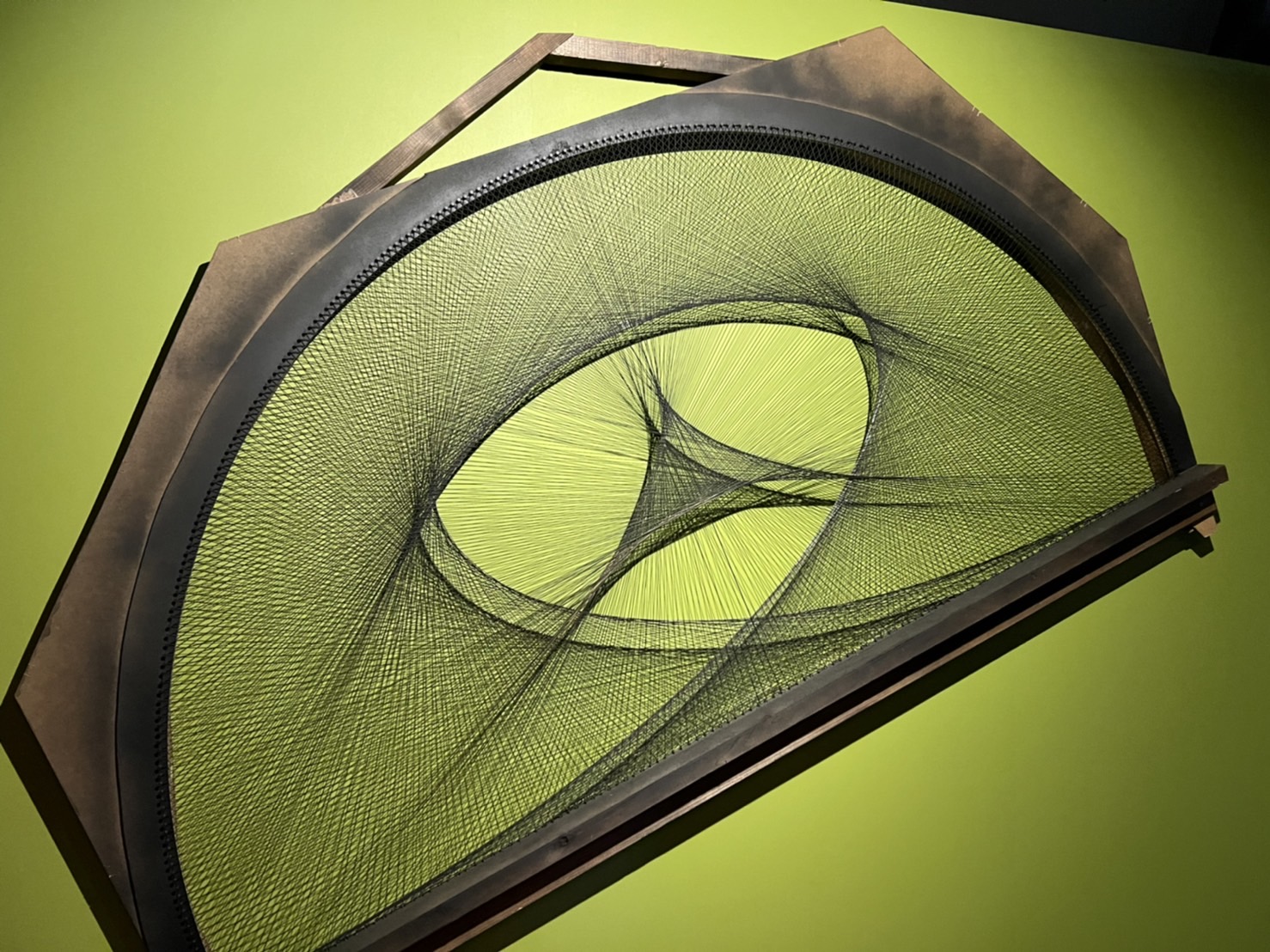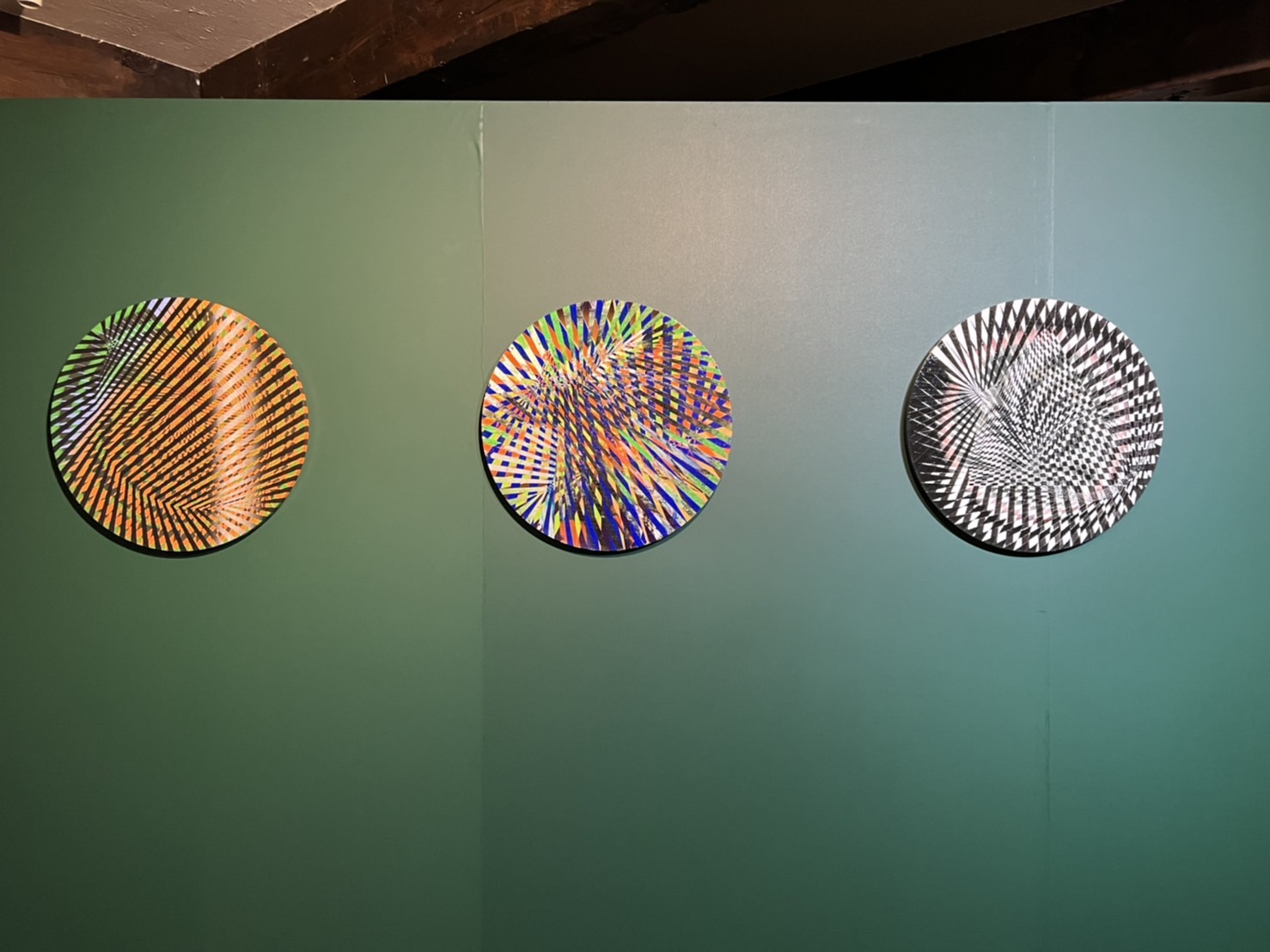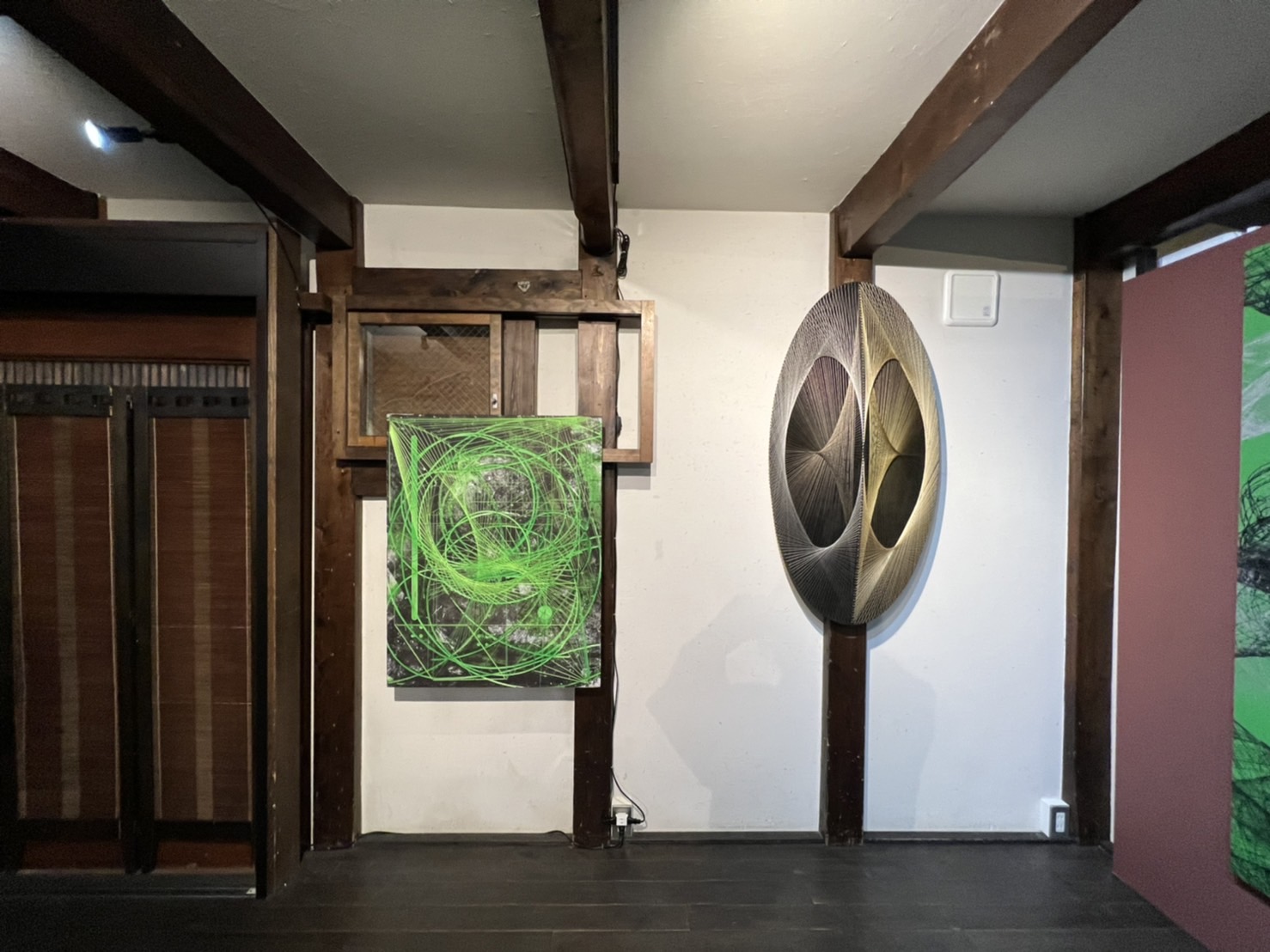 歴史を重ねた蔵の中に映える幾何学的デザインの美しい作品