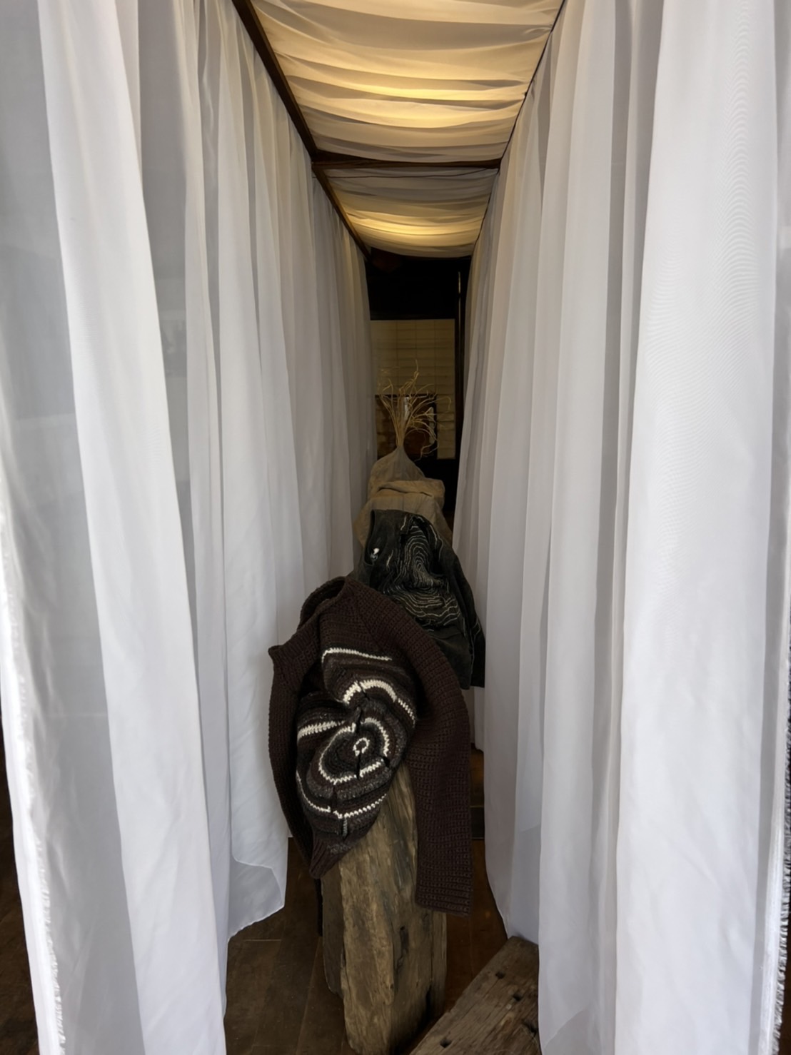 最初に訪問したのは、旧油三洋裁店 20年間閉めていた店舗をスタッフの皆さんで大掃除をして会場に蘇えらせたそうです。