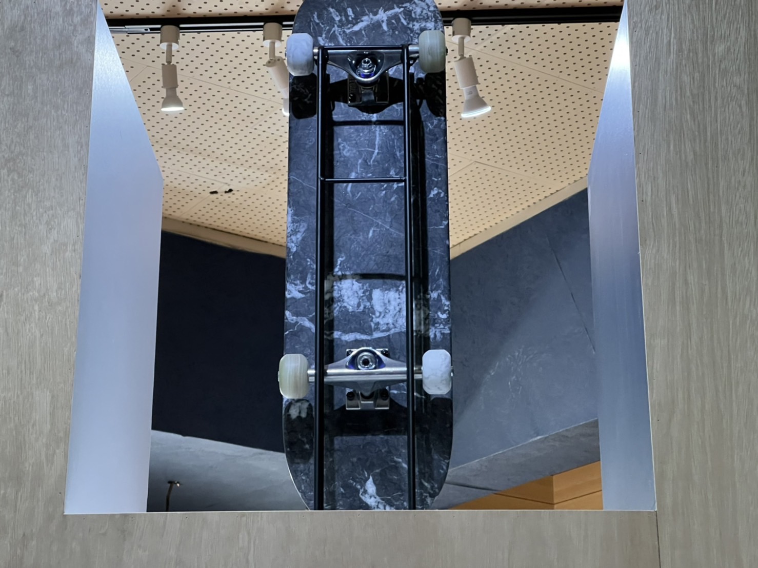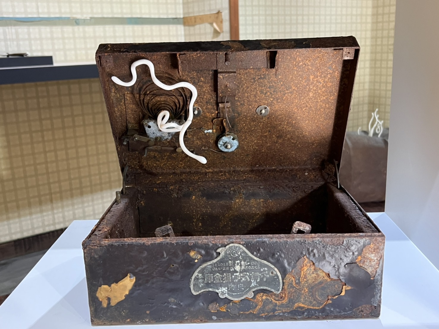 1階の袖壁に張られたテラゾー(人工大理石)は、昭和30~40年代(1955〜1974)に流行した材料で「昭和の香り漂う建築」の床や壁、カウンターや造作材に多く見られる。道路に面した部分は木製引戸の大開口であったが、貸店舗とする時にショーウインドウ形式に造り替えた。ショーウインドウの台輪はテラゾーではなく石目調の化粧板で、材料からも時代の変遷を見ることができる。(マツモト建築芸術祭公式サイトより)