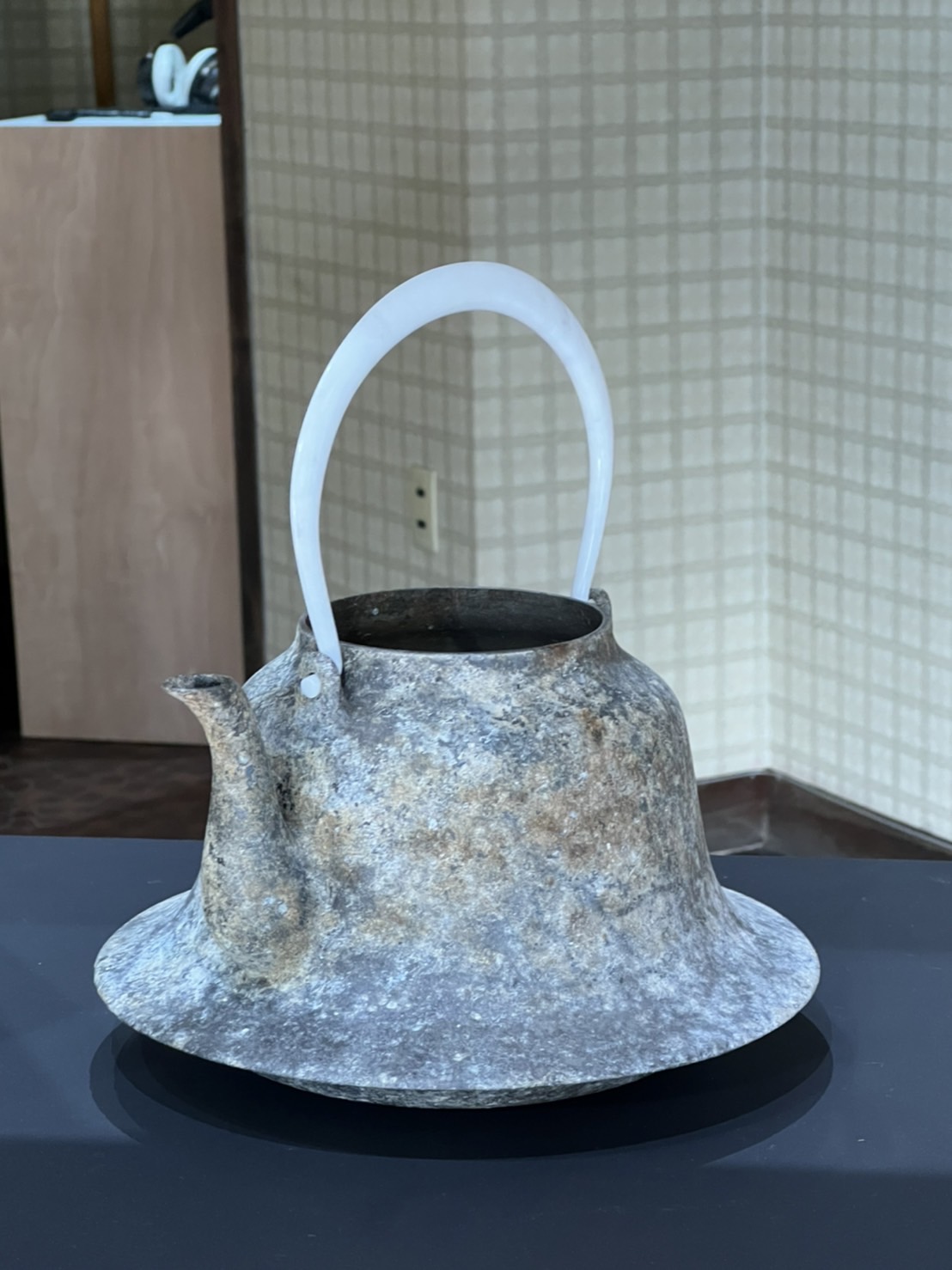 東北のどこかの町で見つけたドラムカンを持ち帰り作品にしたそうです。