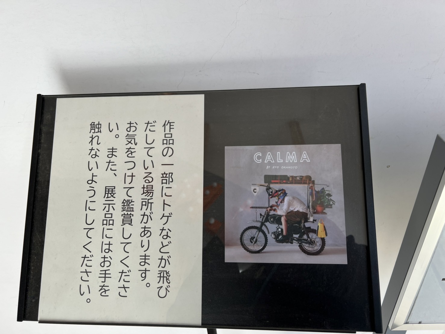 近年の展示として、『TRIBE BIBLE』(FARO Kagurazaka、東京/2022)、グループ展『small works』(FARO Kagurazaka、東京/2022)、『PEOPLE FROM THE EUTOPIA』(B Gallery、東京/2021)、『ANCIENT HEROES』(FARO Kagurazaka、東京/2021)、『CALMA by RYO OKAMOTO Ash#14』 (D&Department、鹿児島/2021)、会場デザイン『RADIO CALMA』(森道市場、愛知/2021)、『CALMA by RYO OKAMOTO Ash#13』(RHYTHMOS、鹿児島/2020)、『CALMA by RYO OKAMOTO』(旅館大村屋、佐賀/2019)、『WSMA(ワズマ)』(木造校舎現代美術館、奈良/2017)、『MONO JAPAN』(ロイドホテル、アムステルダム/2016)など、国内外で精力的に発表。(マツモト建築芸術祭公式サイトより)